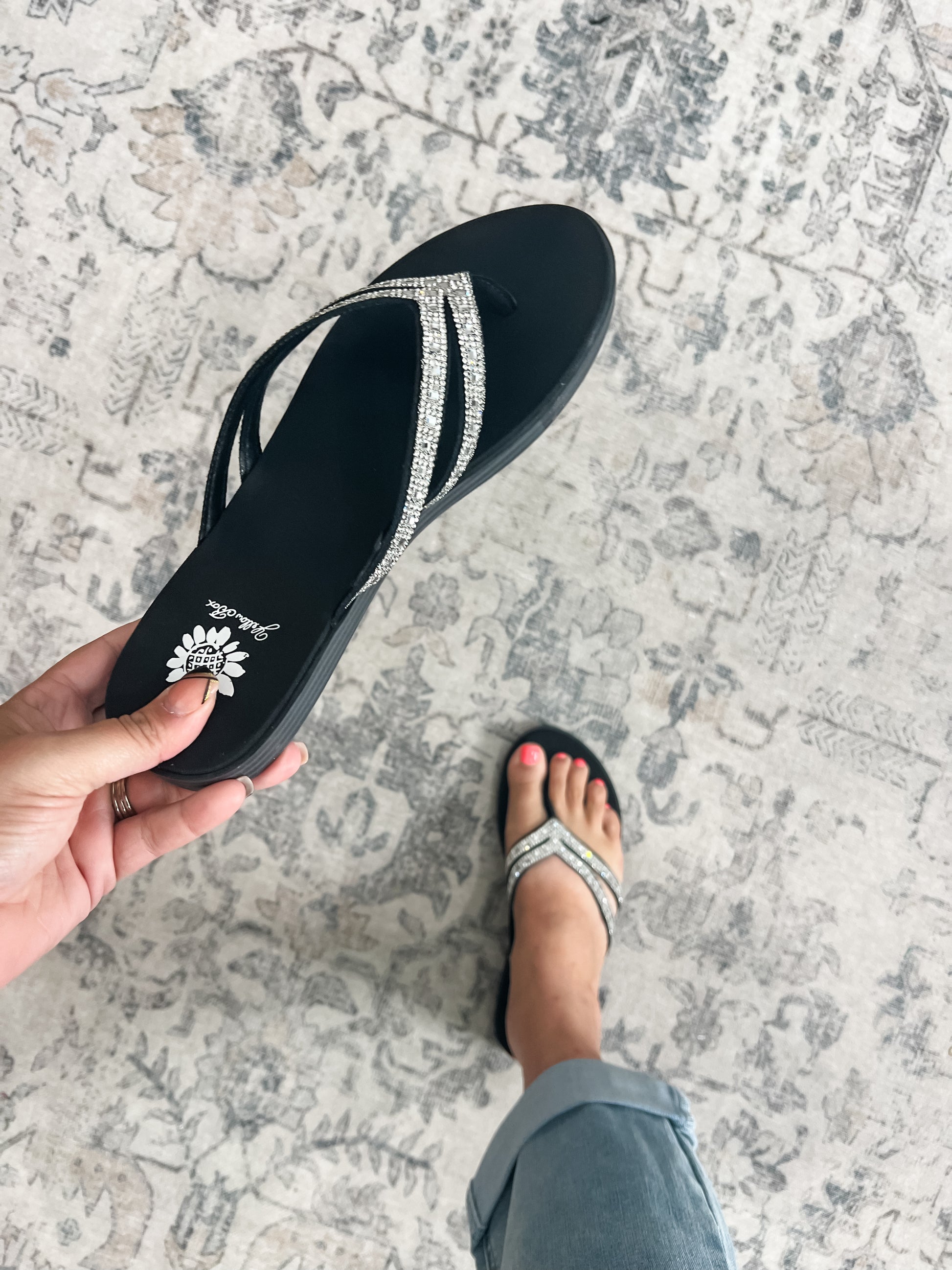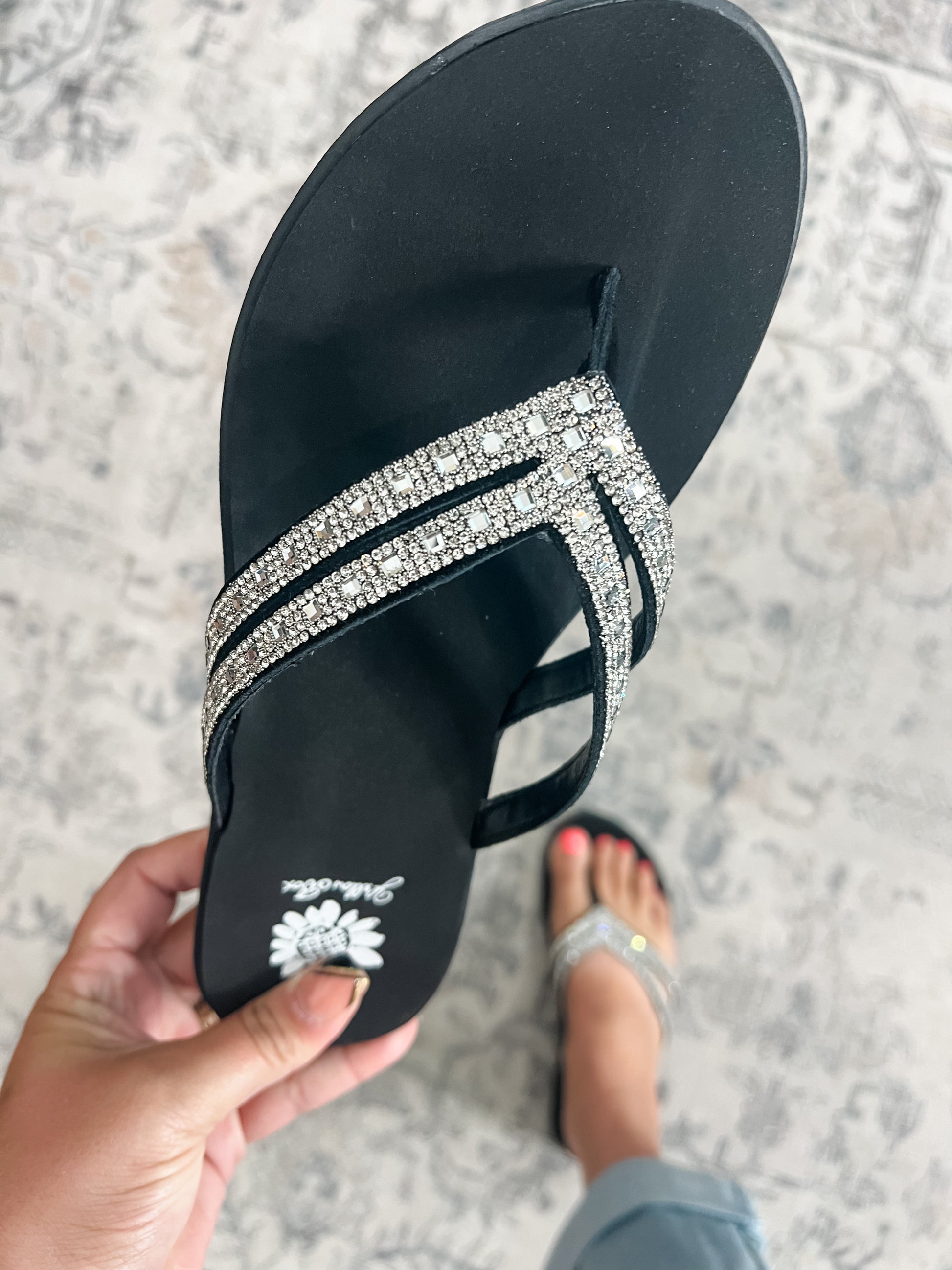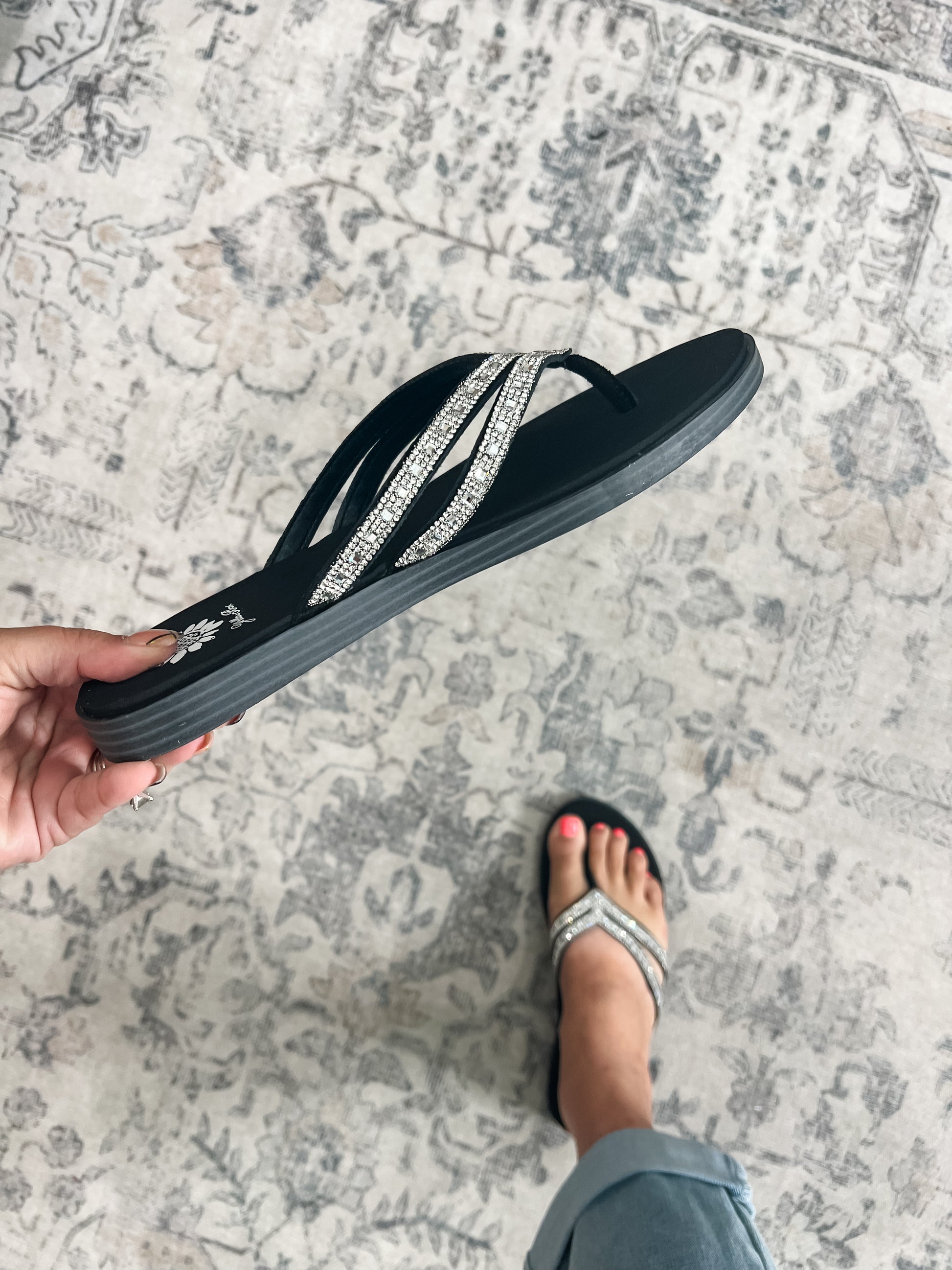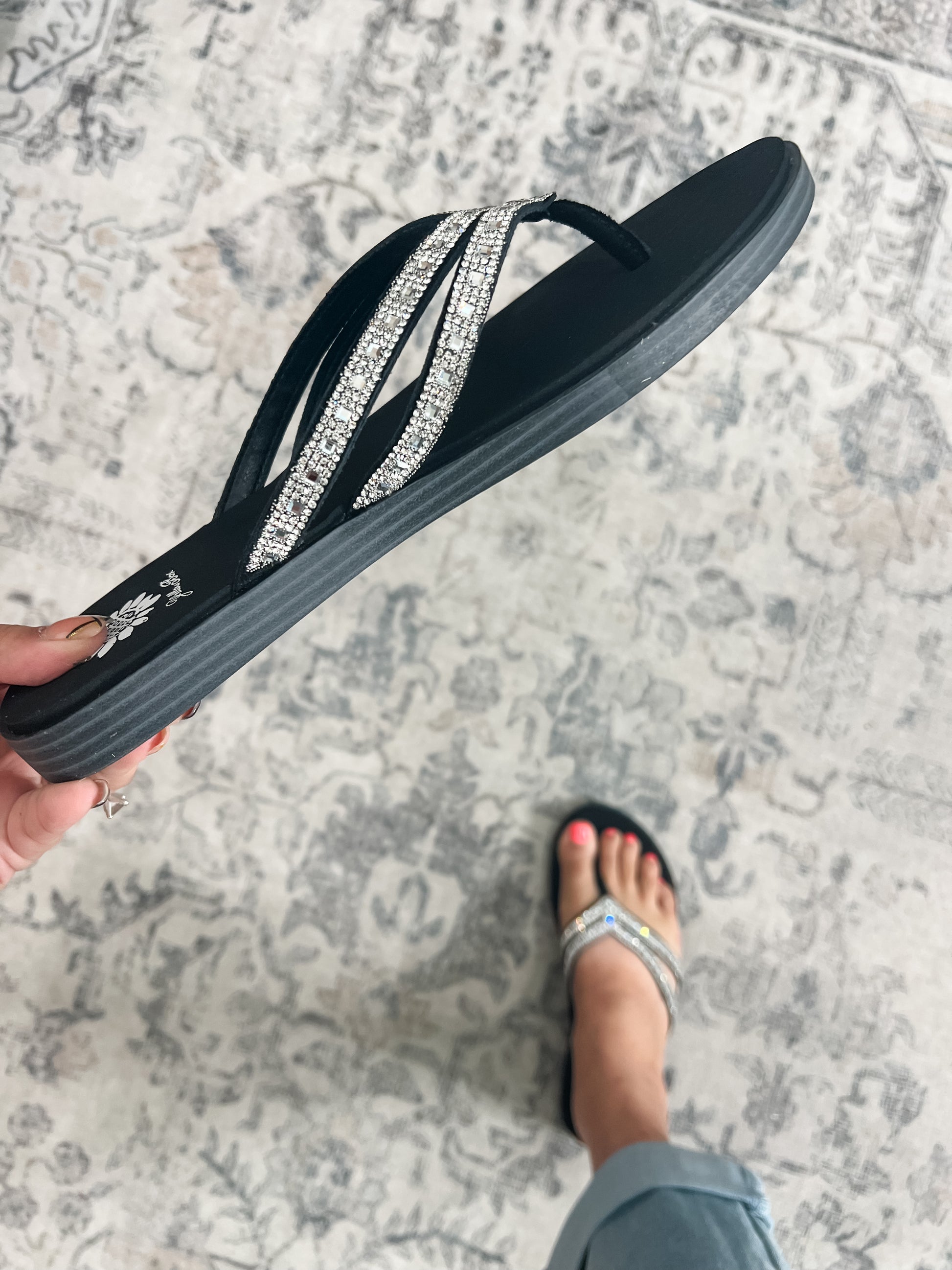 The "Dalia" Double Strap Rhinestone Flip Flop by Yellowbox offers the best of both worlds with its combination of yoga mat comfort and durable bottom sole. Its comfortable straps are designed to not rub against your feet, making it suitable for all-day wear. Plus, the roomy straps makes it friendly for those with high arches.
