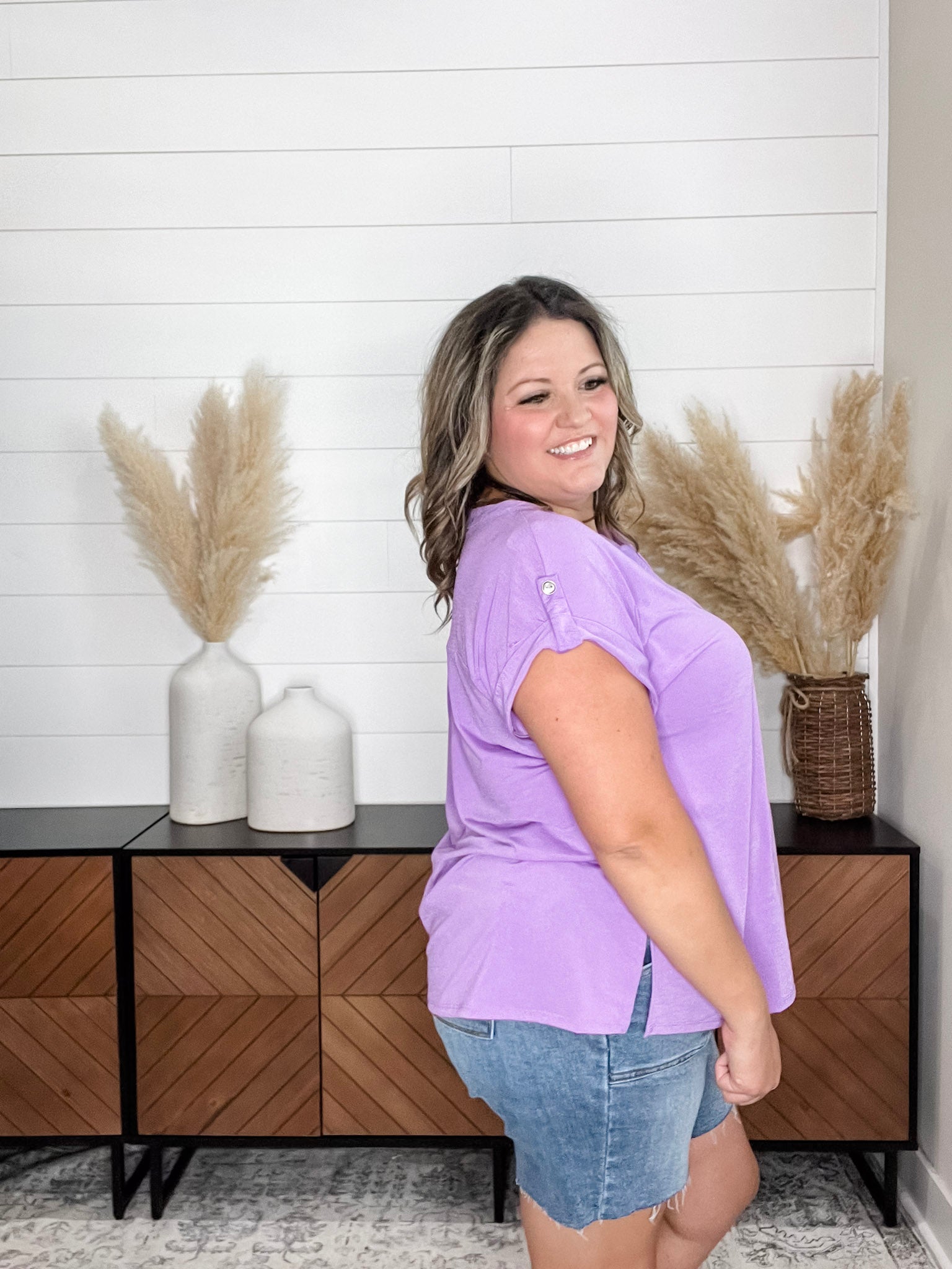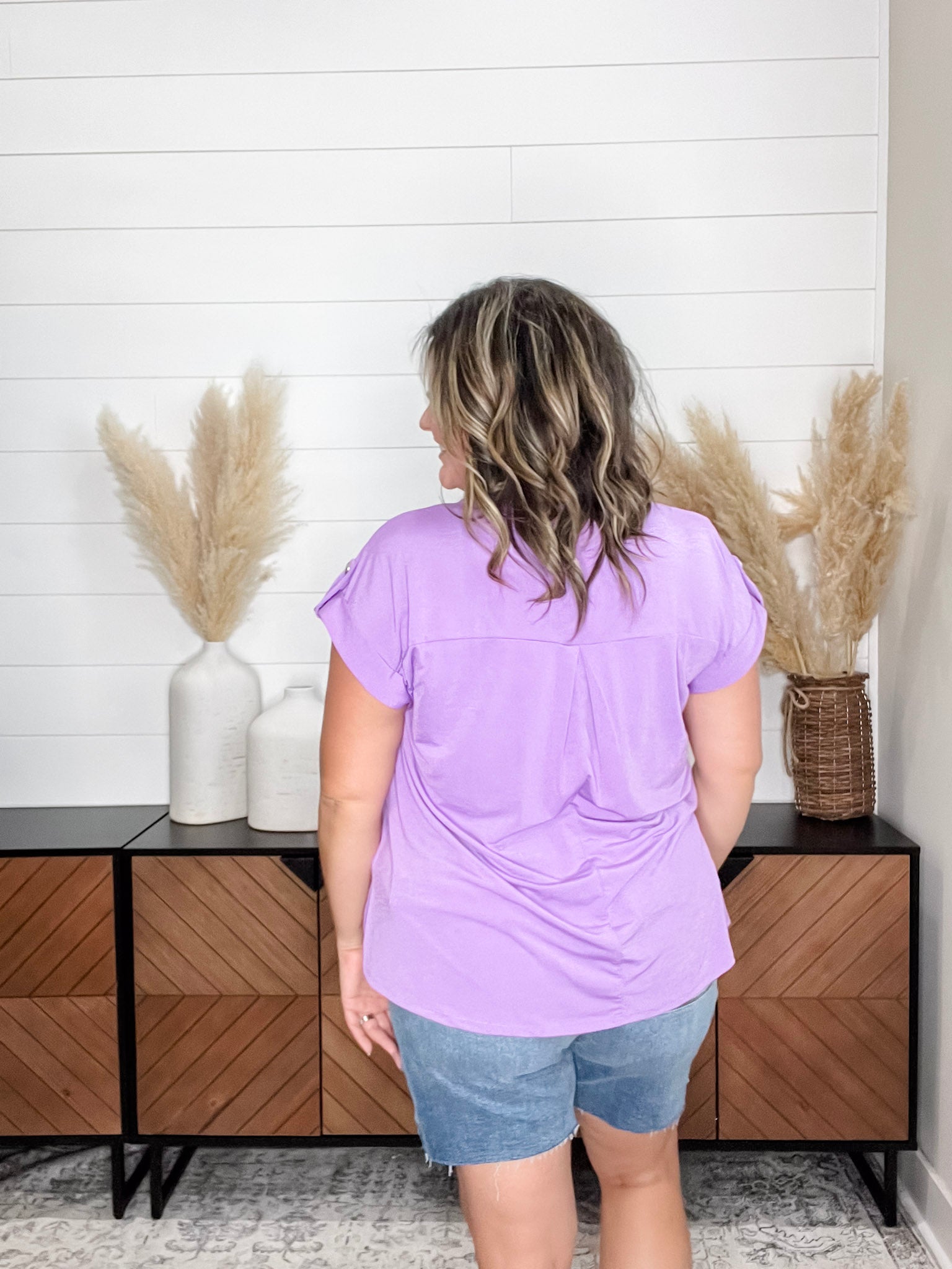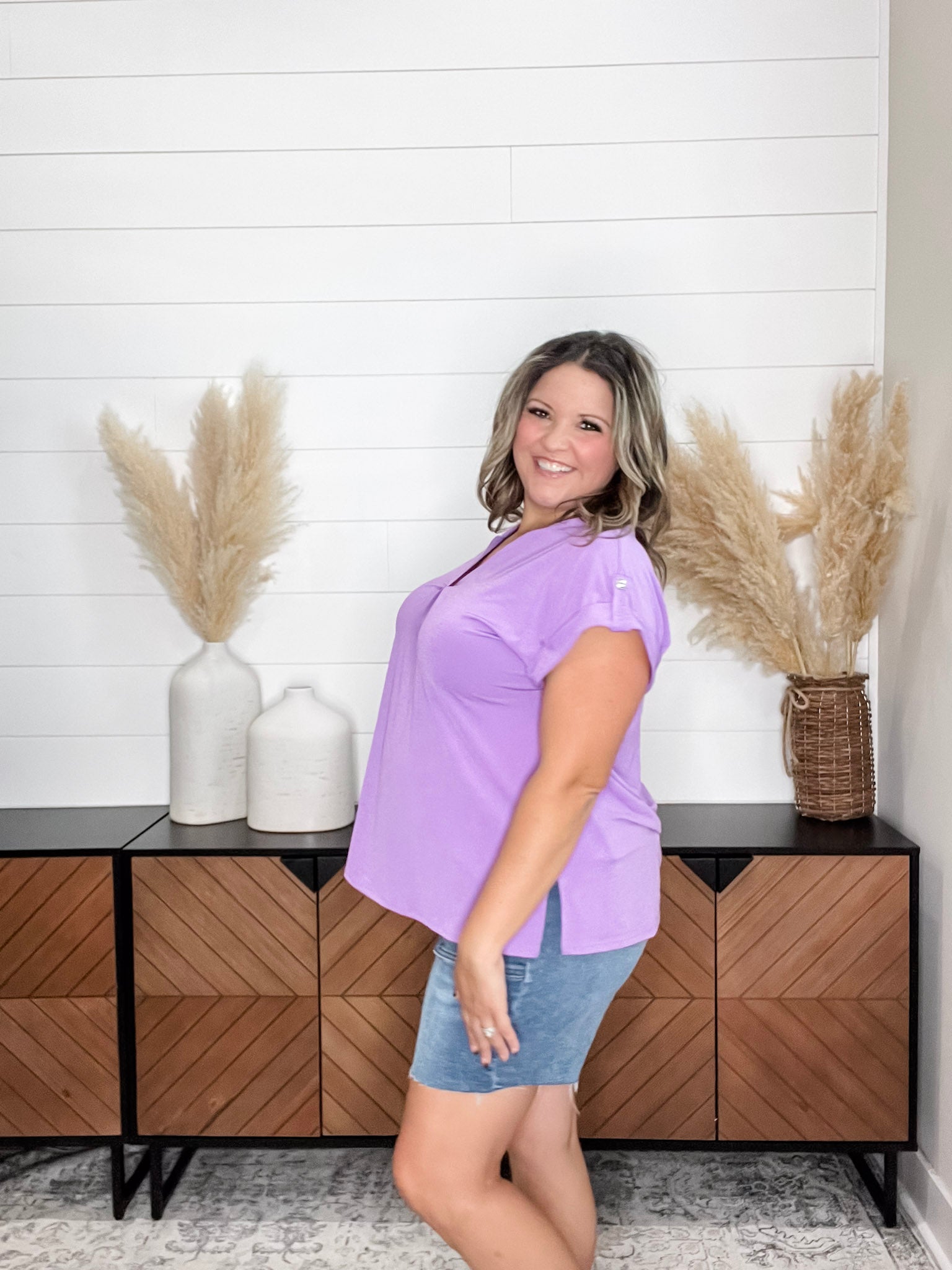 "Dare" Solid Split Neck Cuffed Short Sleeve (Lavender)