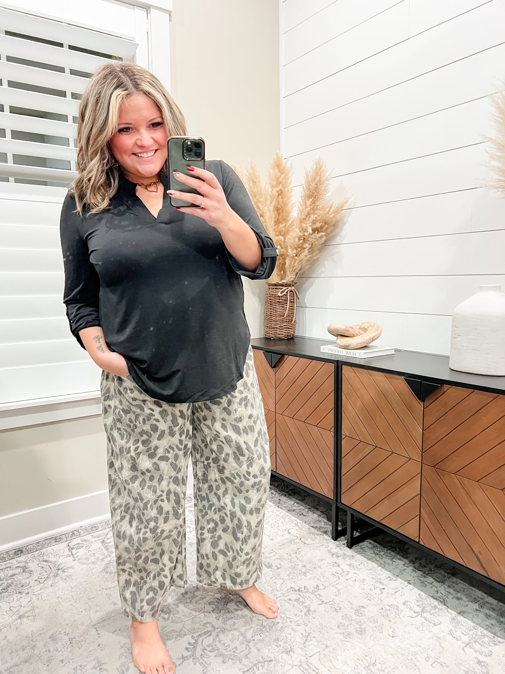 Slip into the Dear Scarlett "Bold Choice" 3/4 Sleeve Split Neck in classic black—a playful staple with a slinky, stretchy fit that hugs your curves. This solid-colored top encourages you to size down one for a perfectly snug, confident look. Ideal for days when you want to feel effortlessly chic and ready to make a statement.