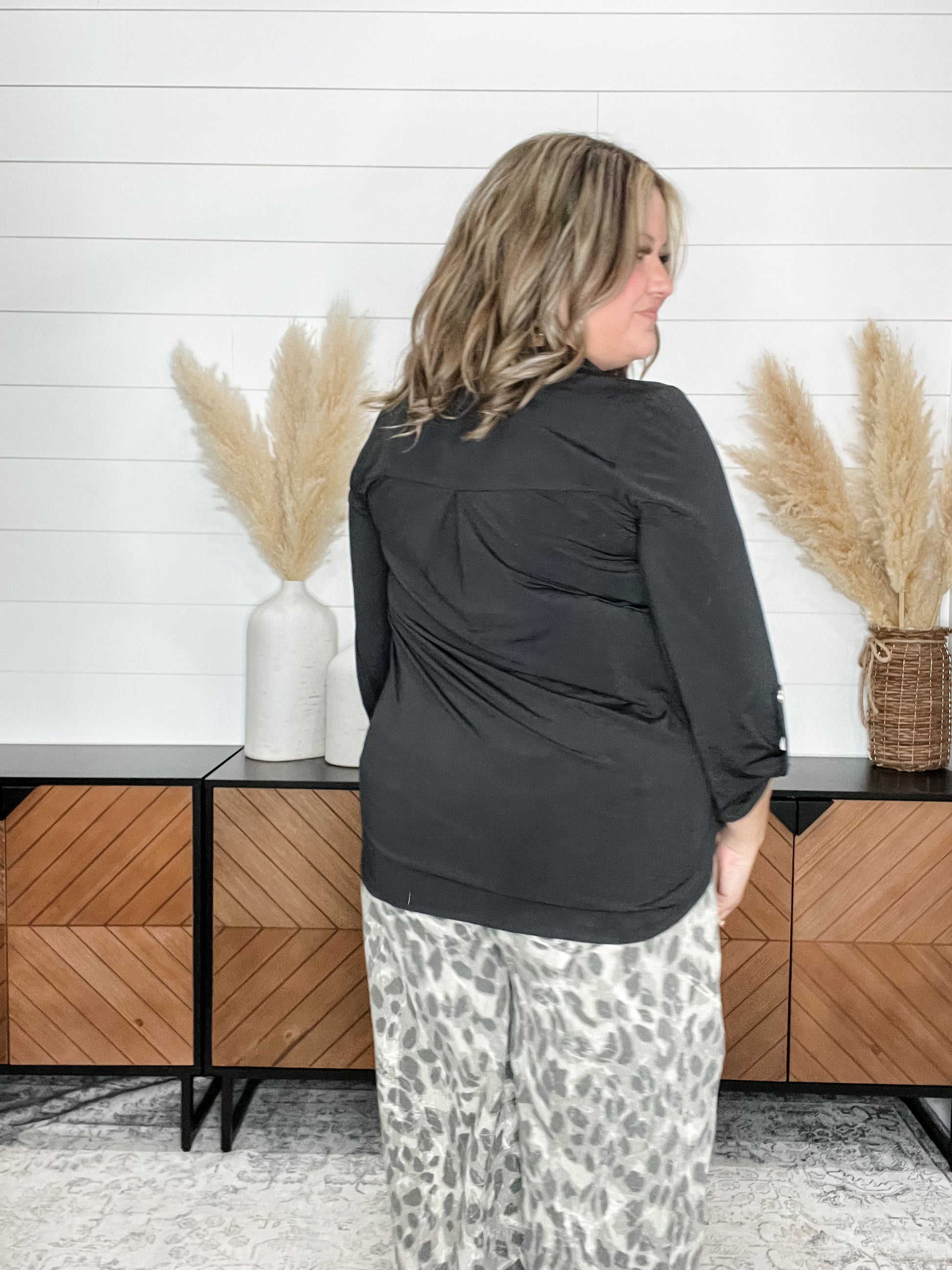Dear Scarlett "Bold Choice" 3/4 Sleeve Split Neck (Black)