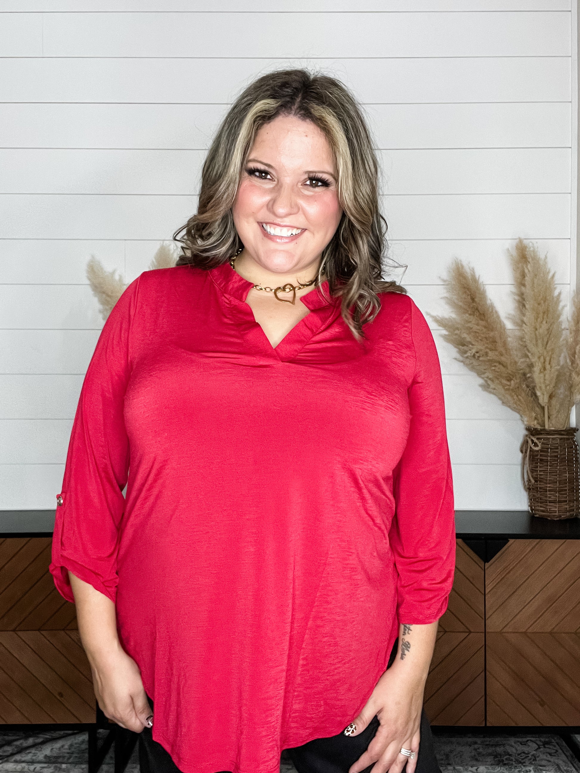 Dear Scarlett "Bold Choice" 3/4 Sleeve Split Neck (Jewel Red)