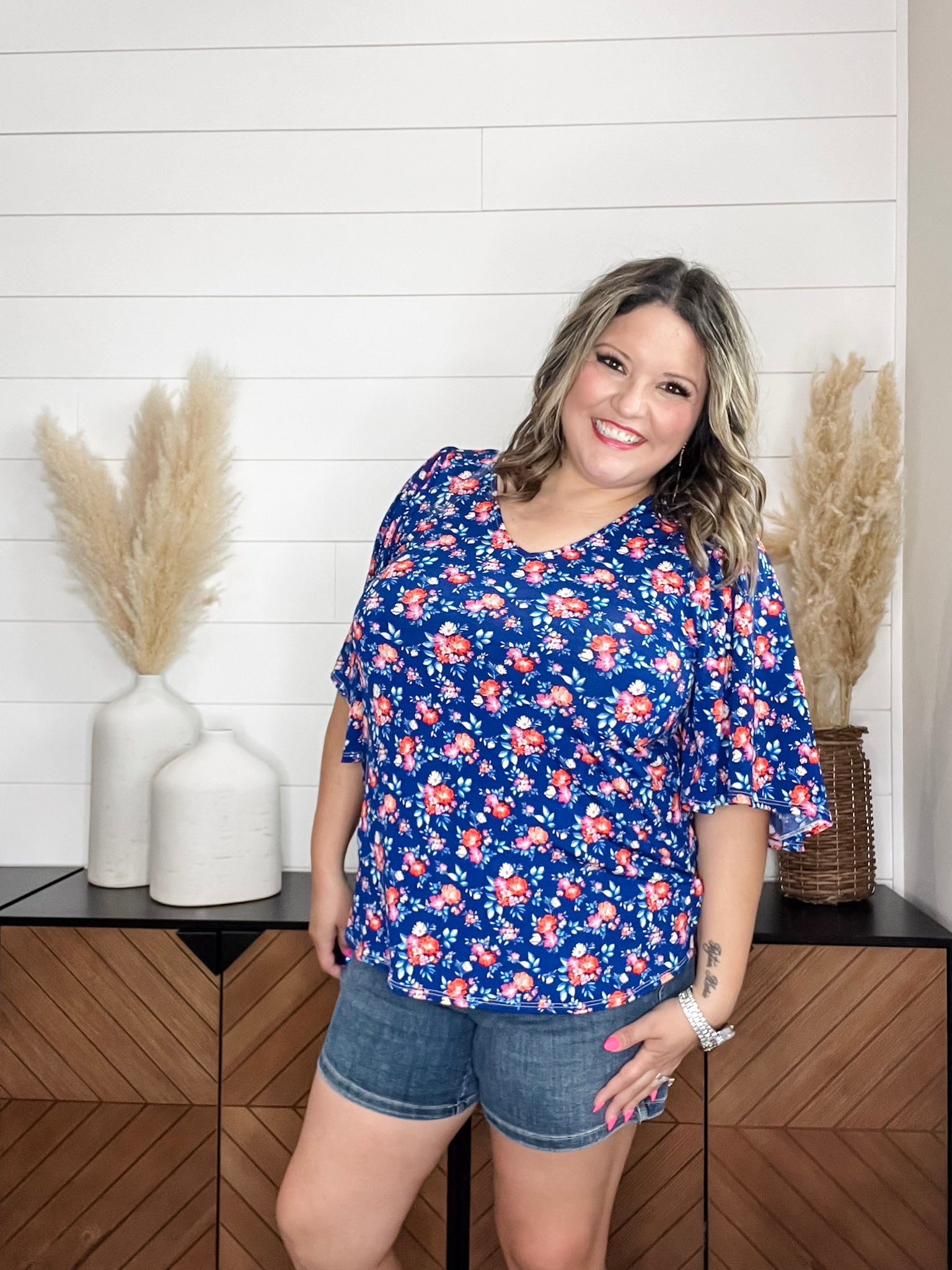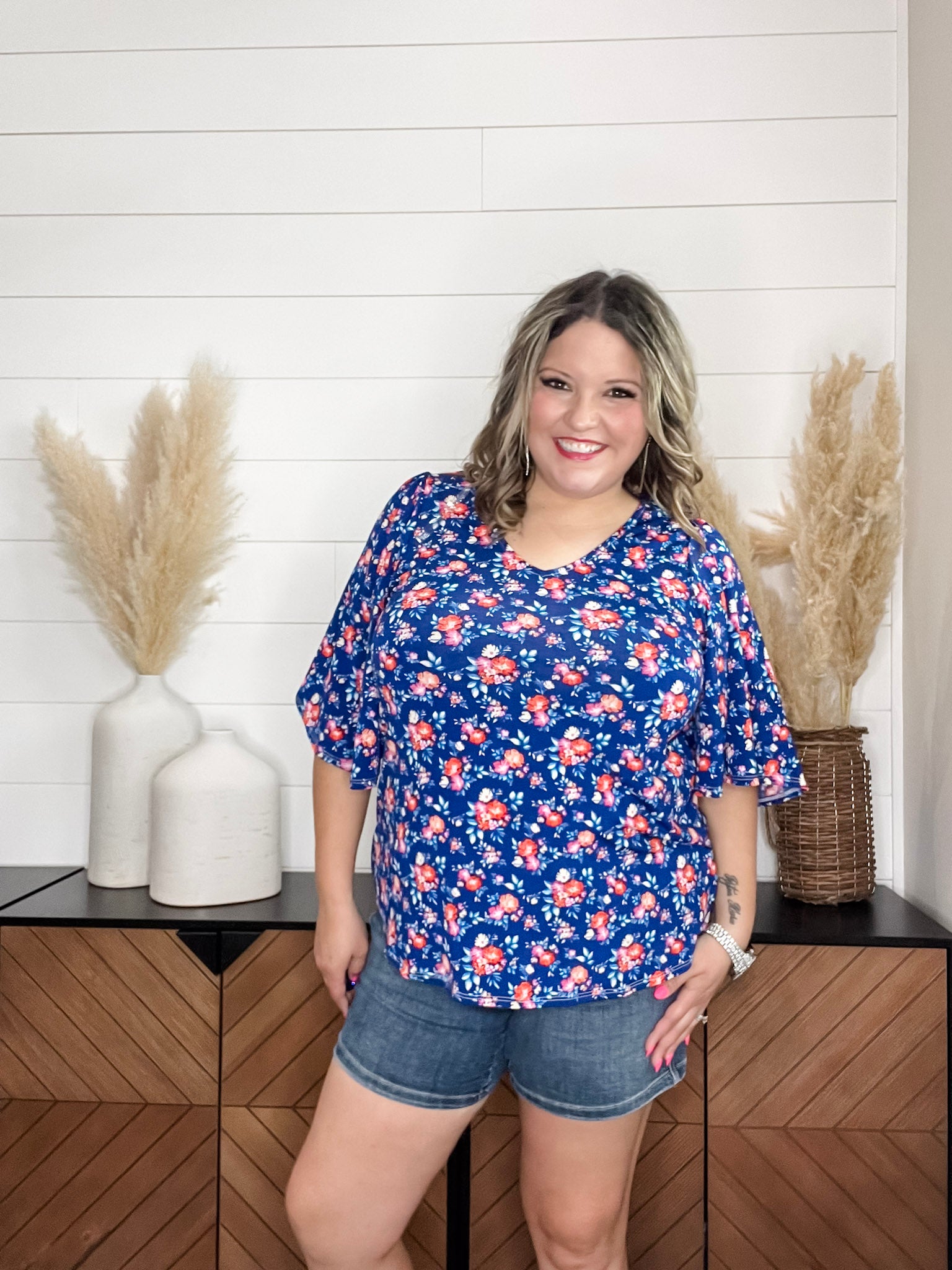 Introducing the "Diffuse" short ruffled sleeve U neck top. Made with slinky stretchy fabric, this top is not only comfortable but also flattering on larger busts. The bell sleeve adds a touch of elegance to this versatile piece. Perfect for any occasion.