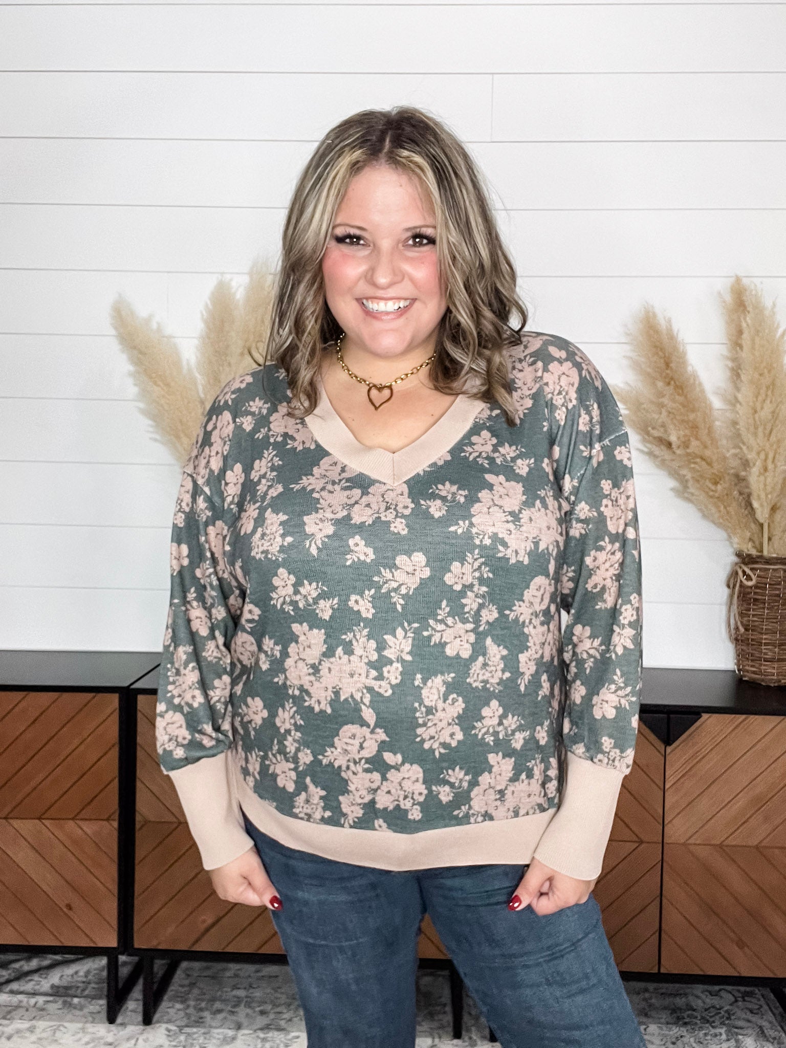 Stay effortlessly stylish in the "Energy" Long Sleeve Floral V Neck, featuring ribbed trim and great stretch for a perfect fit that moves with you. Its playful floral pattern and comfy fabric make it ideal for any occasion where fun meets fashion.