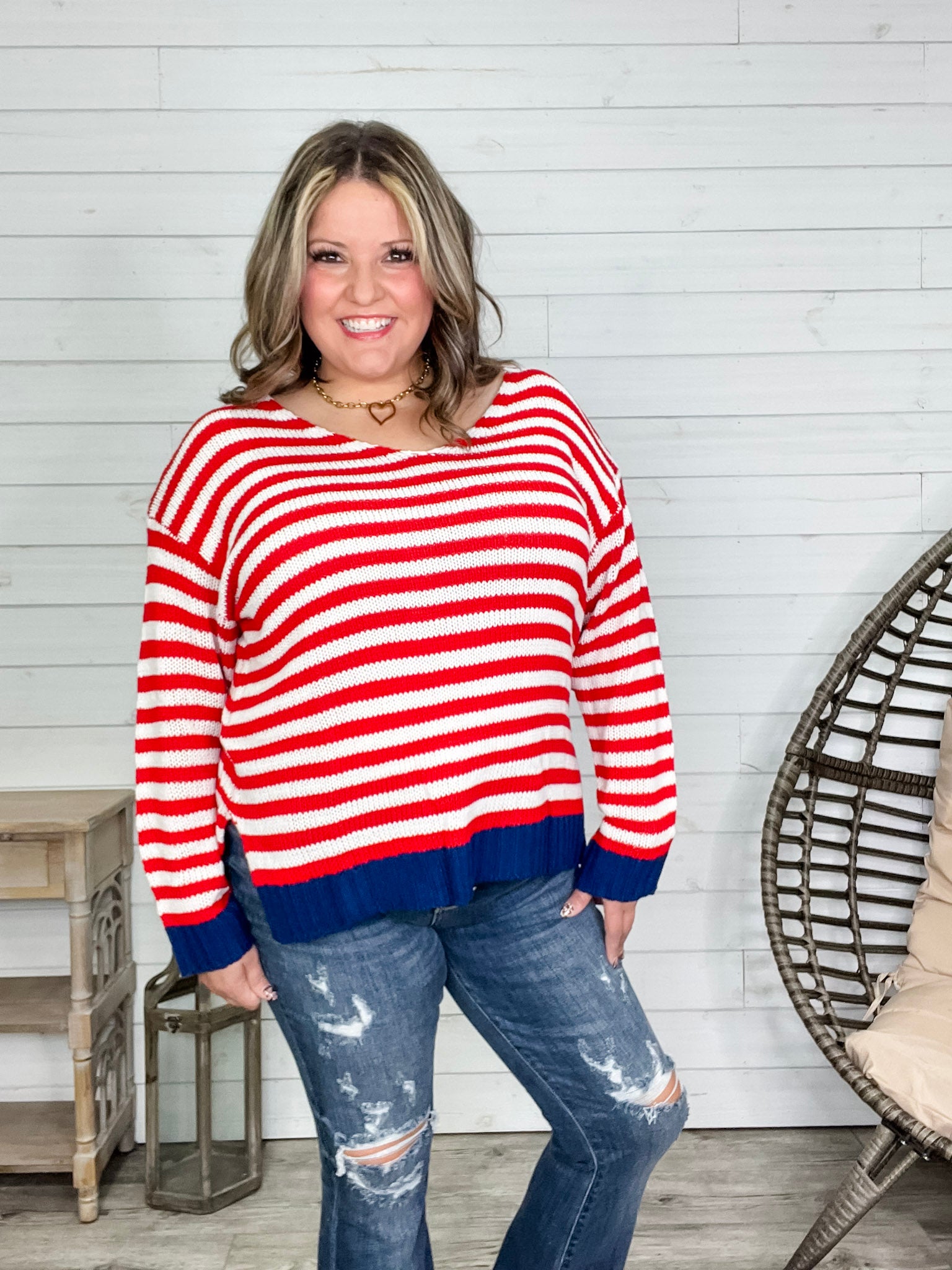 This "First Alert" long sleeve sweater offers a loose fit for comfort and style. Featuring a side slit and v neck, it's perfect for a casual yet elegant look. The lightweight fabric adds to its versatility, making it a must-have addition to any wardrobe.