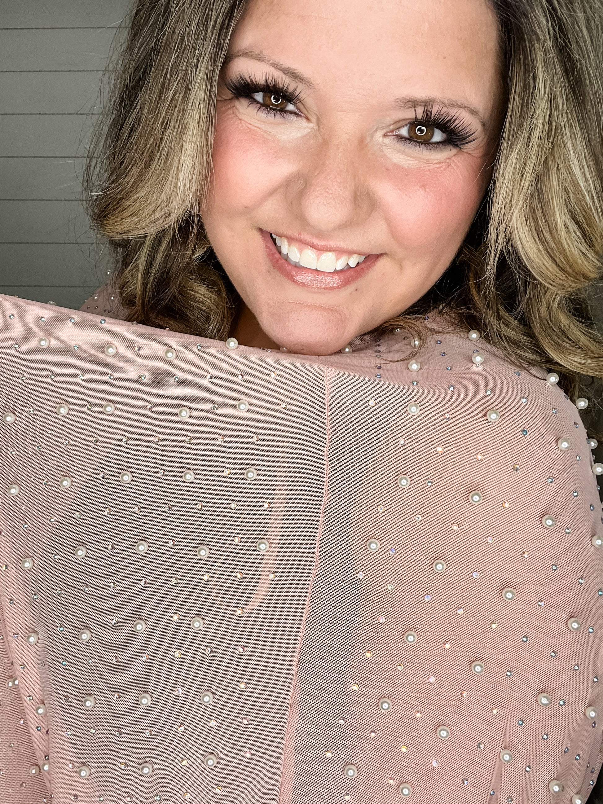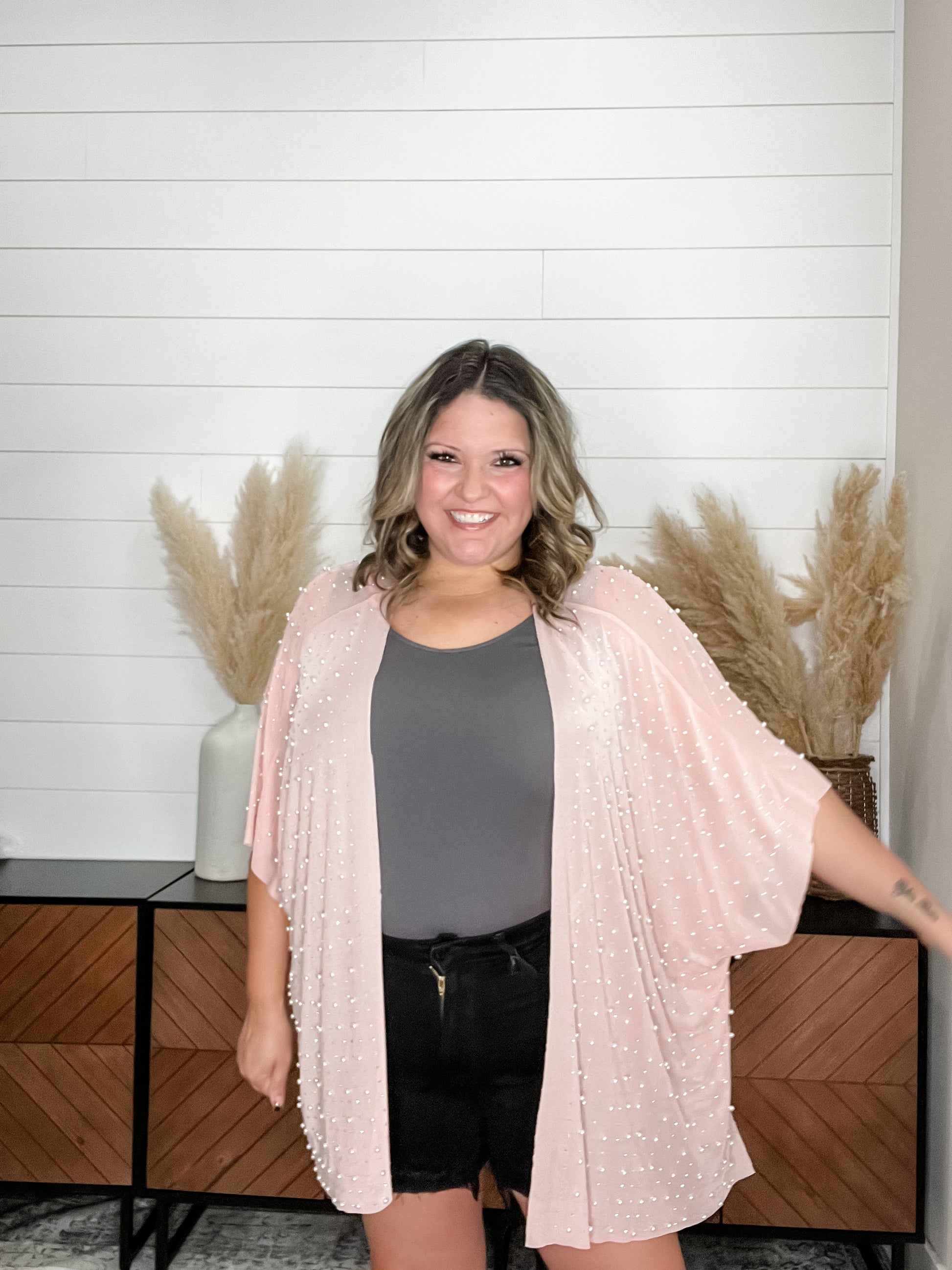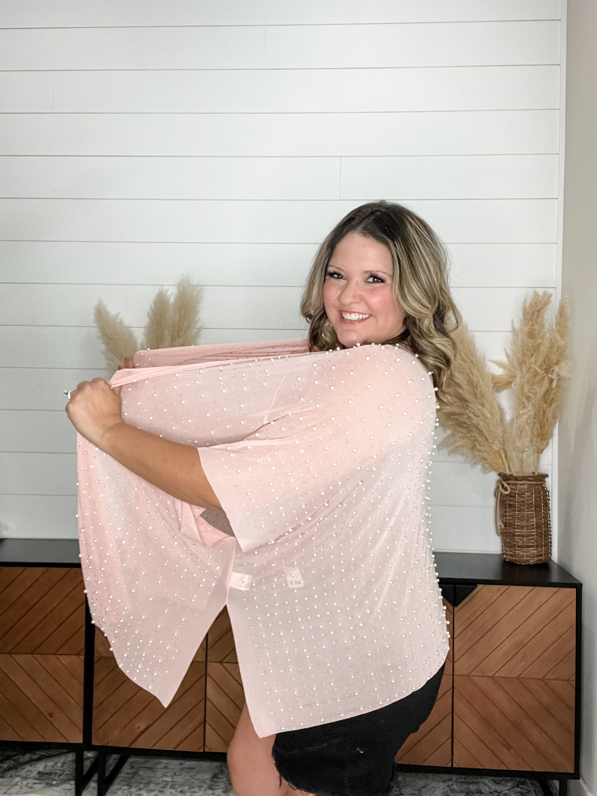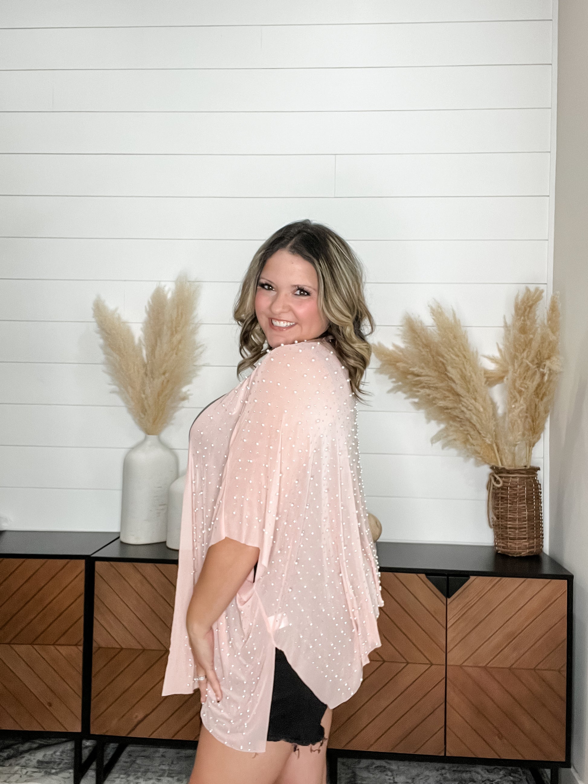 Meet your new go-to for effortless chic: the "Glamour" Studs and Pearls Gauzy Cardigan. This super lightweight kimono brings all the stretch and mega class you love from our fitted Eras top, now reimagined as a flowy, oversized fave. Adorned with the same elegant pearls, it drapes beautifully for a look that’s both comfortable and impossible to ignore. Perfect for adding a playful yet polished touch to any outfit!