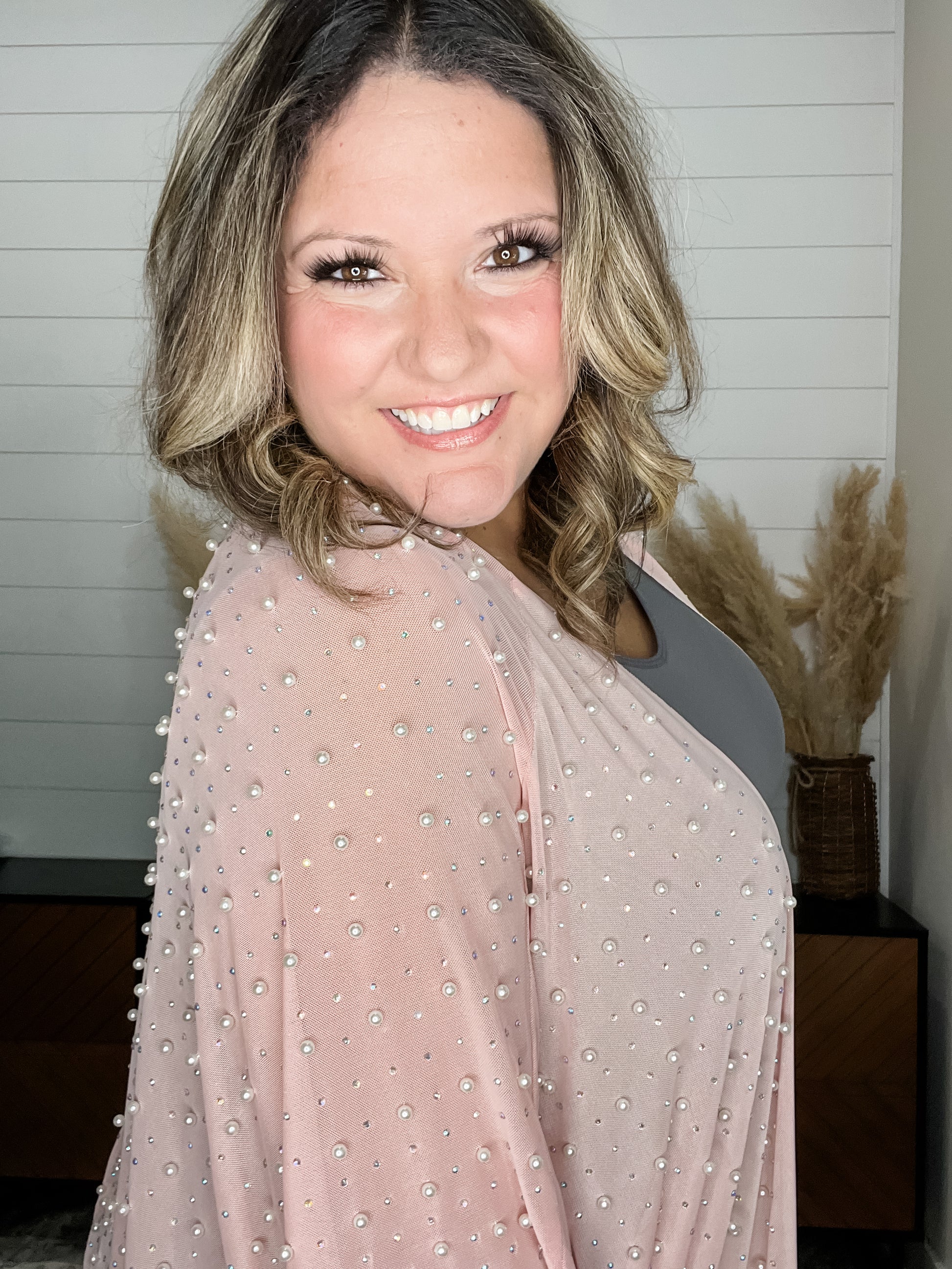 "Glamour" Studs and Pearls Gauzy Cardigan (Multiple Colors)