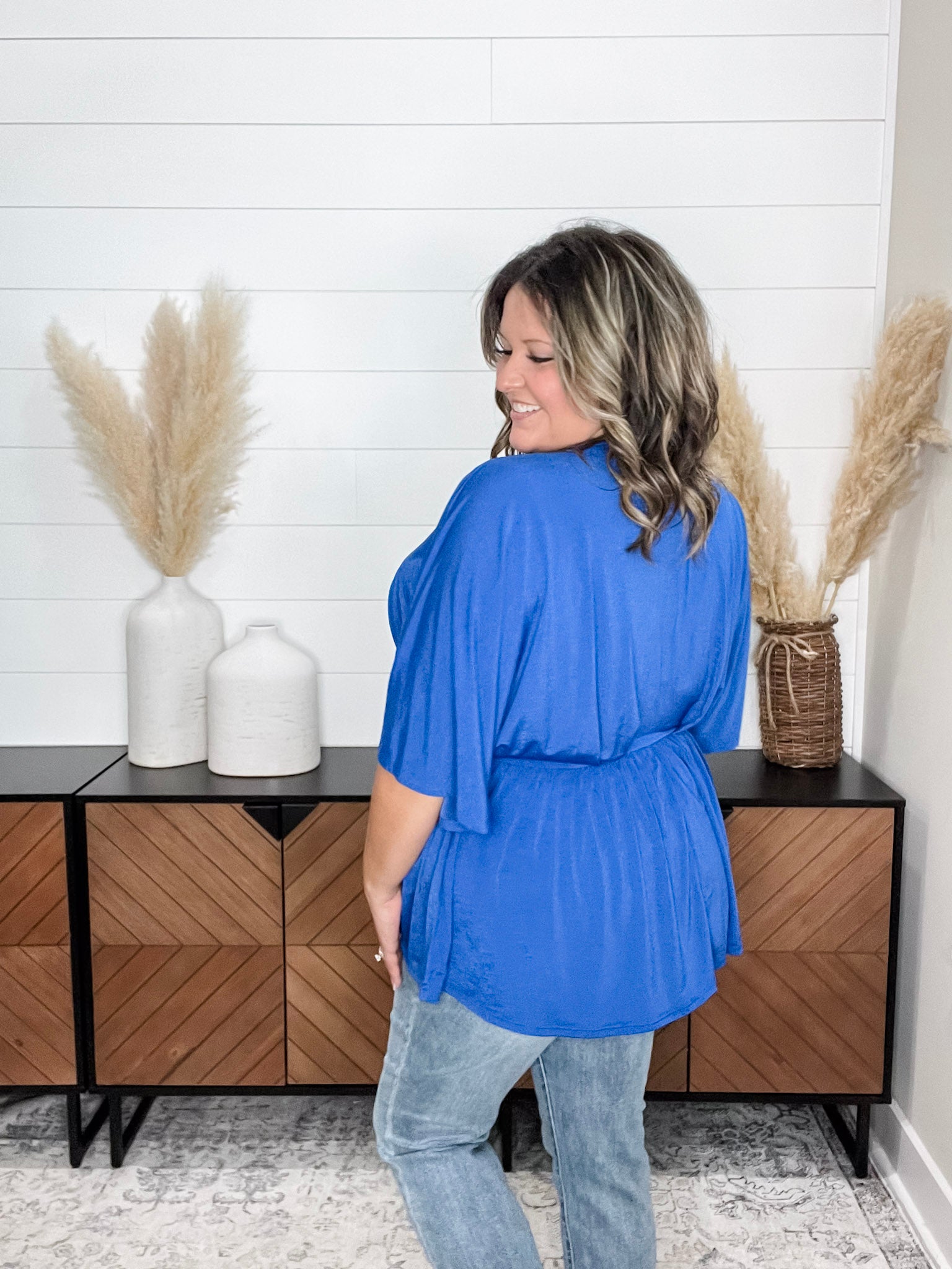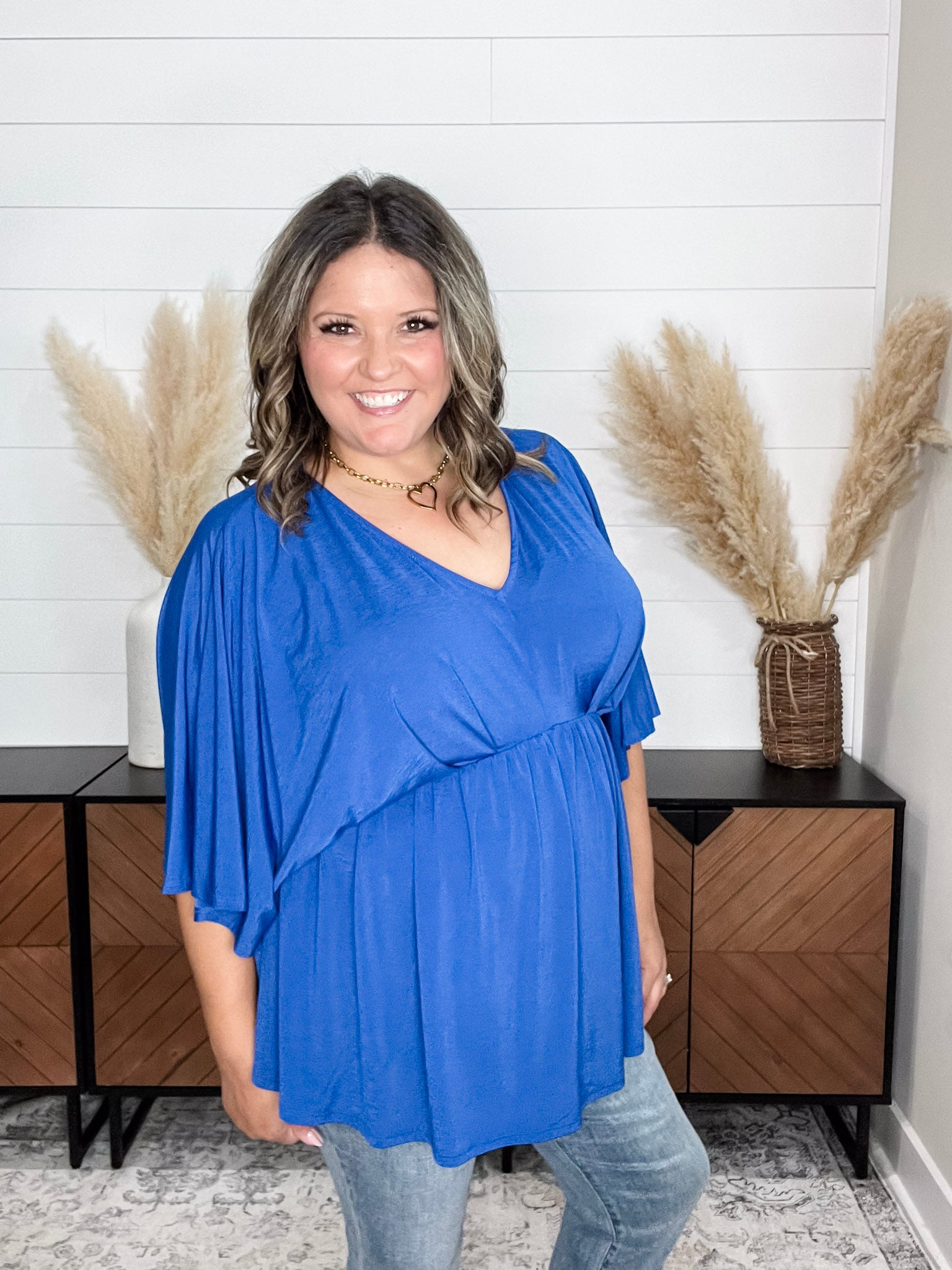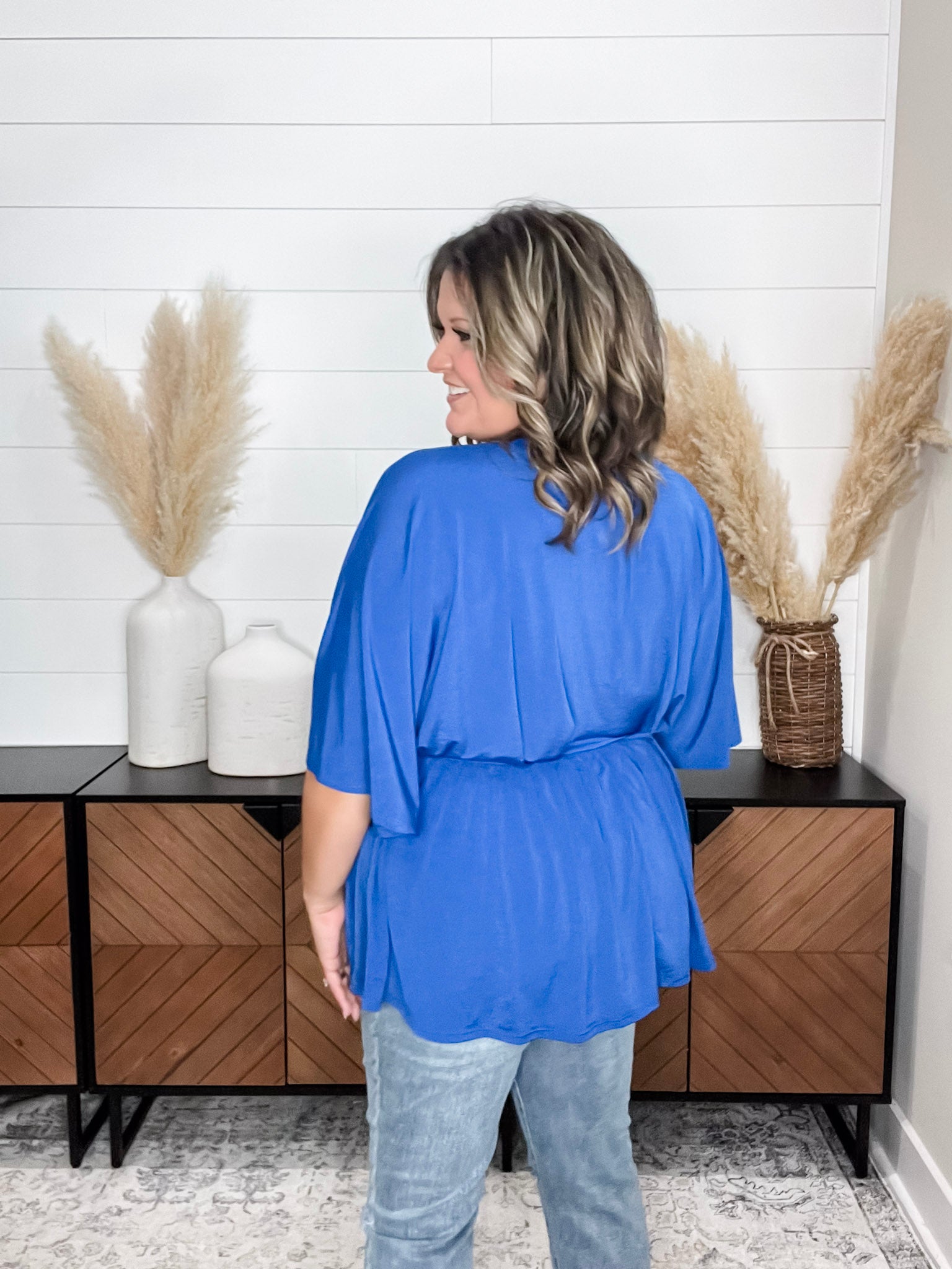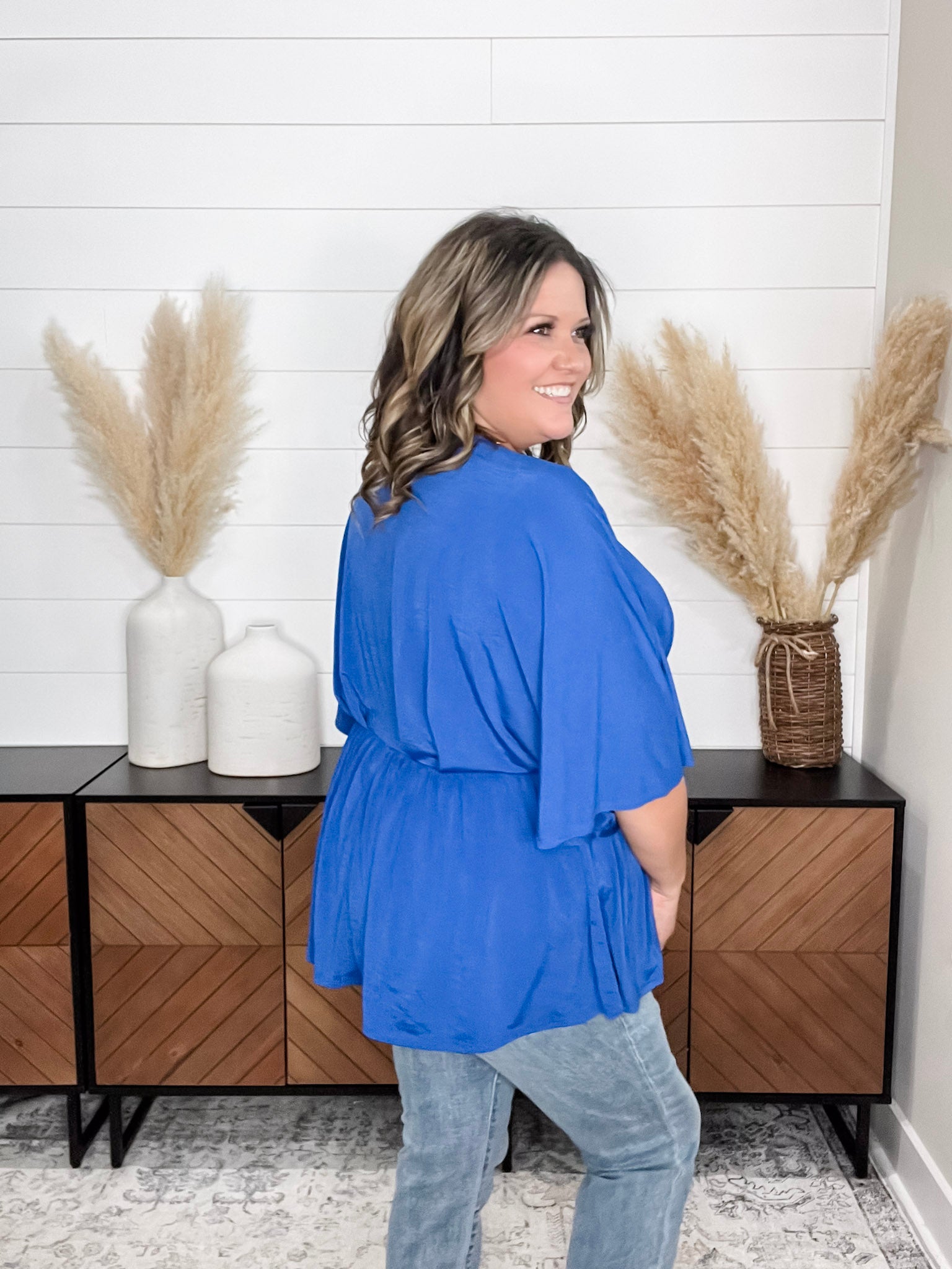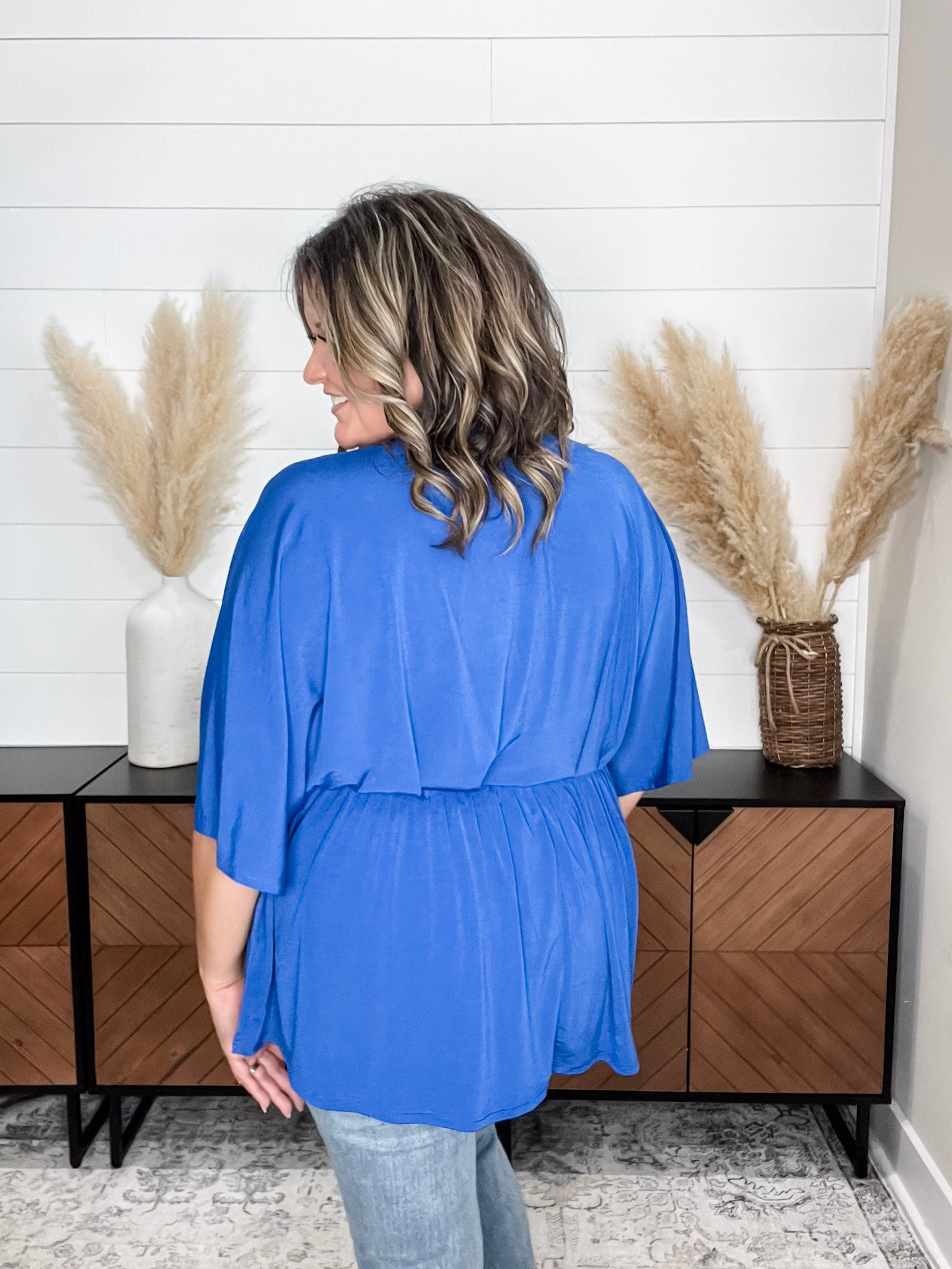 "Here We Go Again" V Neck 3/4 Bell Sleeve (Royal Blue)
