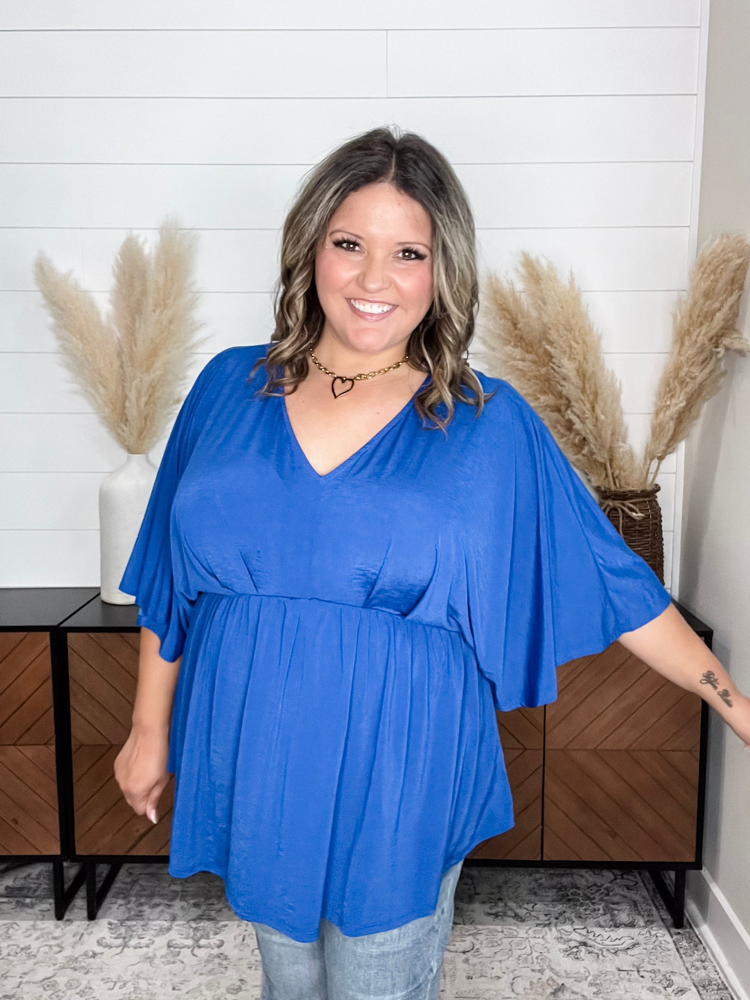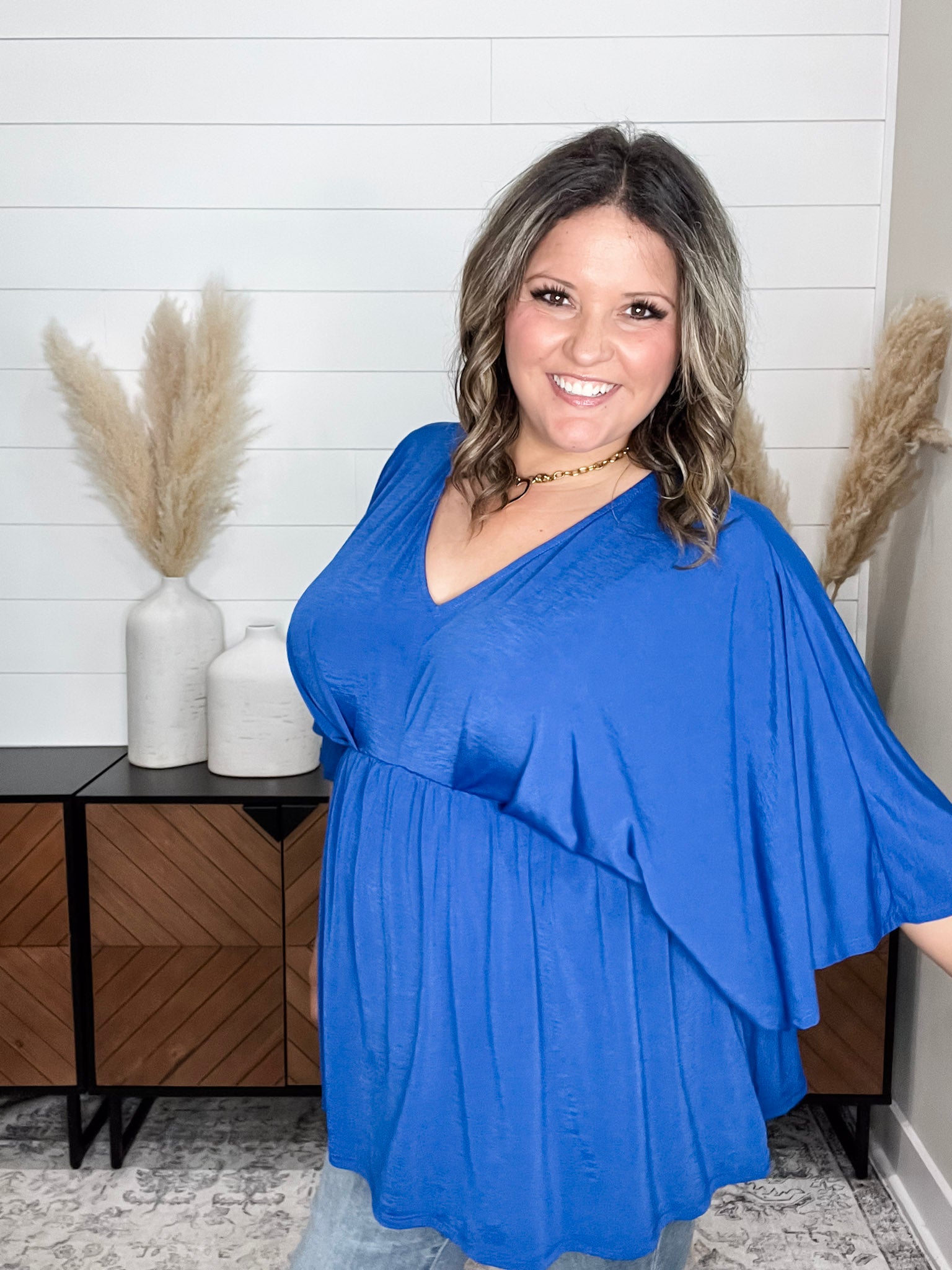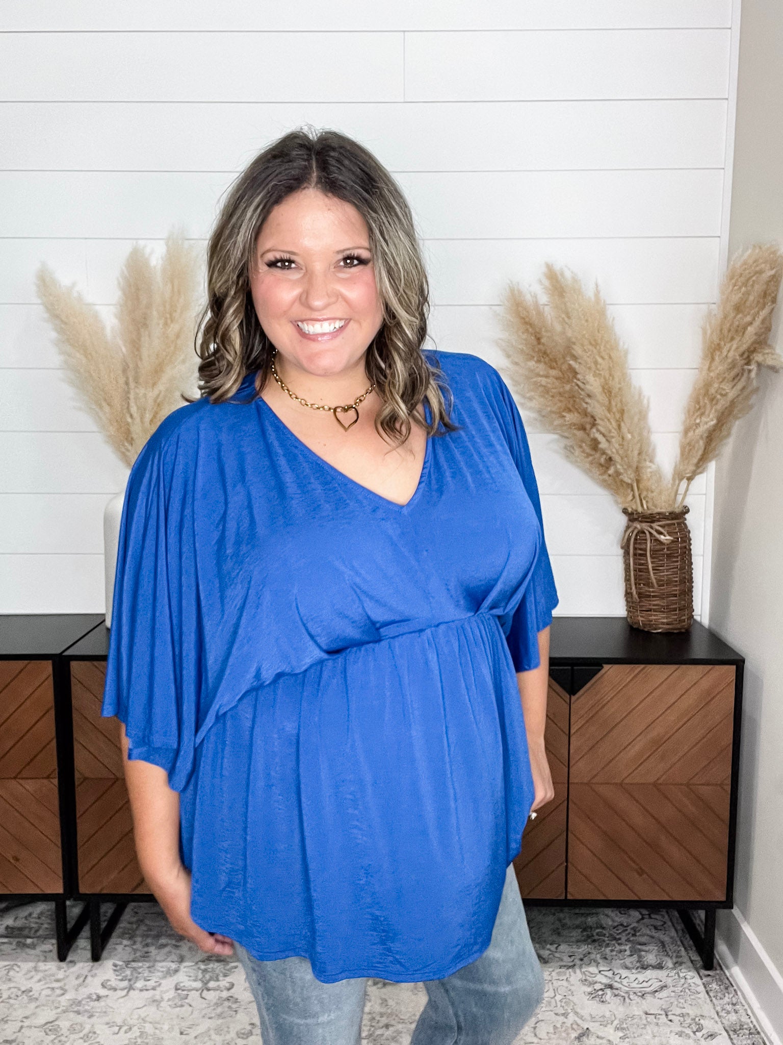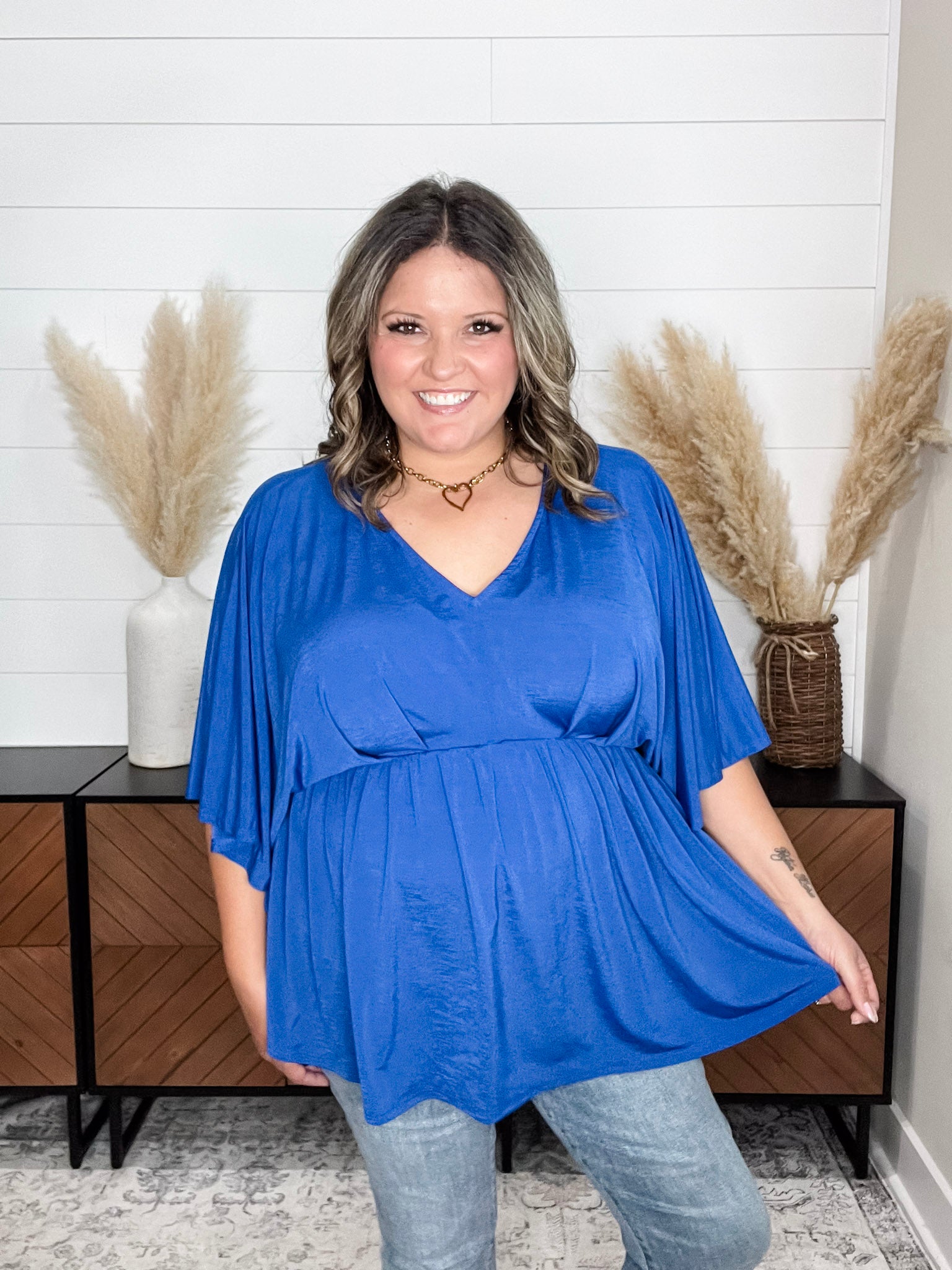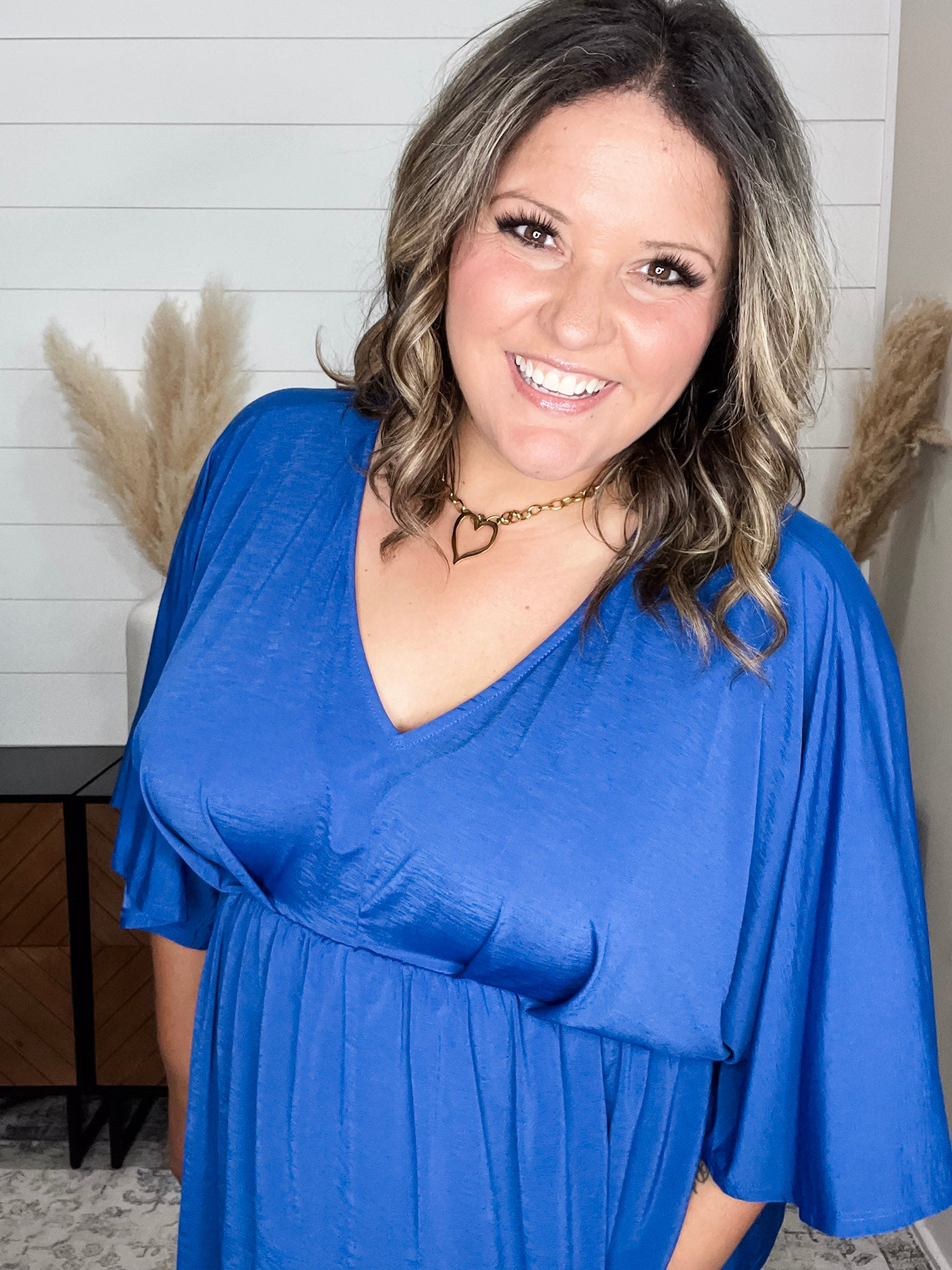 "Here We Go Again" V Neck 3/4 Bell Sleeve (Royal Blue)