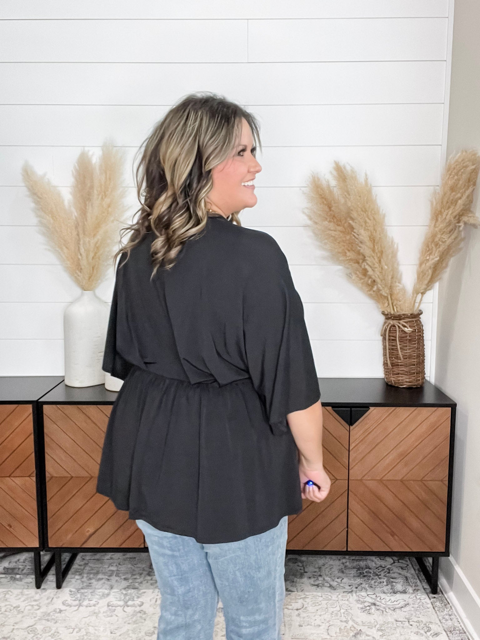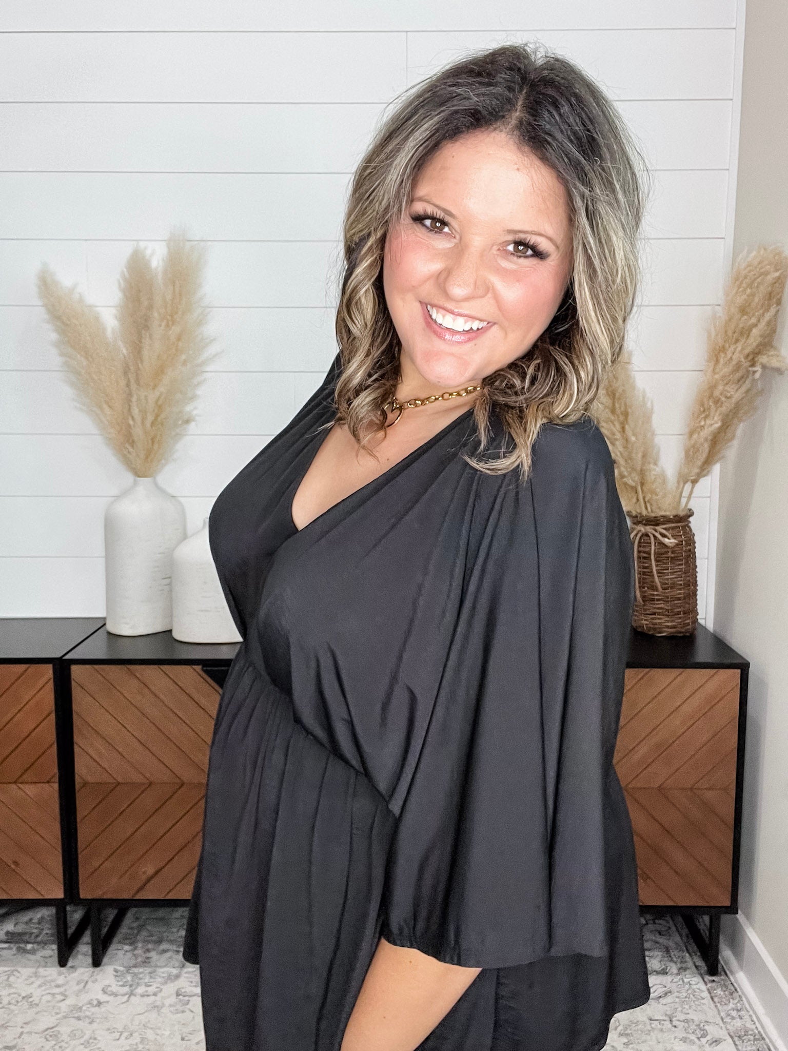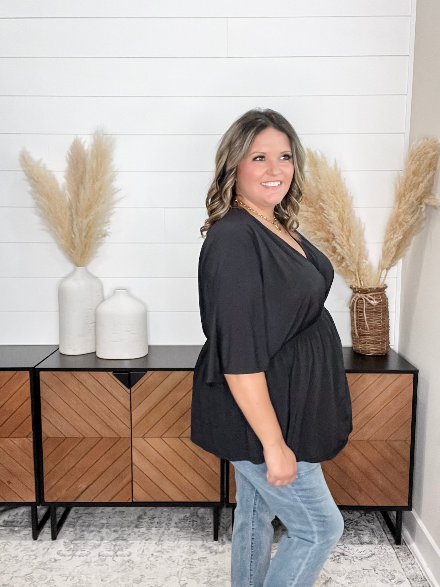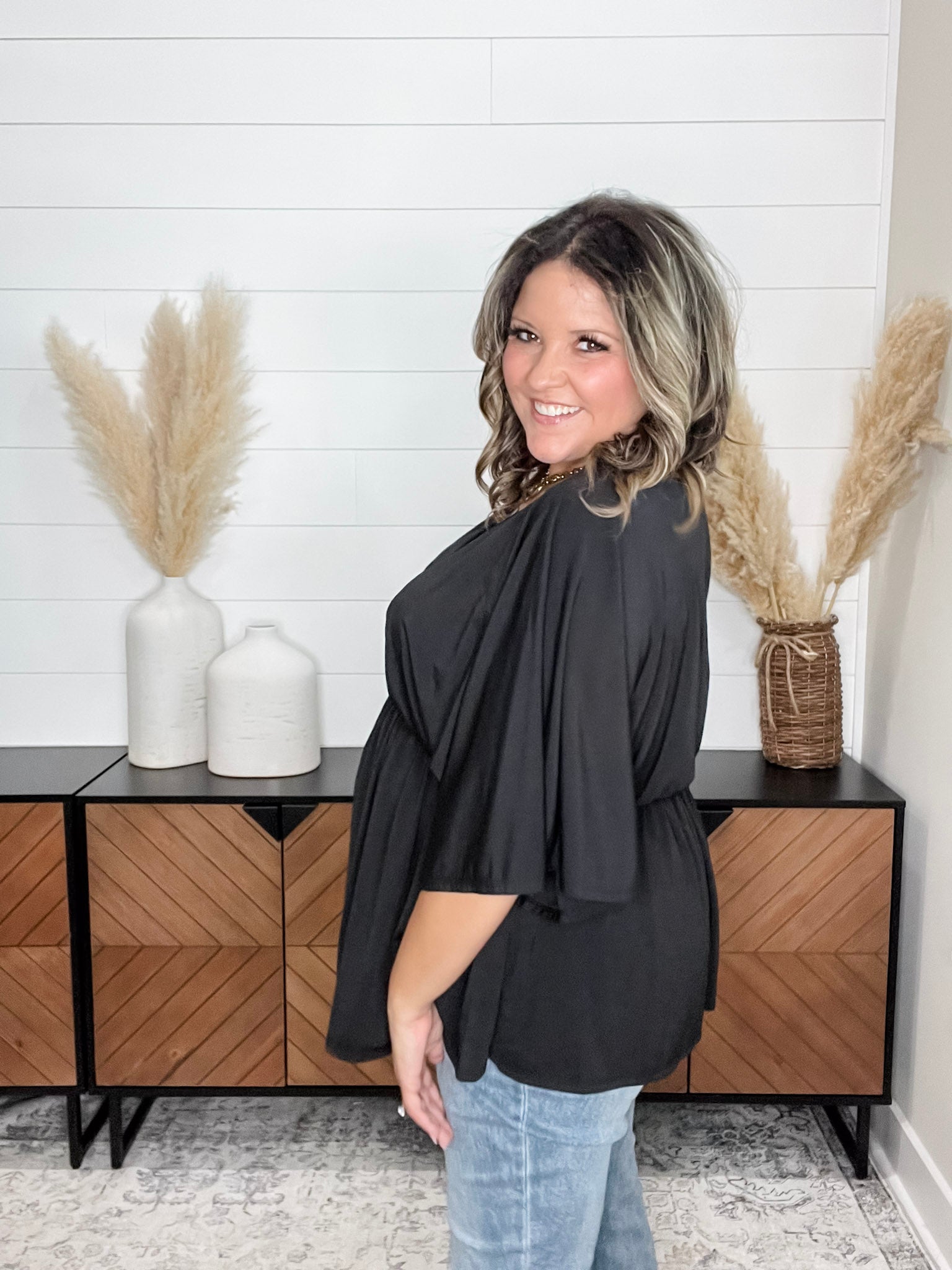 "Here We Go Again" V Neck 3/4 Bell Sleeve (Black)