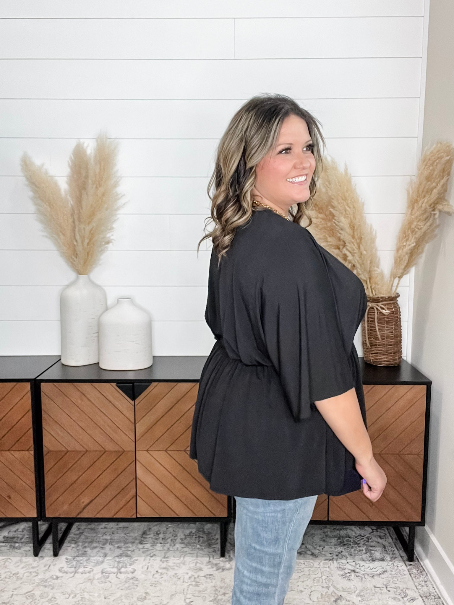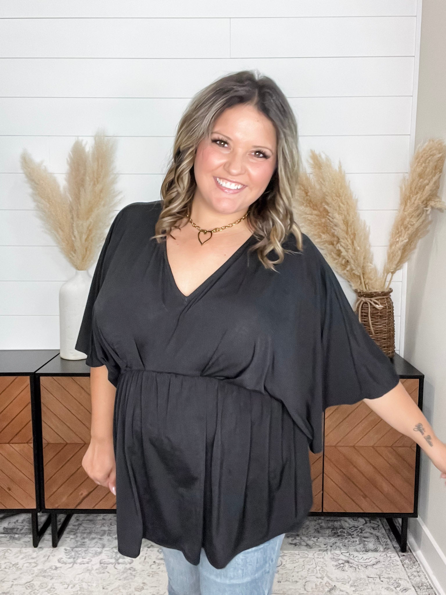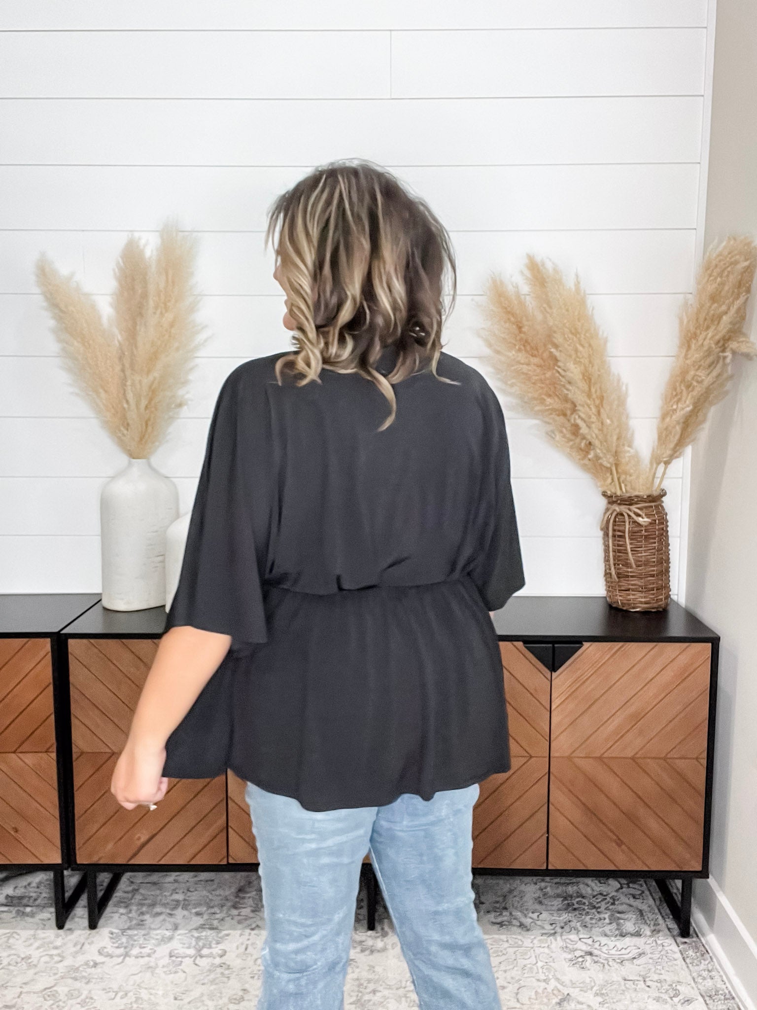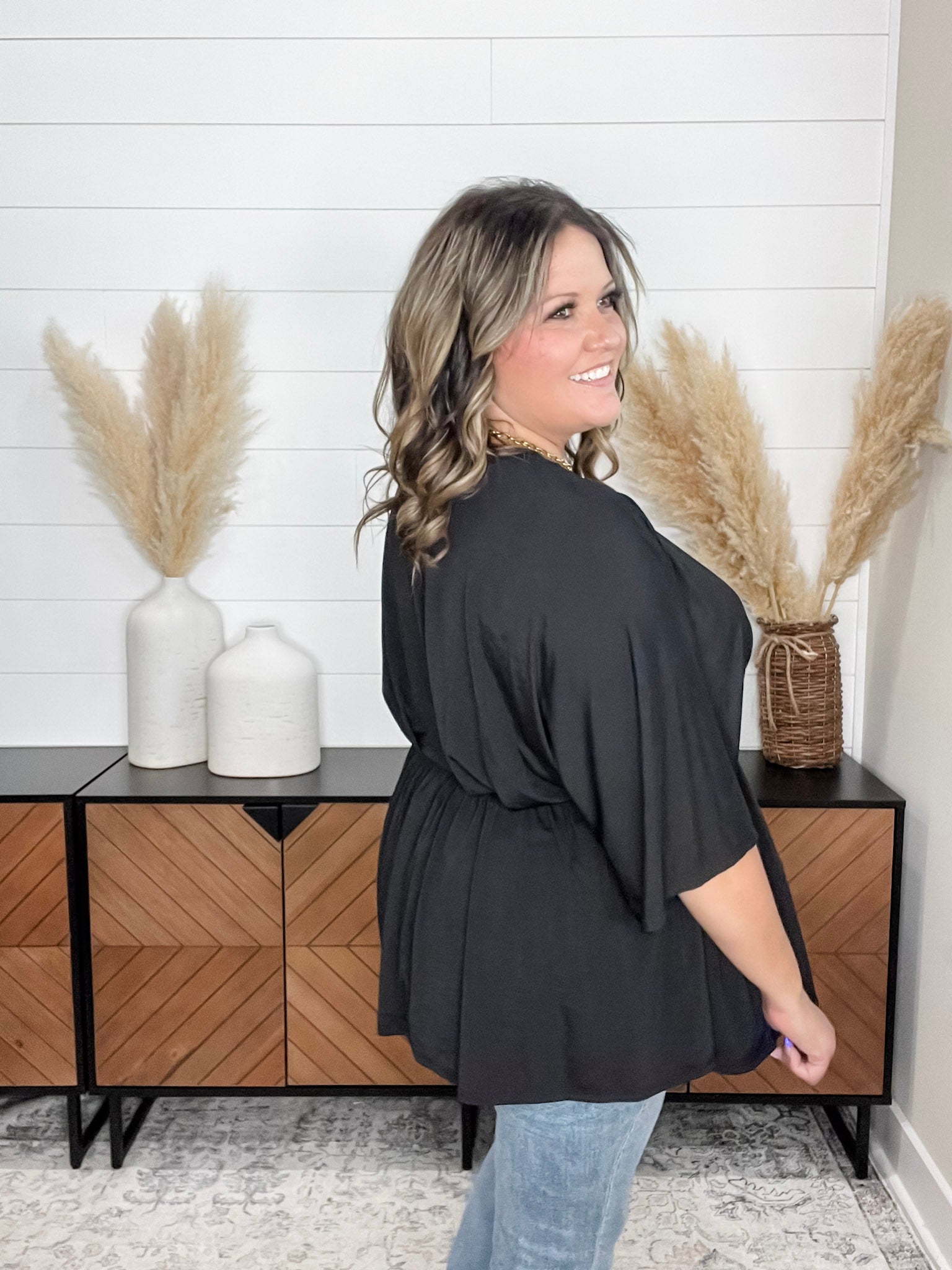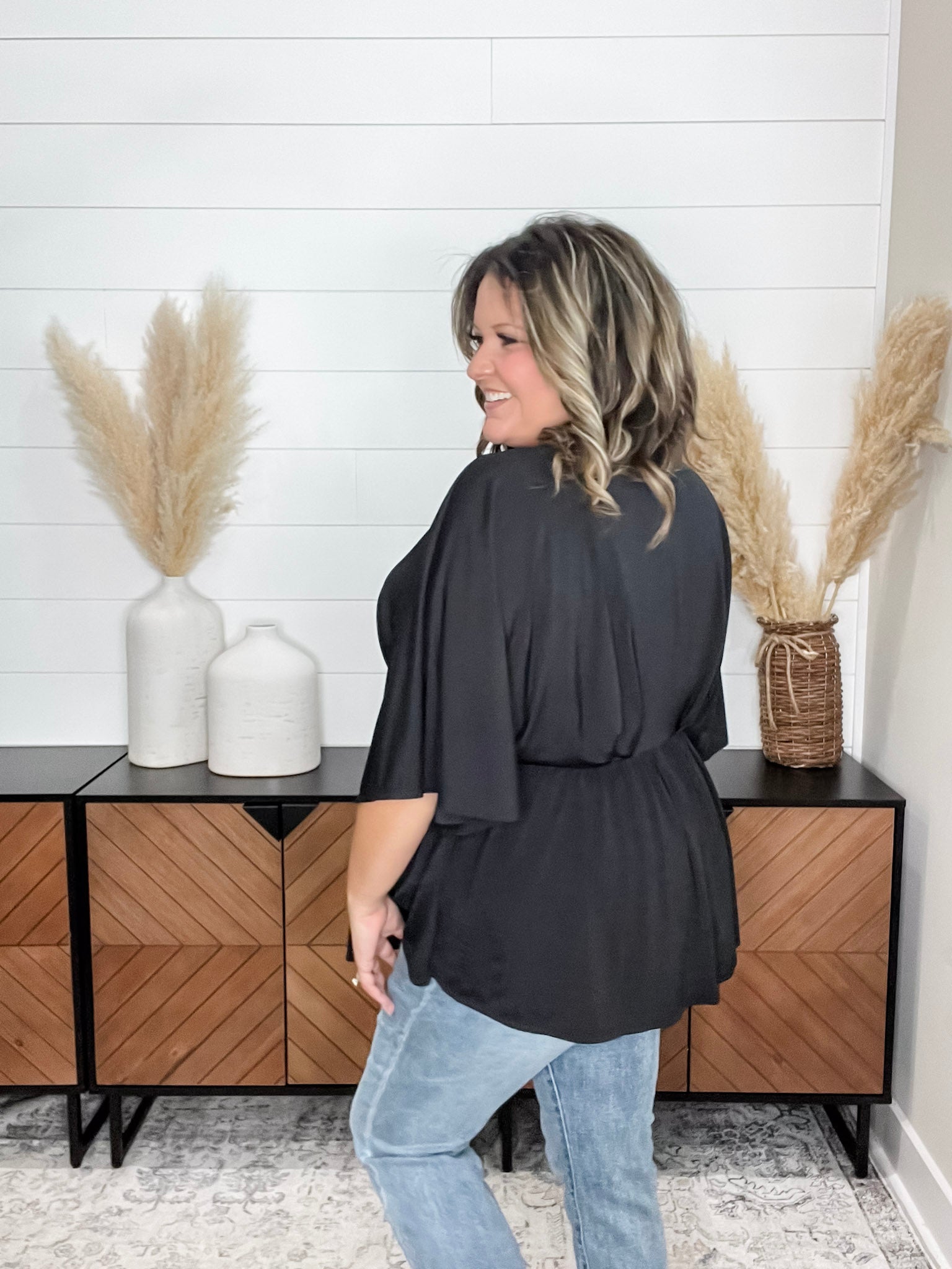 "Here We Go Again" V Neck 3/4 Bell Sleeve (Black)