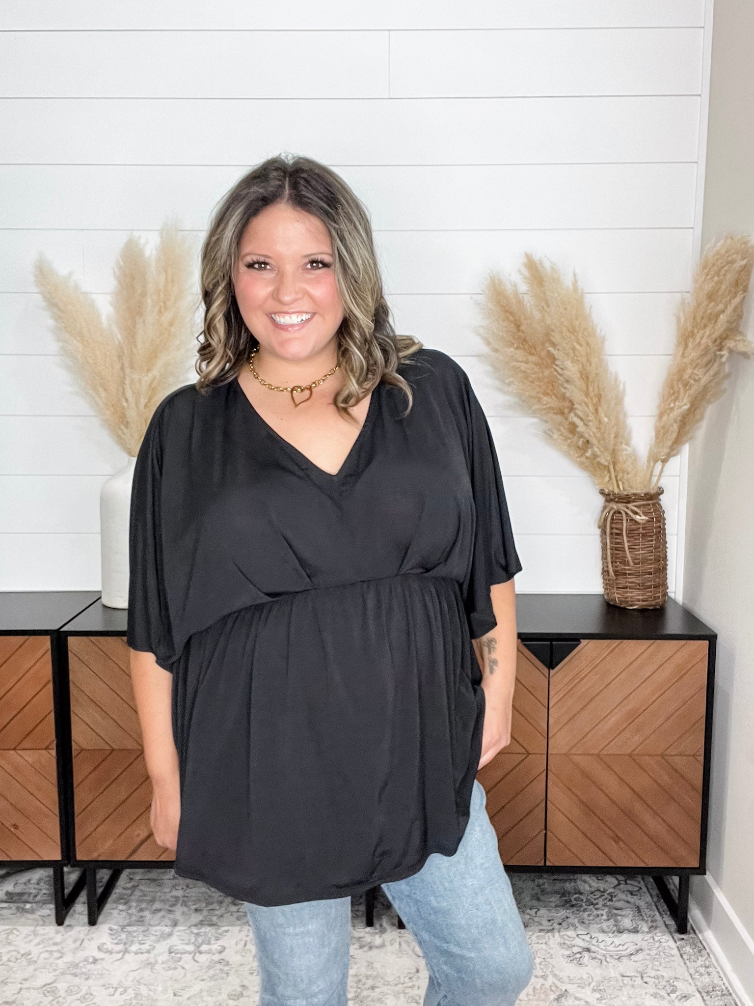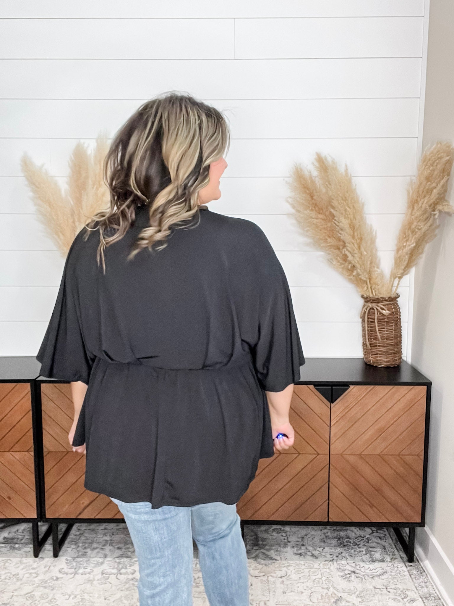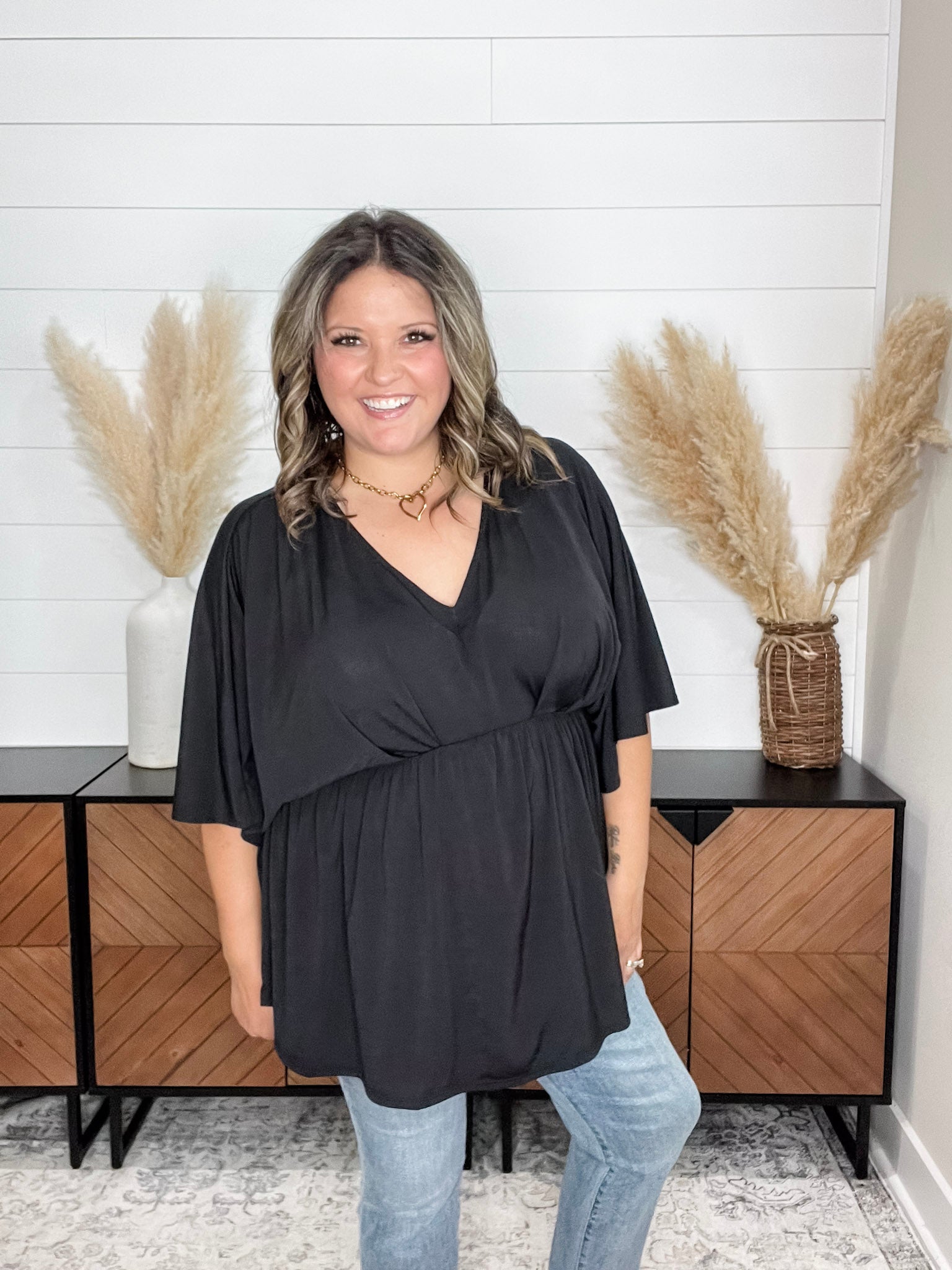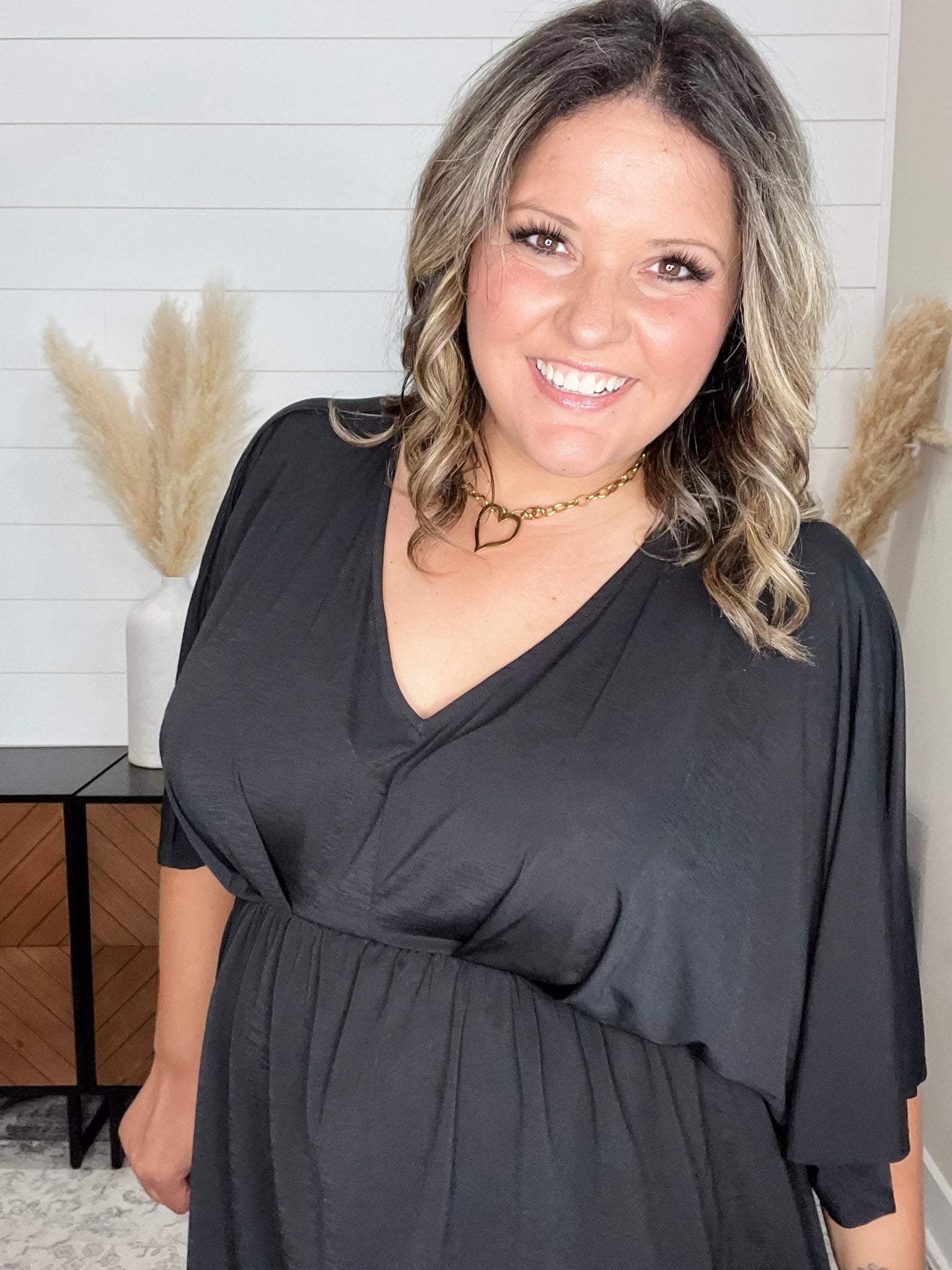 "Here We Go Again" V Neck 3/4 Bell Sleeve (Black)