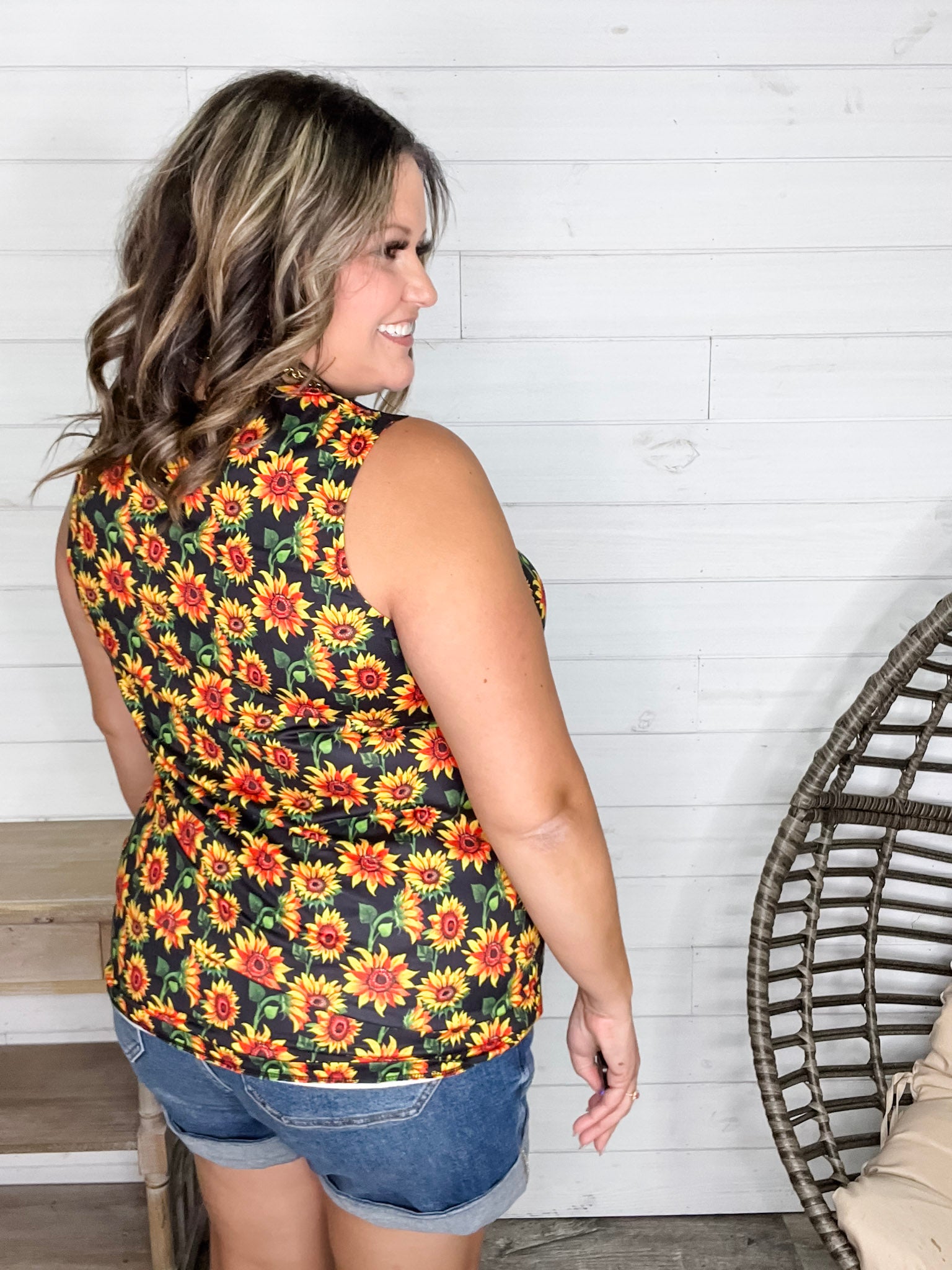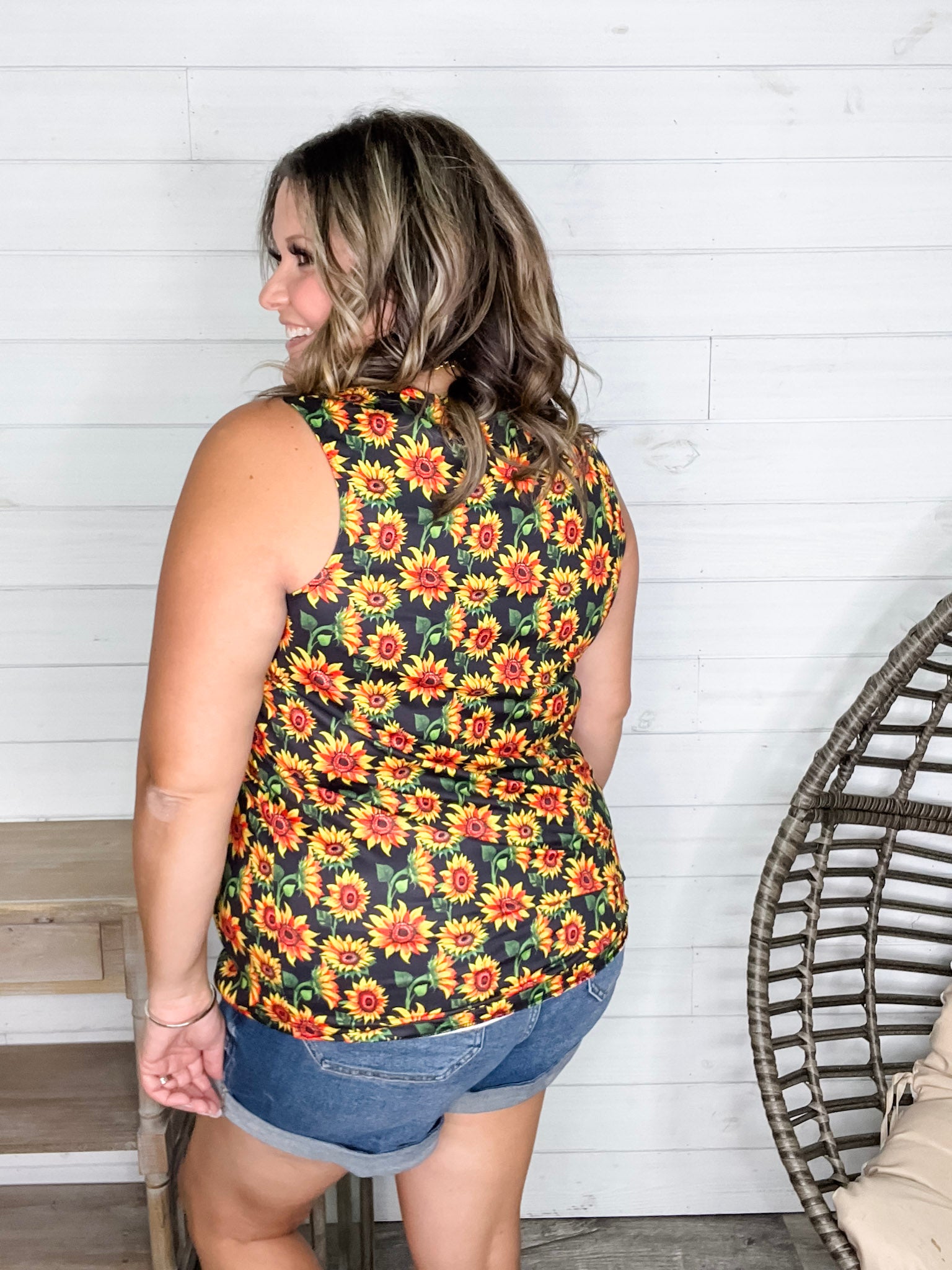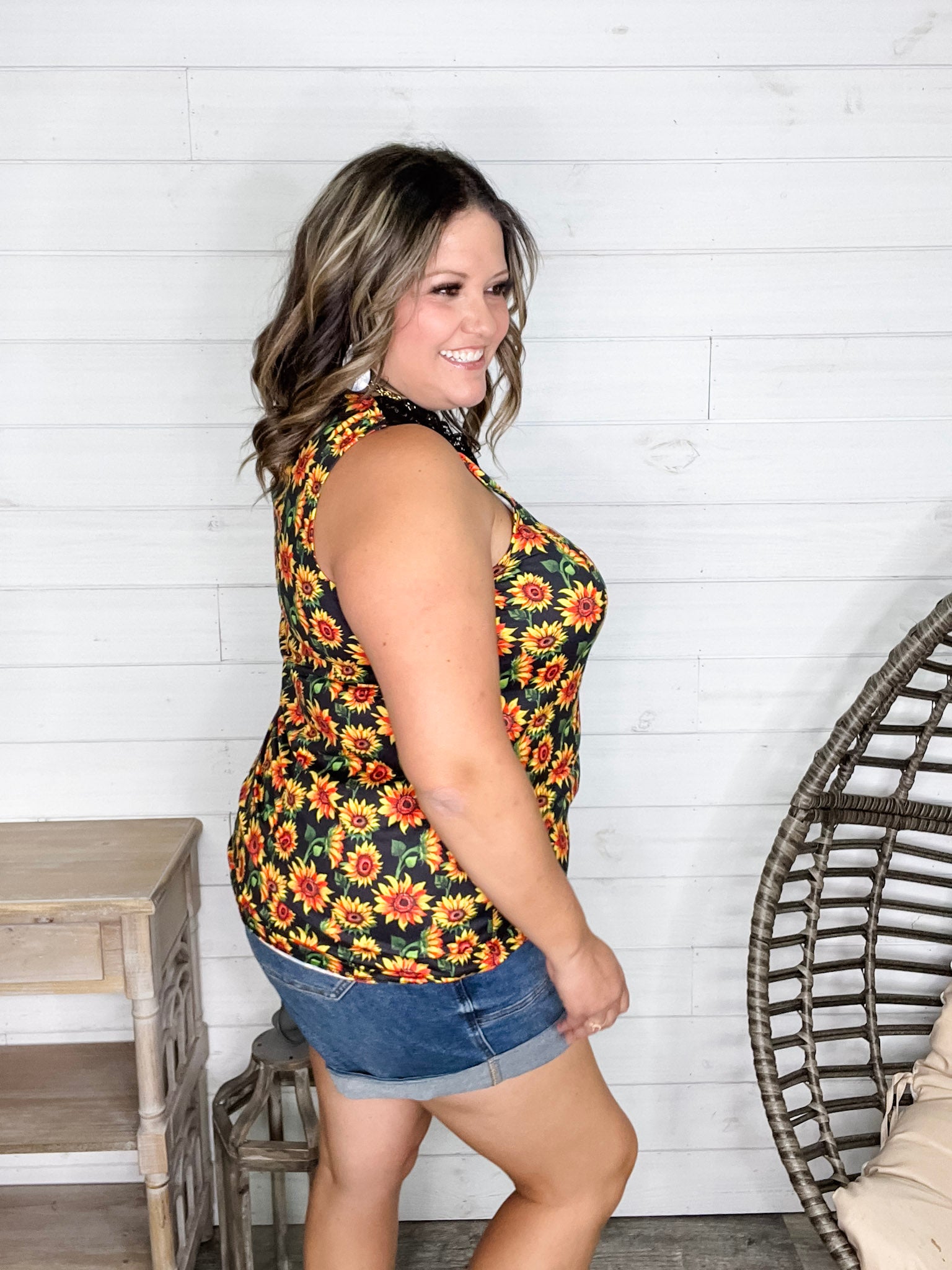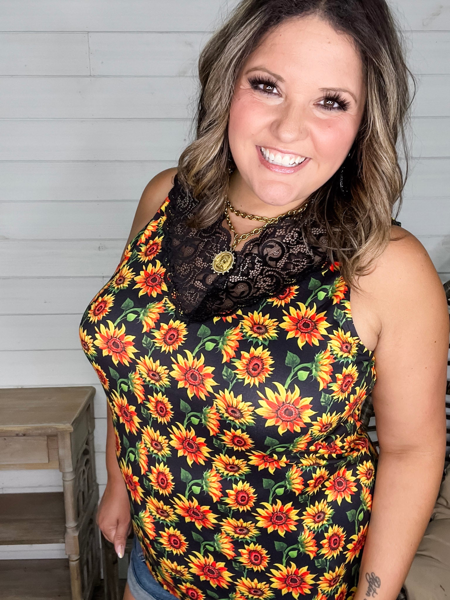Brighten your day with the "I Am Happy" Sunflower Tank, featuring delicate lace details for a flirty touch. Crafted from buttery soft fabric, it feels like a gentle hug all day long. For a more fitted look, size down one and enjoy a playful, comfy style that’s perfect for sunny adventures.