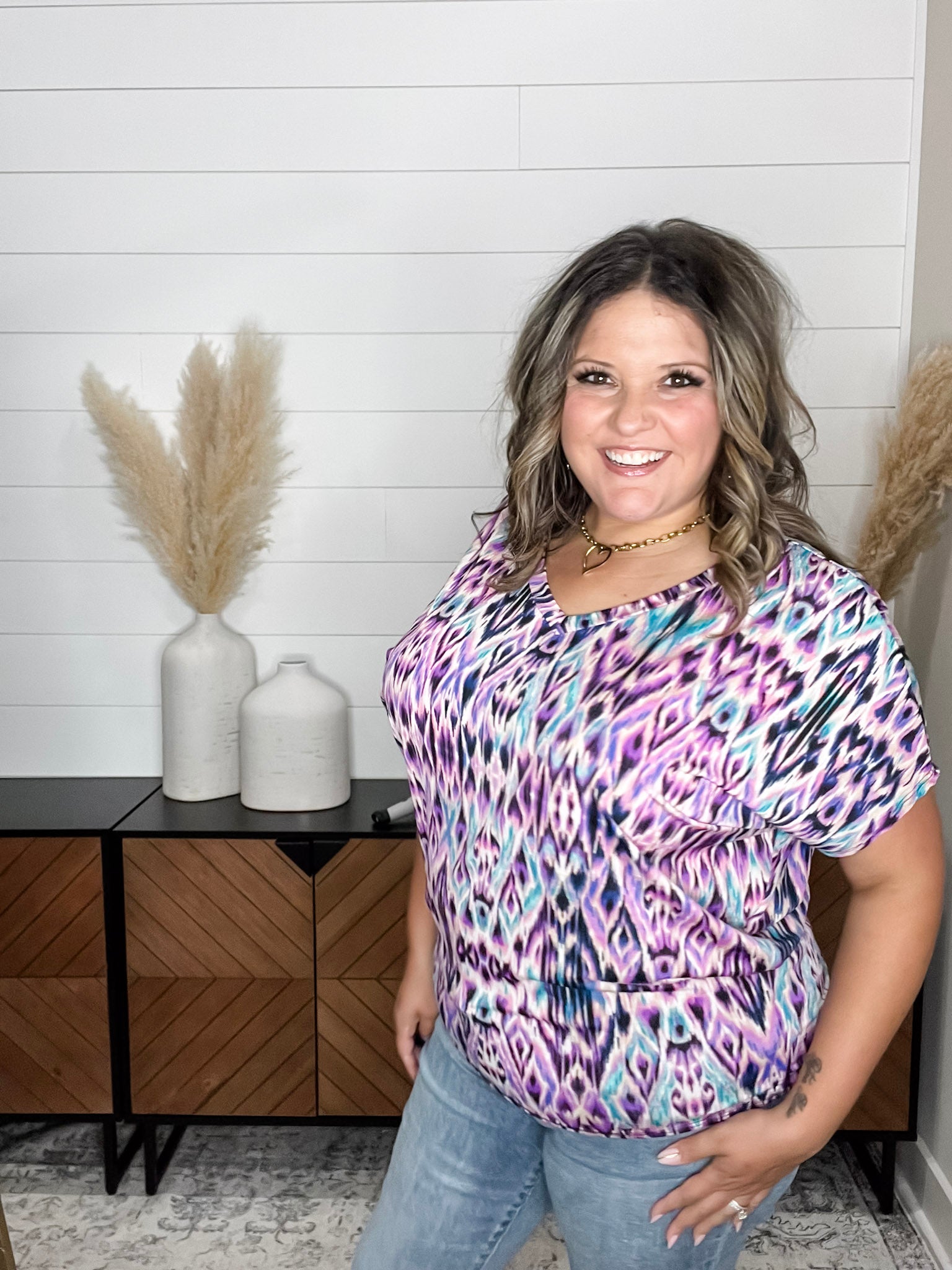 Slinky stretchy dolman styles are roomy under the arms and taper in at the tummy. Wear your regular store size. Full sizing below.