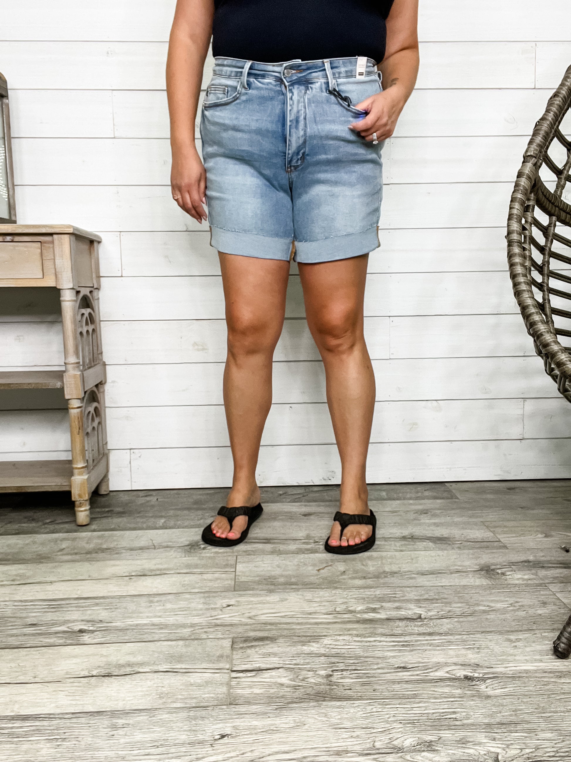Stay cool and confident all summer long with the Judy Blue "Stone Cold" Cooling Tummy Control Shorts. These denim shorts feature innovative Sorbtek technology that wicks away moisture and keeps you feeling fresh, even on the hottest, most humid days. Designed to smooth and flatter your tummy, they offer a comfortable fit without any swamp booty worries. Perfect for sunny adventures or casual outings, these shorts combine style and function to keep you looking and feeling cool all season. Embrace the heat with a playful edge and chill vibes in these must-have shorts!