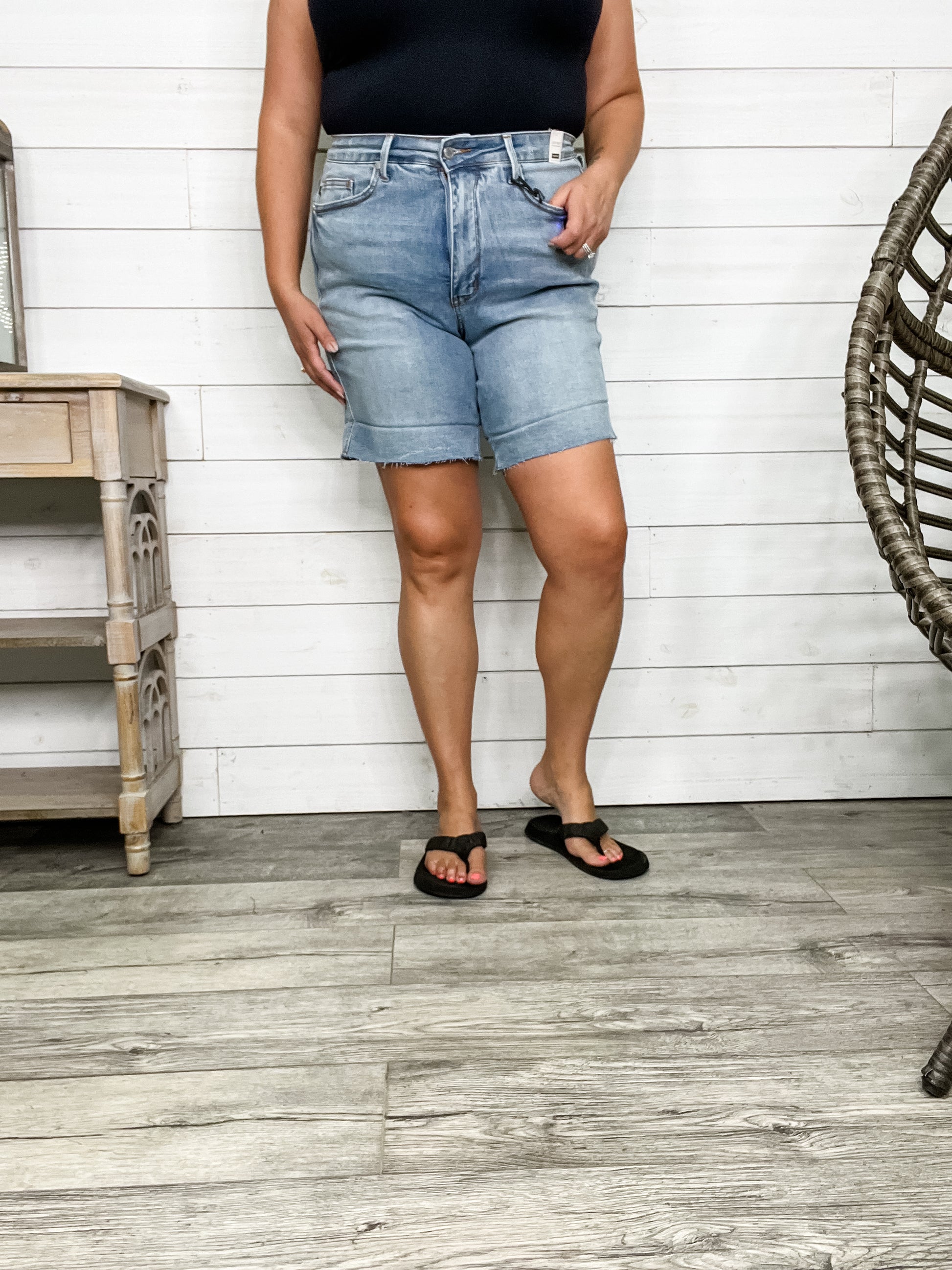 - Style: Mid Thigh Denim Shorts