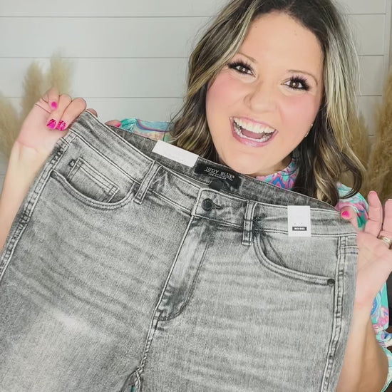 Step up your summer style game with these Judy Blue "Last Night" grey Bermuda shorts. Made with a soft, thick cotton blend and featuring a trendy Bermuda length, these shorts are perfect for all your casual outings. The grey denim adds a touch of edgy coolness to your wardrobe. With the yummiest thick soft cotton that will hide imperfections and smooth and be a great everyday grab and go pair. Ash has worn these to Disney World because the length battles chub rub and wins.