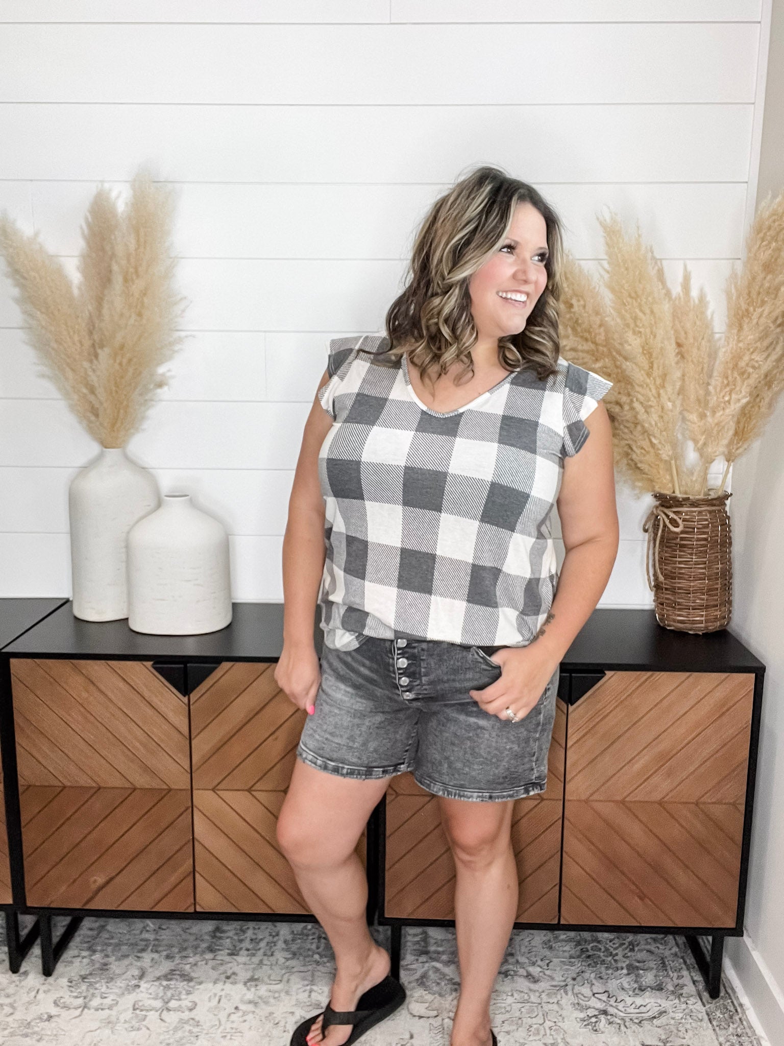 Judy Blue “Did You See That” Grey Buttonfly shorts