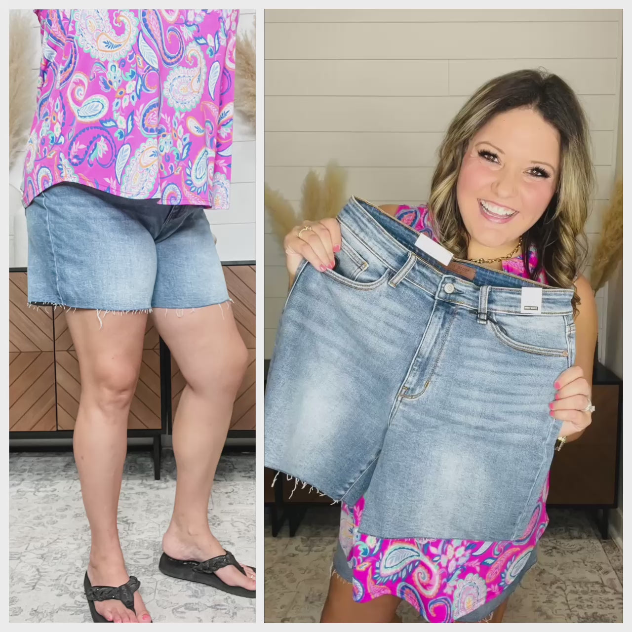 Embrace comfort and style with these Judy Blue "Play Games" Mid Thigh shorts! Featuring a 5-6 inch length with frayed bottom hem, these cutoffs are made from cozy soft cotton with great stretch. Perfect for those whose thighs are best friends! These mid-thigh beauties will quickly become your go-to summer essential.