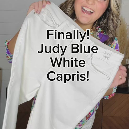 White tummy control Judy Blue true capris with a round shield pocket booty lifting back pocket are the absolute bees knees! Suck in the tummy, pop that booty and dress these bad boys up or down!