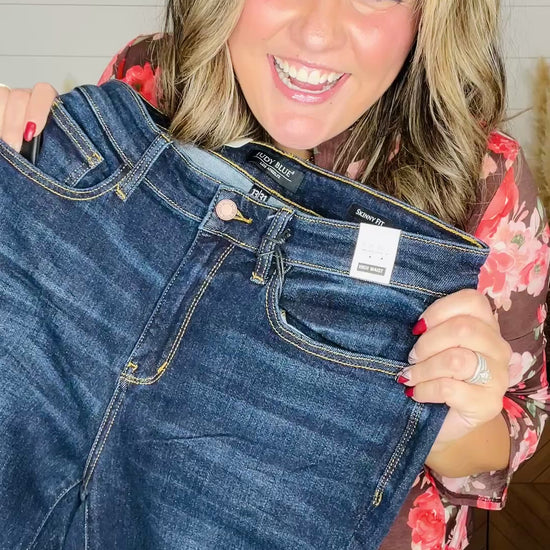 Talk about Giving Me Life! Our Best Selling High Rise, Dark Wash, Non-distressed skinny jeans from Judy Blue are back! They mold to your body, have amazing stretch and are super soft!