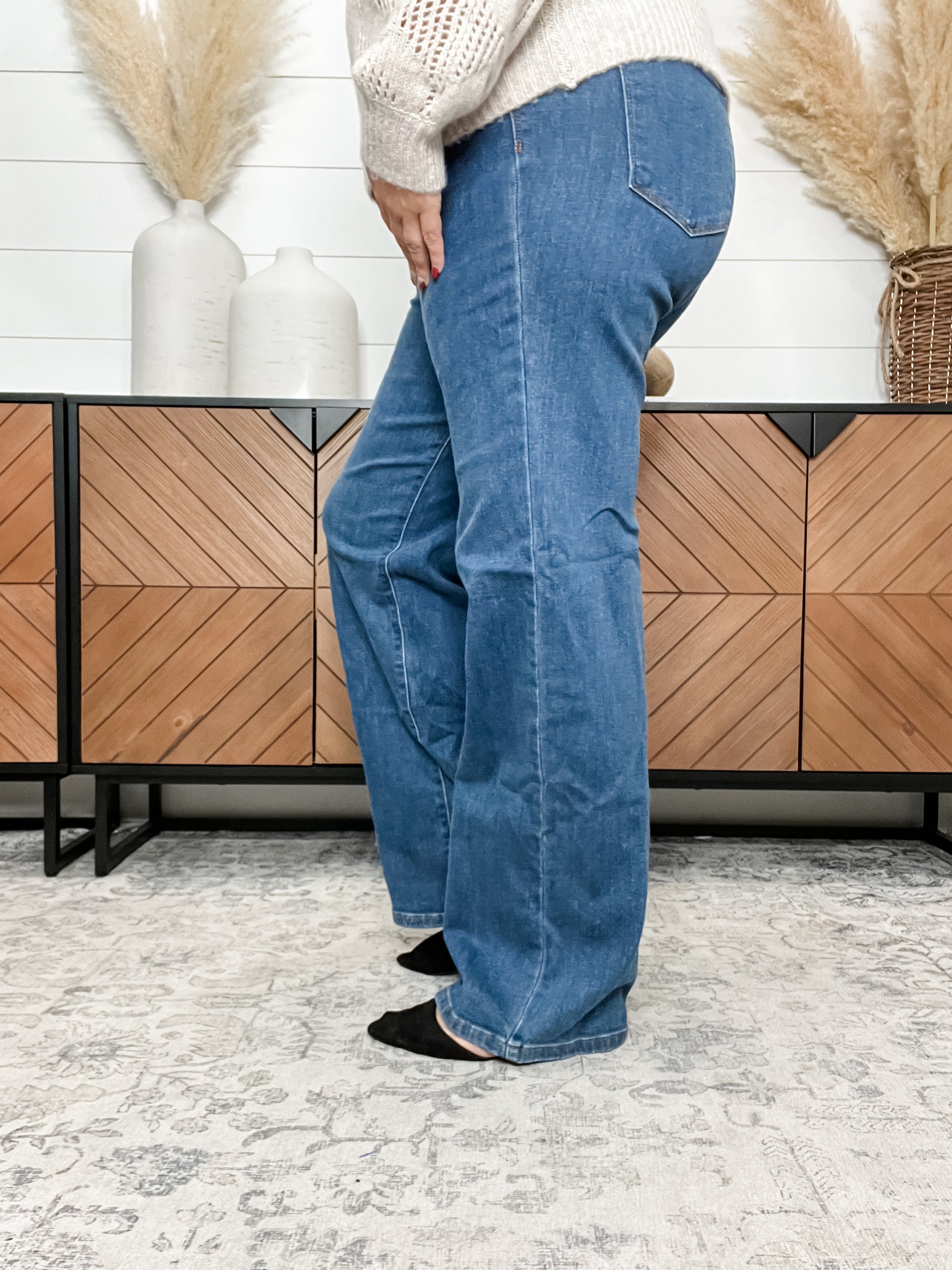 Step into timeless style with the Judy Blue "Funtastic" Wide Leg Jeans. These non-distressed, crisp blue denim jeans offer a relaxed, wide-leg fit that’s perfect for everyday wear. Measuring 32 inches in length, they effortlessly take you from casual days to chic nights. Dress them up or down to flaunt a classic yet playful look that’s as fun as their name suggests!