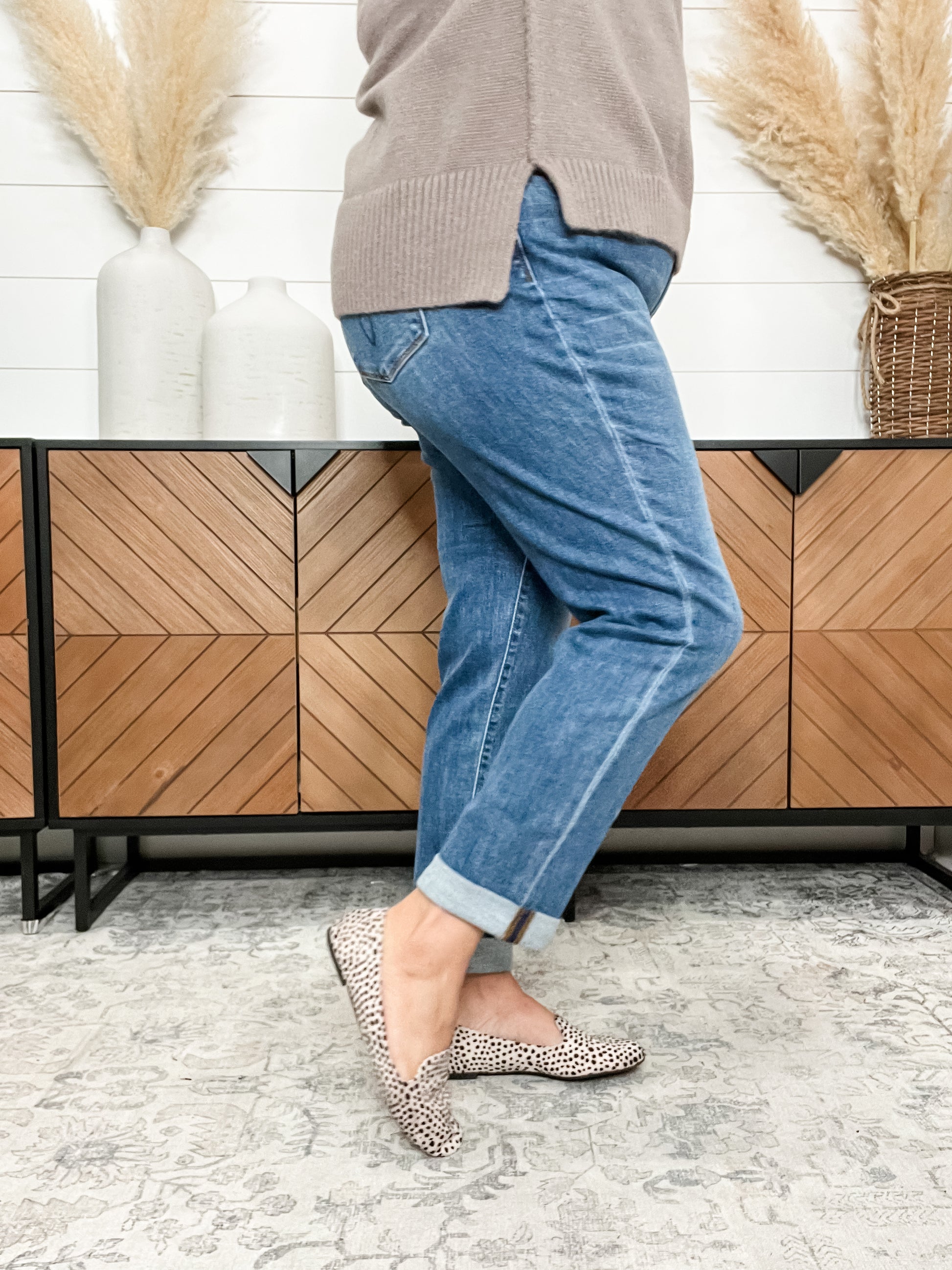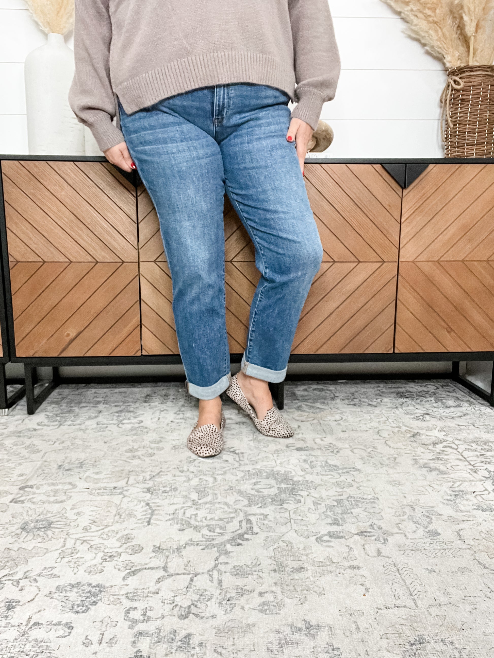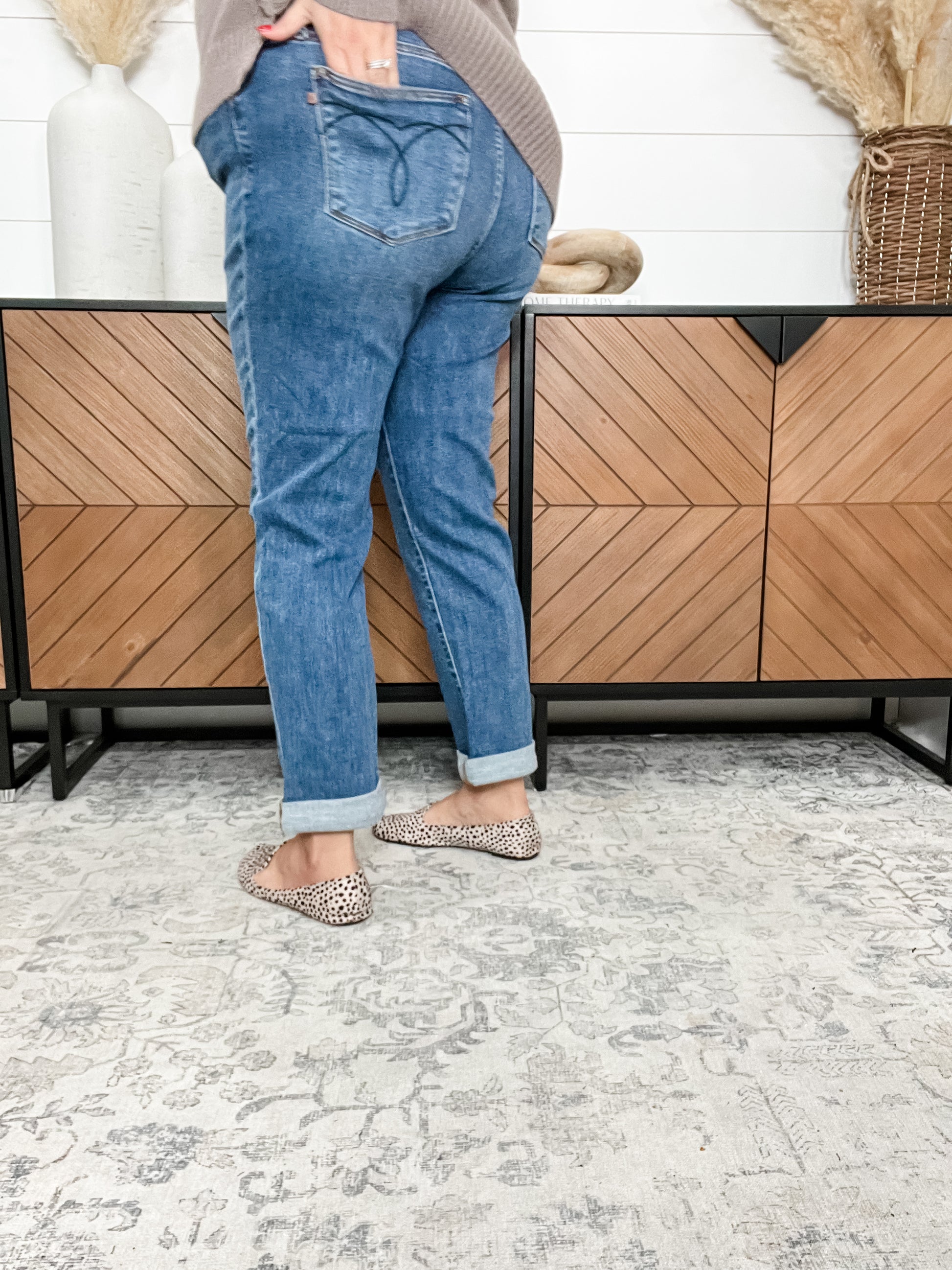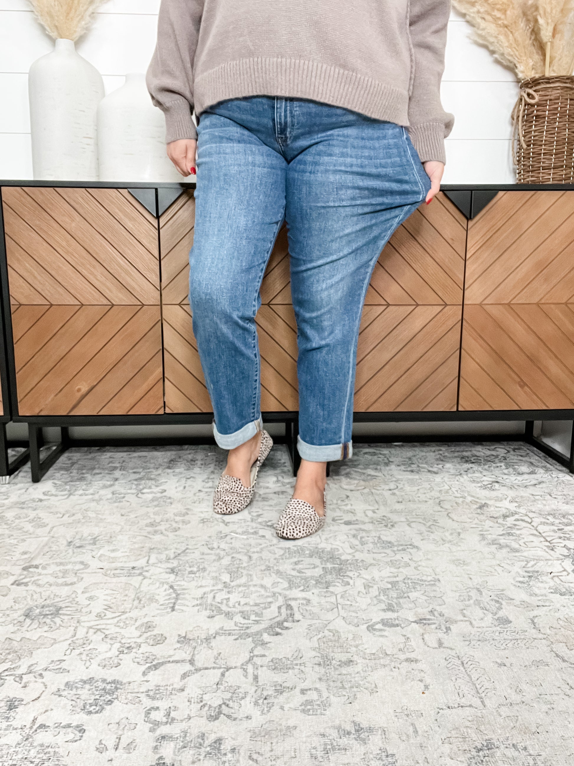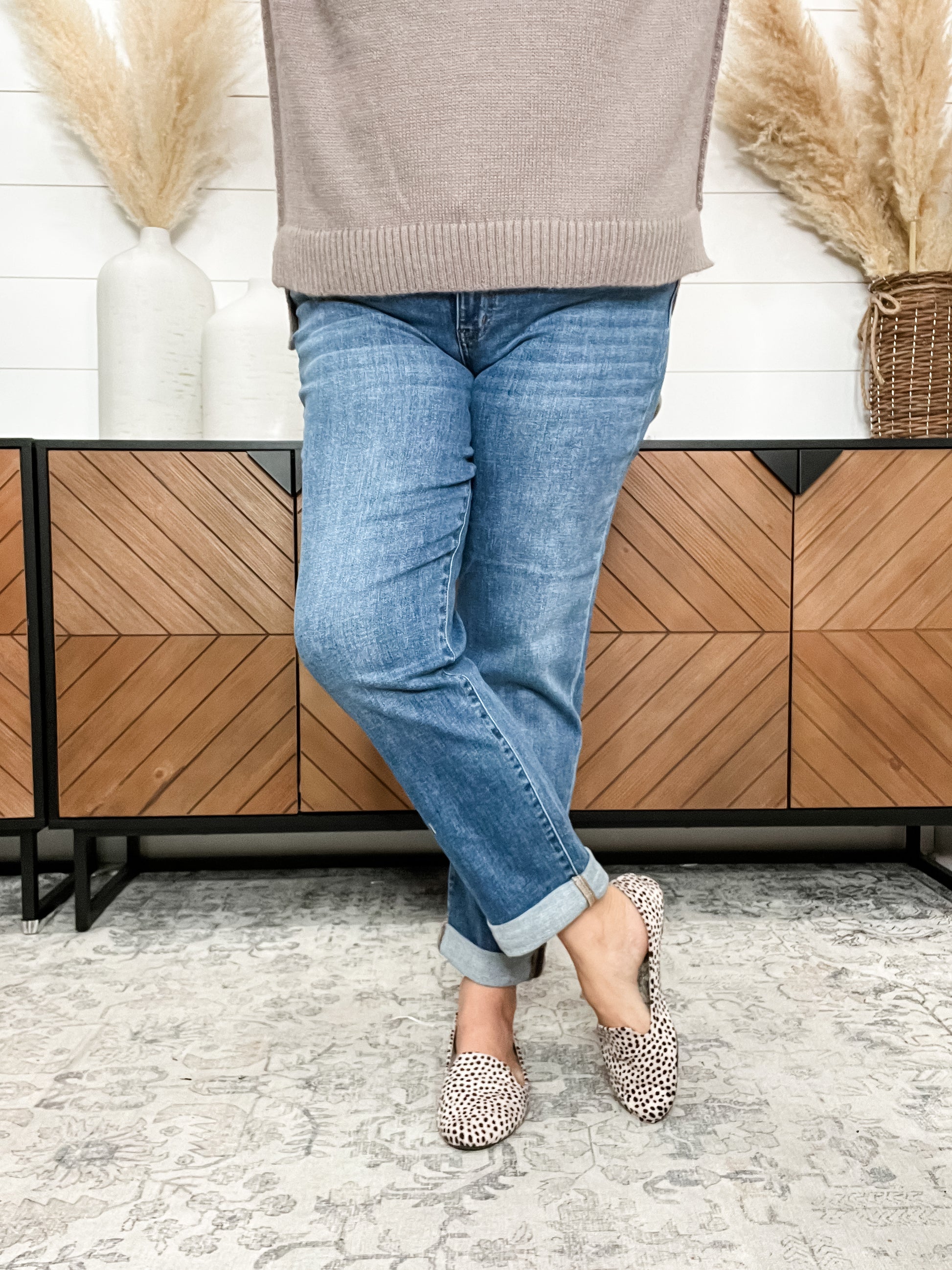 Step into ultimate comfort with the Judy Blue "Shiloh" Cuffed Boyfriend Jeans. These jeans offer incredible softness and stretch for a relaxed, flattering fit. Measuring 31 inches uncuffed, you can double cuff them down to 28 inches or shorter for a versatile look. For the perfect fit, simply choose your usual store size minus one in Judy Blue sizing. Effortlessly cool and cozy, these jeans are your new go-to for casual days with a playful twist.