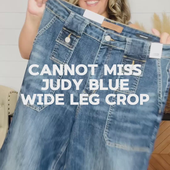 Turn heads in the Judy Blue “Celia” Wide Leg Crops! The dark wash and deep utility pocket detailing make these crops both stylish and functional. With great stretch and the ability to pair with wedges or boots, you'll love wearing these quirky and playful crops from the Judy Blue brand.