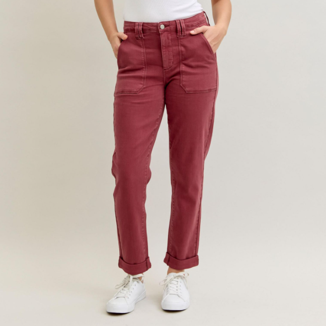 Judy Blue Aurora Burgundy Cuffed Weekender