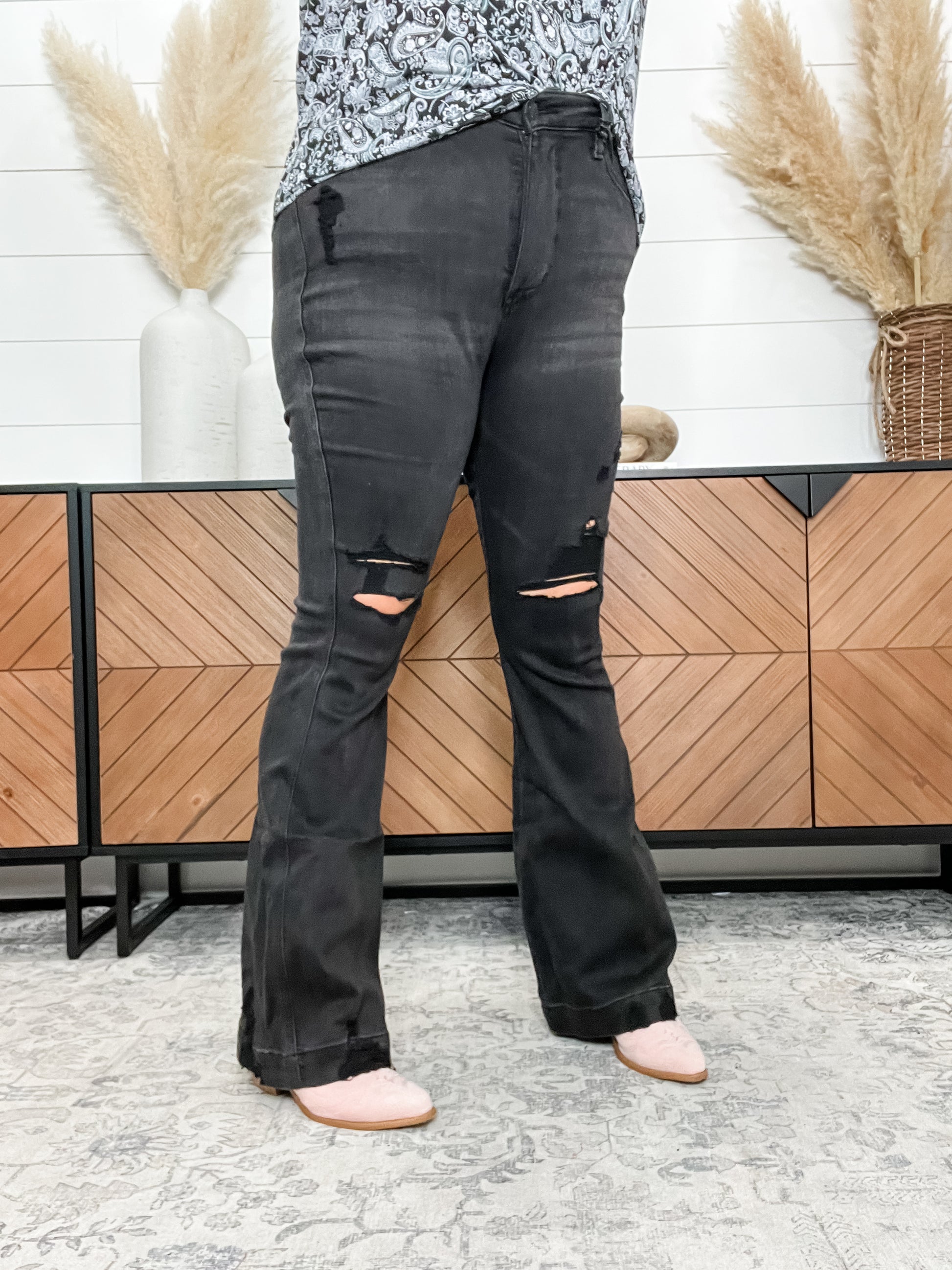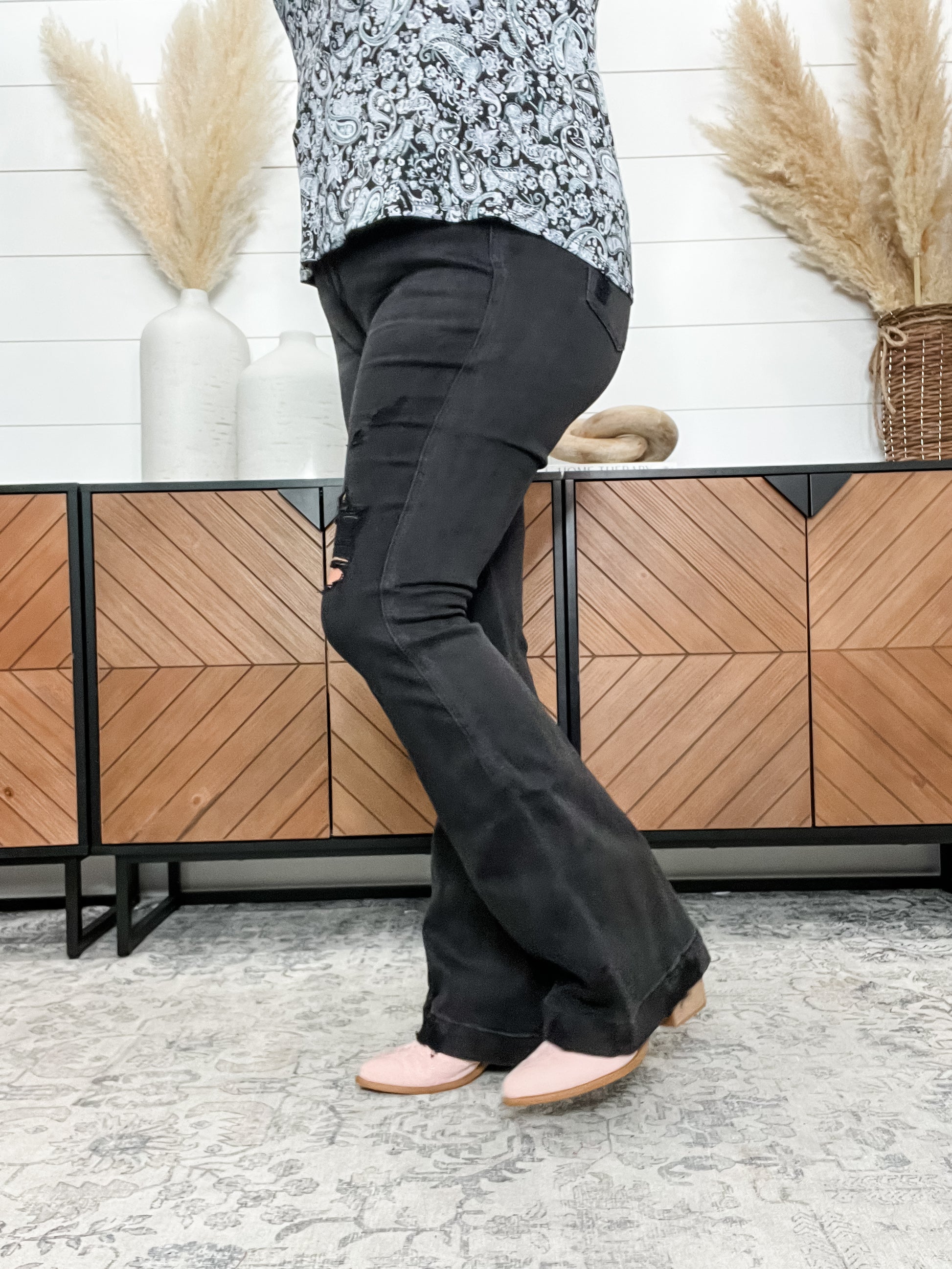 The softest comfiest fabric with insane stretch in the legs has arrived and includes a tummy control panel across the lower front tummy area.  These are 34 inches so make sure to measure from your inside leg crotch to the floor for length.  Ash is a 32 inch inseam to the floor wearing 3 inch wedges in pictures.  She is a 16/17 wearing her normal size 15.  If you want to cut these down 2+ inches above the bottom hem you can for length also!