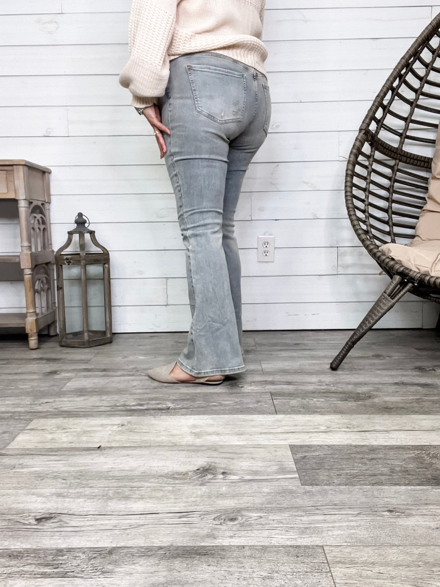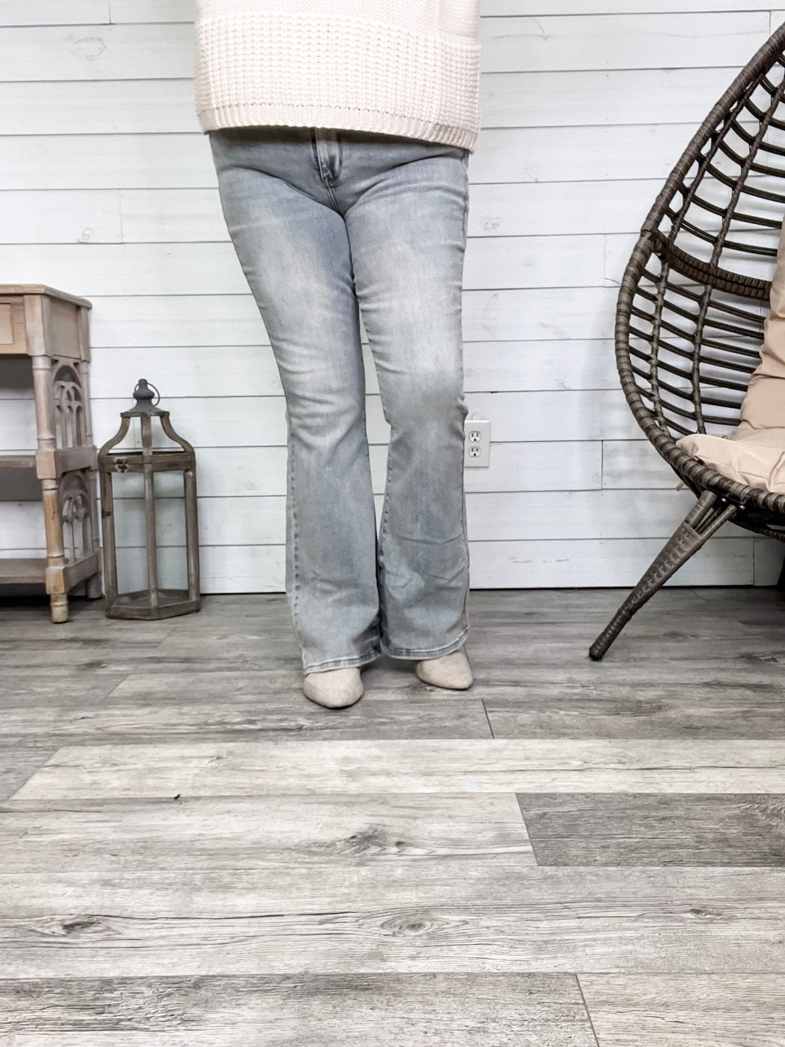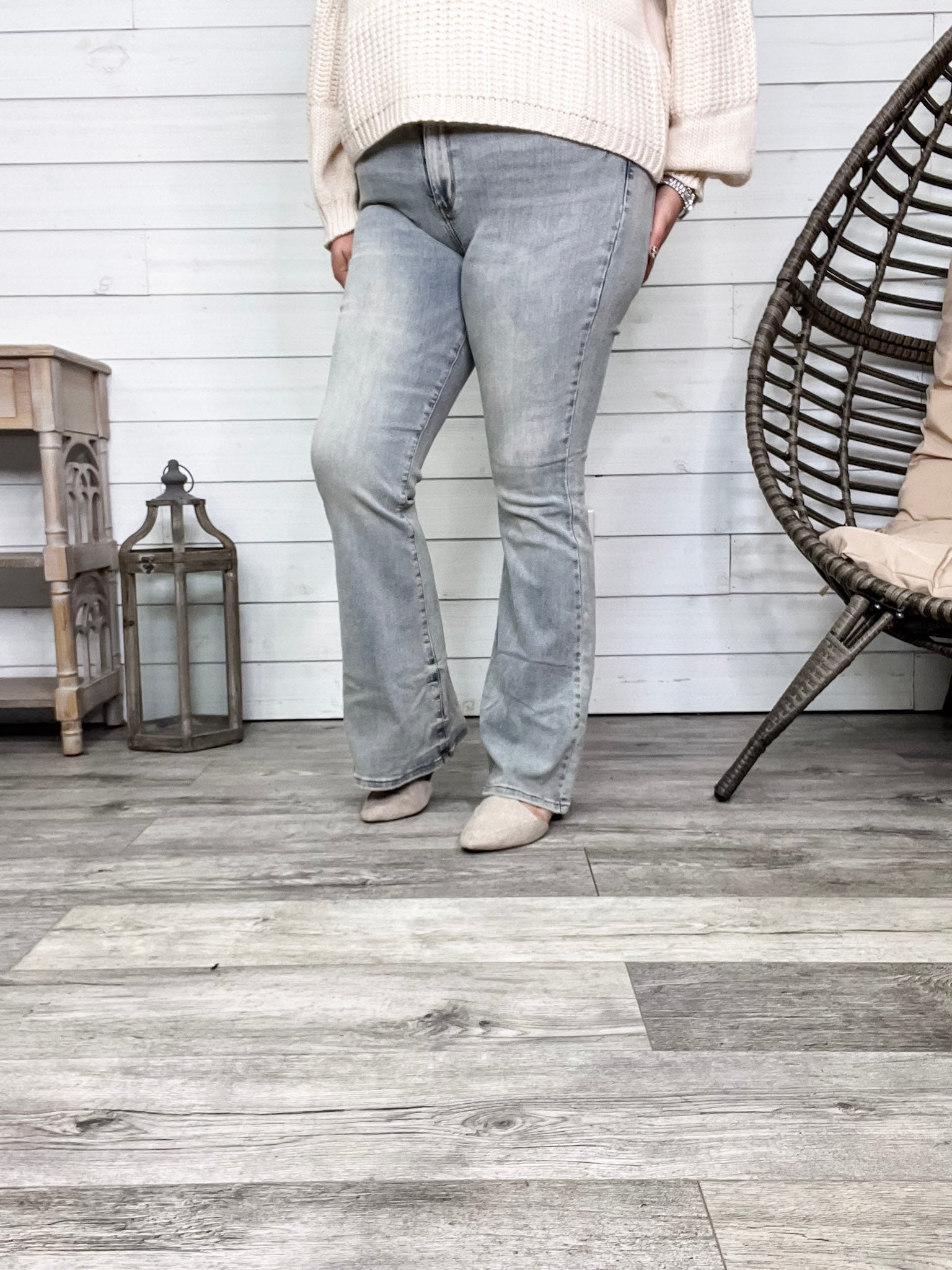 These Judy Blue "Bye John" Pin Tack Flares are your new go-to for effortless style and comfort. Made with a high cotton blend and just the right amount of stretch, they shape perfectly to your curves over time. Whether you’re dressing up or keeping it casual, these flares fit true to size—though you might even try a size down for a snugger fit. Ash rocks a size 15 while usually wearing 16/17, so get ready to flaunt your best look with these playful, flattering jeans!