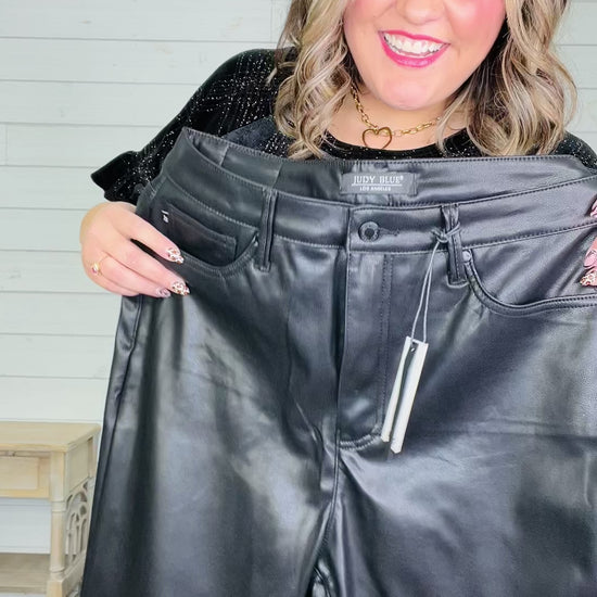 Judy Blue "Foxy" Tummy Control Black Vegan Leather Straight Leg Jeans