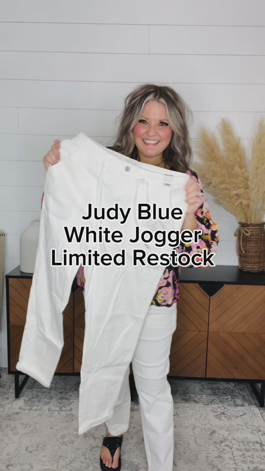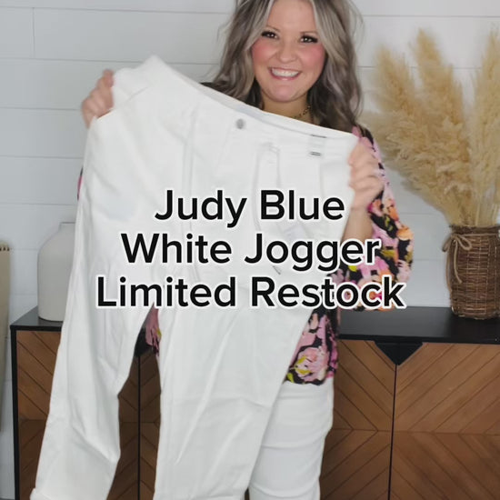 OMG!  If you LOVE a wide thigh super stretchy jogger from Judy blue then you will LOVE these!  Featuring a creamy white color and mega stretch, even size minus one will be an oversized fit. Or you can size down TWO from your even dept store size for a comfy true to size fit.