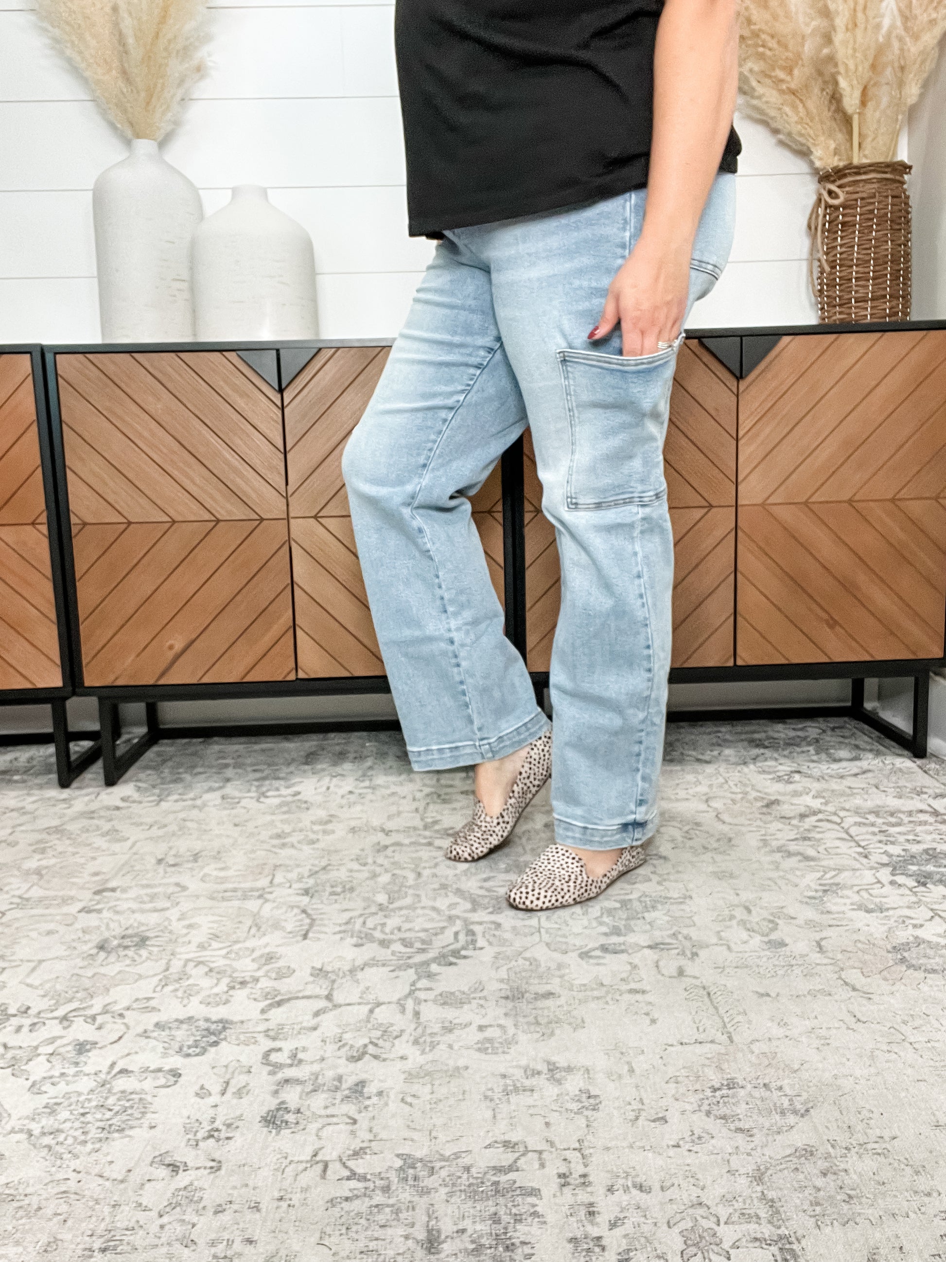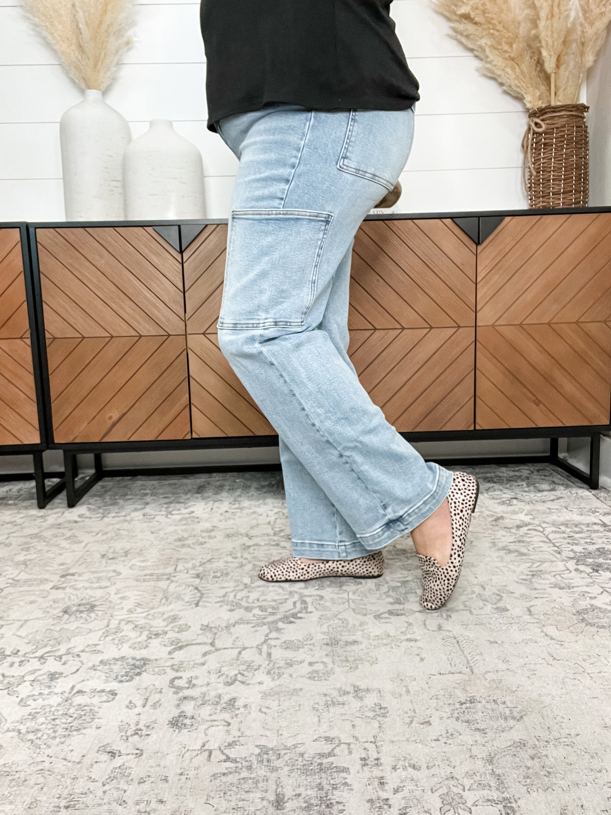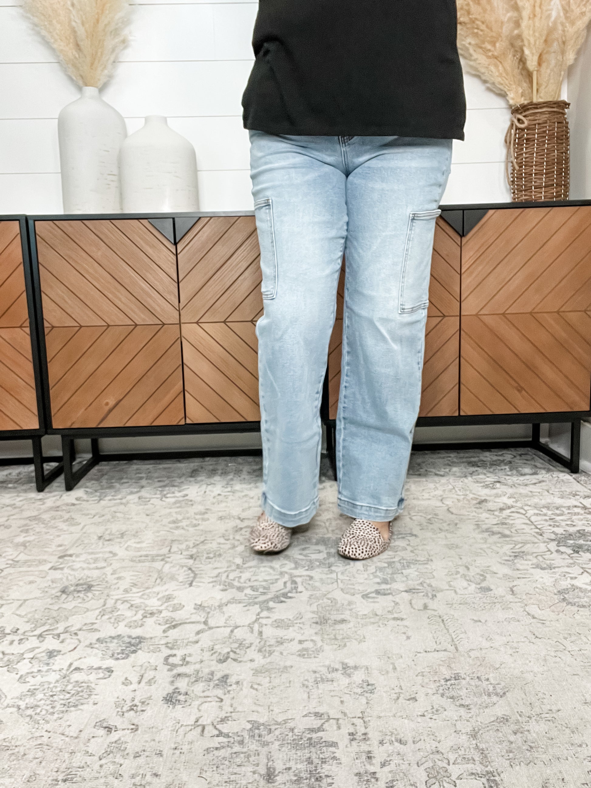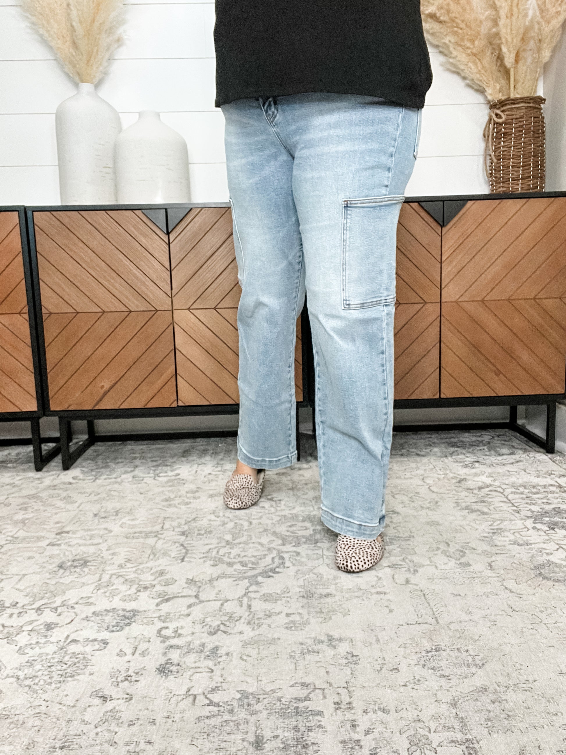Get ready to turn heads in the Judy Blue "Slight of Hand" Cargo Wide Leg jeans! With a playful button pocket and a light wash that vibes with every outfit, these stretchy cargo jeans bring ultimate comfort and unmatched style. Perfect for keeping your essentials handy while feeling fabulous all day long!