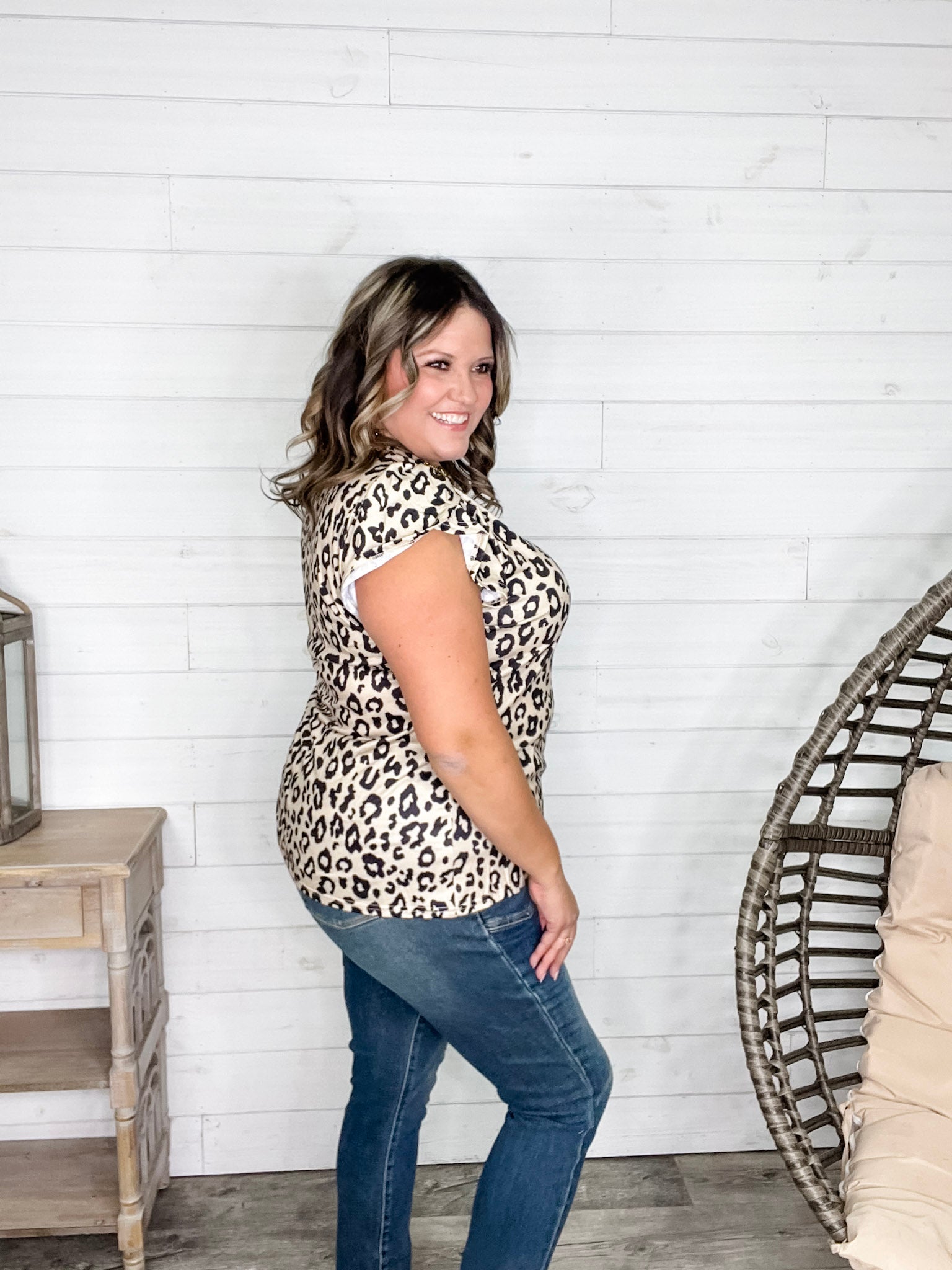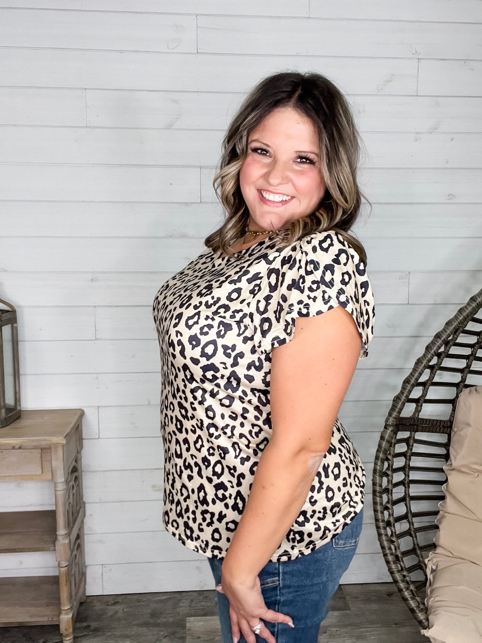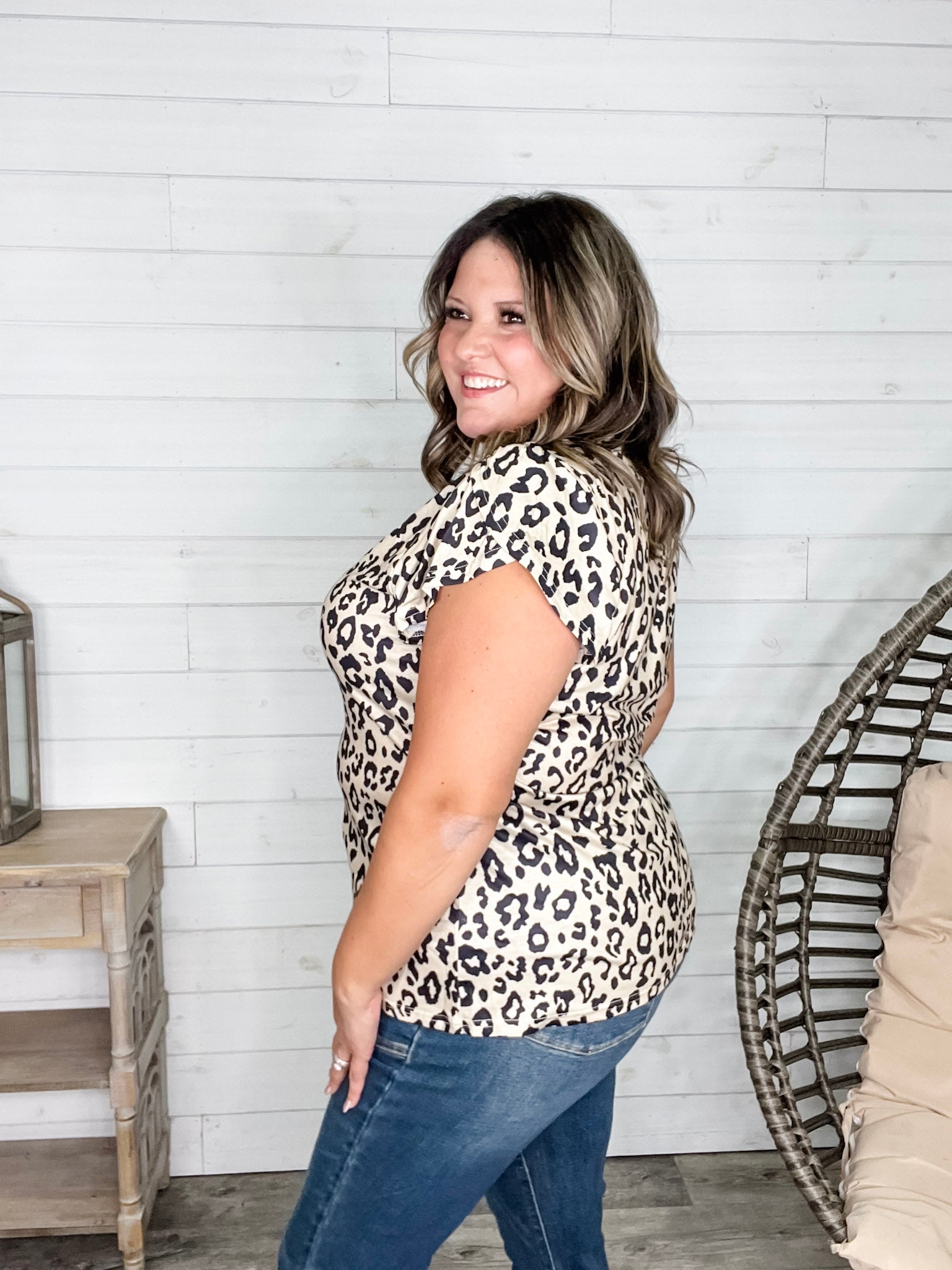Our "Just The Beginning Chapter Two" Tulip Sleeve V Neck in Animal Print now comes with 3 extra inches added to the bust for a perfect fit! Crafted from soft, stretchy fabric, this tee feels amazing on and flatters your shape. Designed for comfort and style, it’s perfect for those who want a little extra room without sacrificing flair. Model Amazing Ash, a size 16, rocks the XL with confidence—get ready to turn heads and feel fabulous!