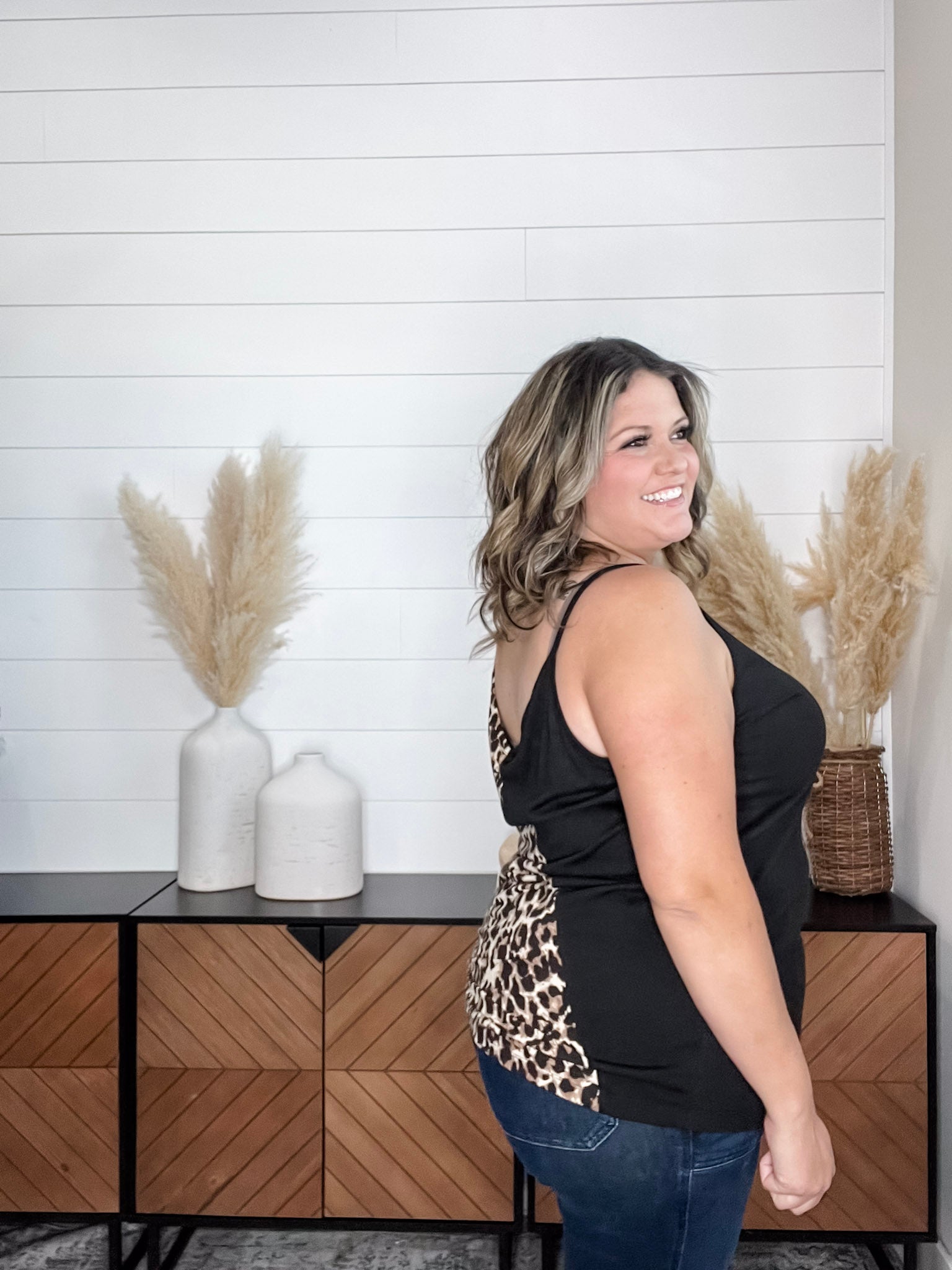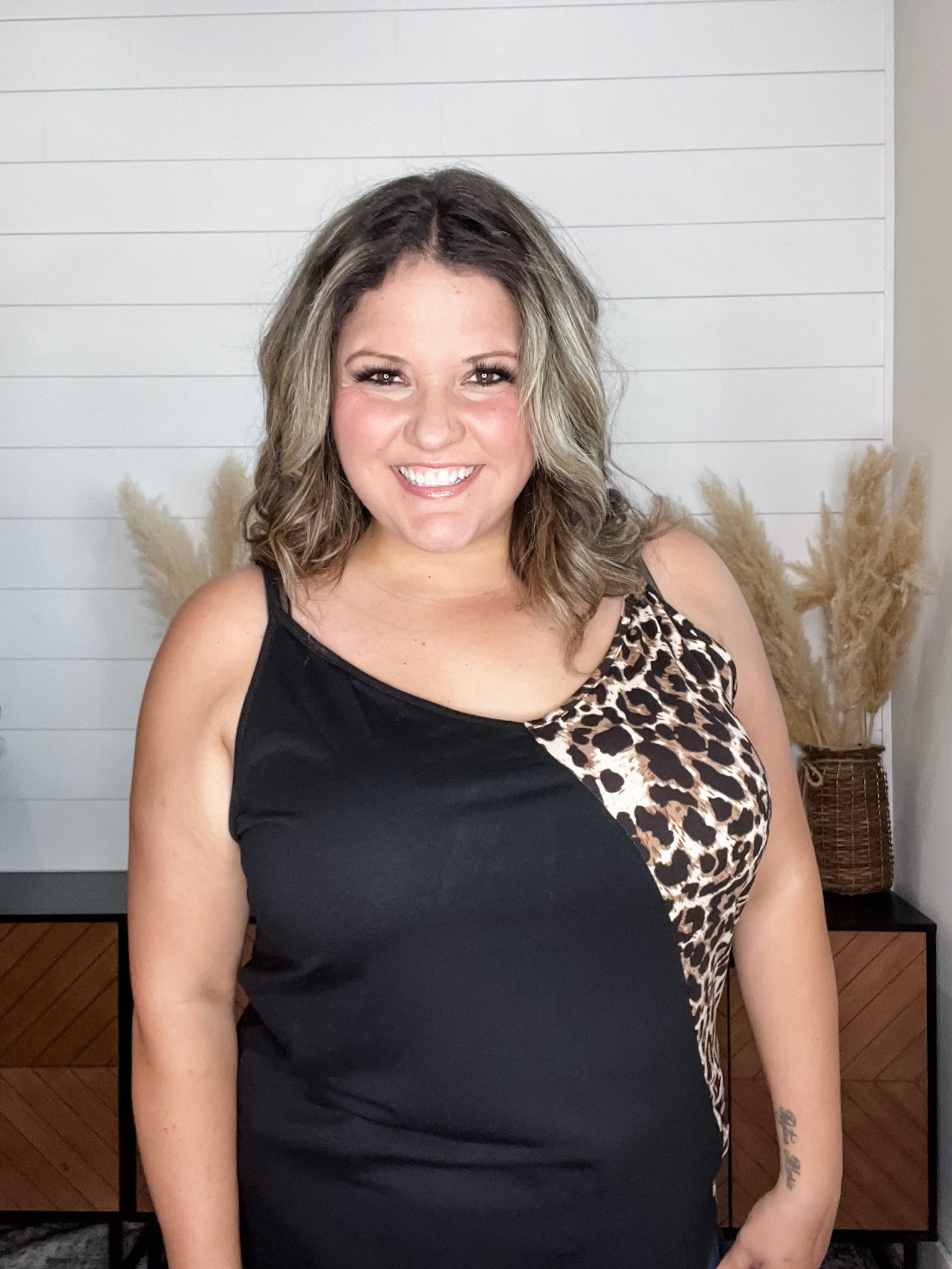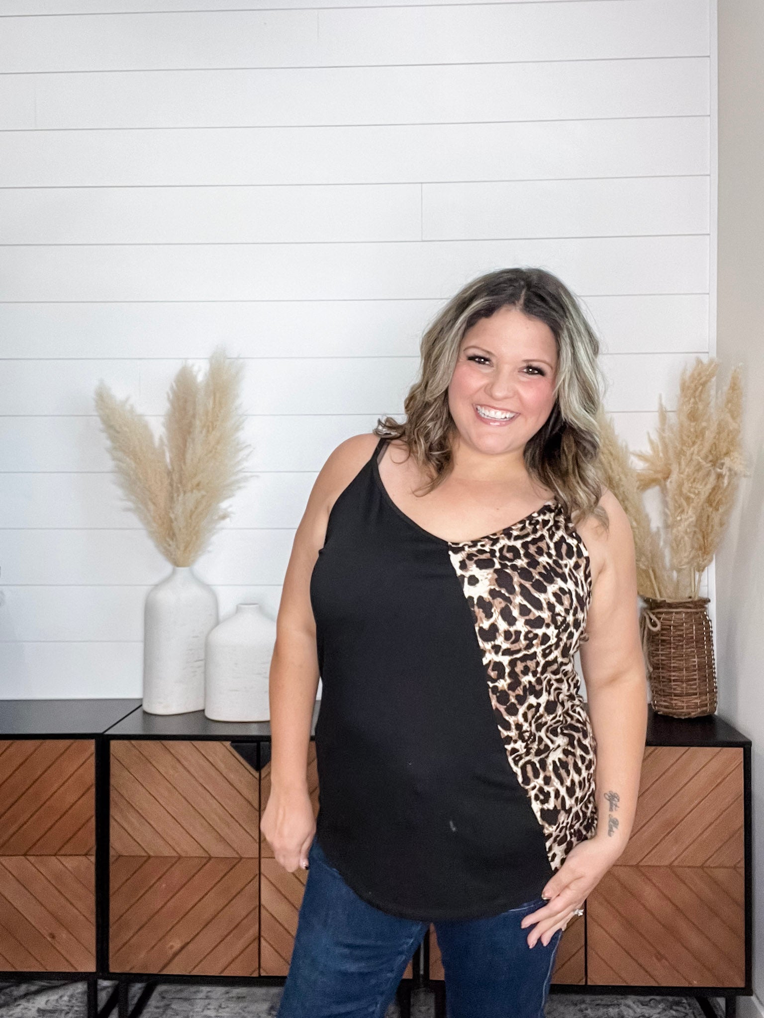 Expertly crafted with a buttery soft material, the "Kylin" Colorblock Spaghetti Strap Tank Tops provide comfort and style. Featuring a trendy animal print design, this top is perfect for any occasion. Size down for a flattering fit.