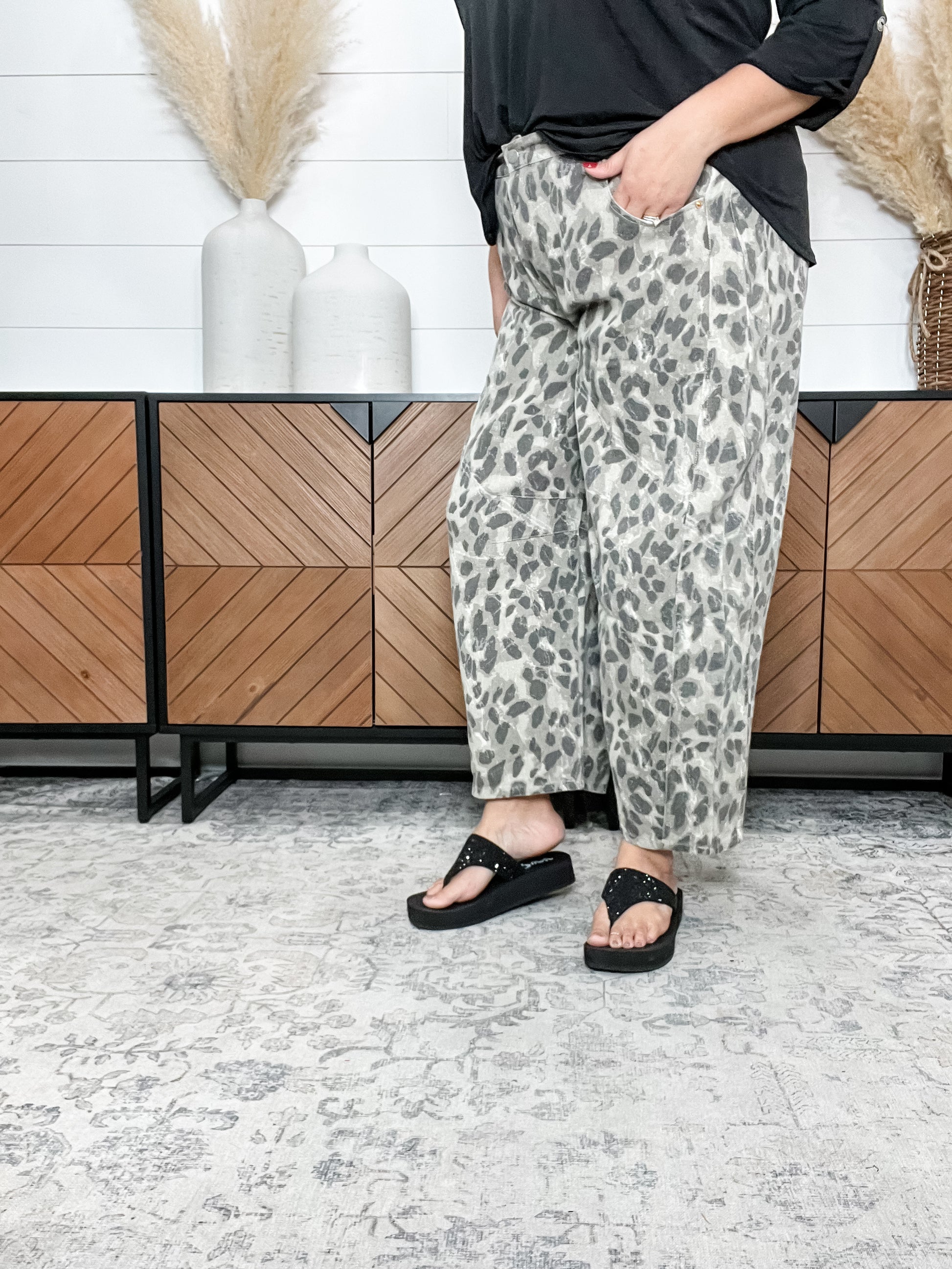 Step out in style with these Leopard Print Wide Leg Denim pants crafted from 100% cotton for ultimate comfort. Their bold print and relaxed fit make them perfect for turning heads while staying cozy all day long. Embrace your wild side with a playful twist on classic denim!