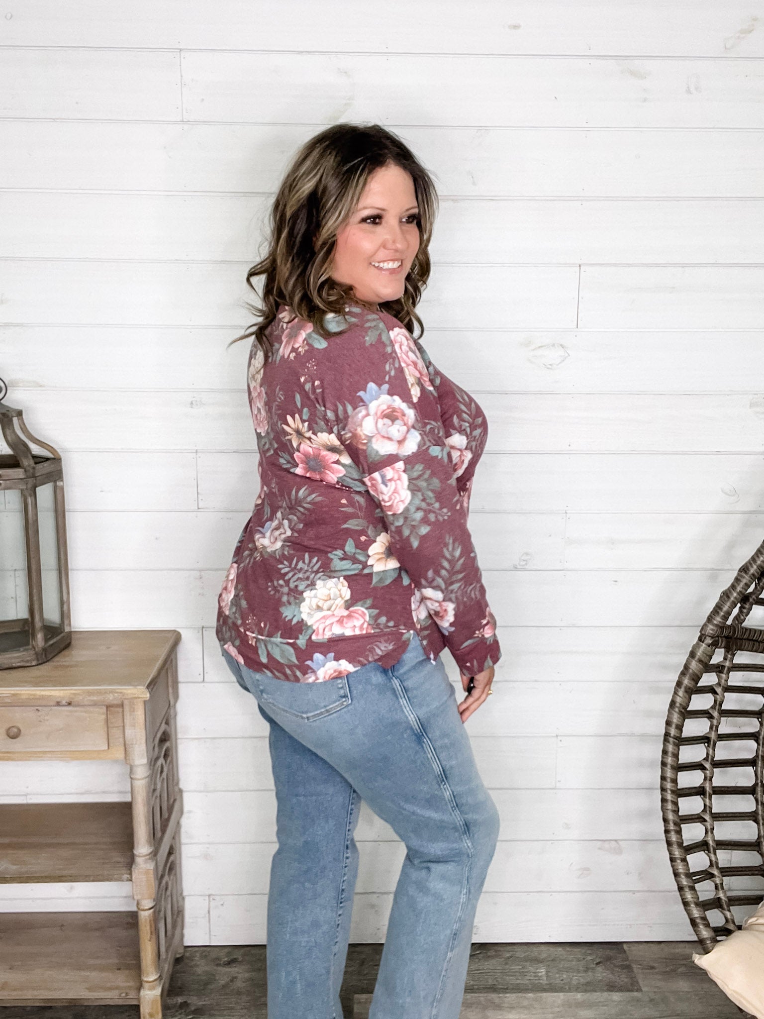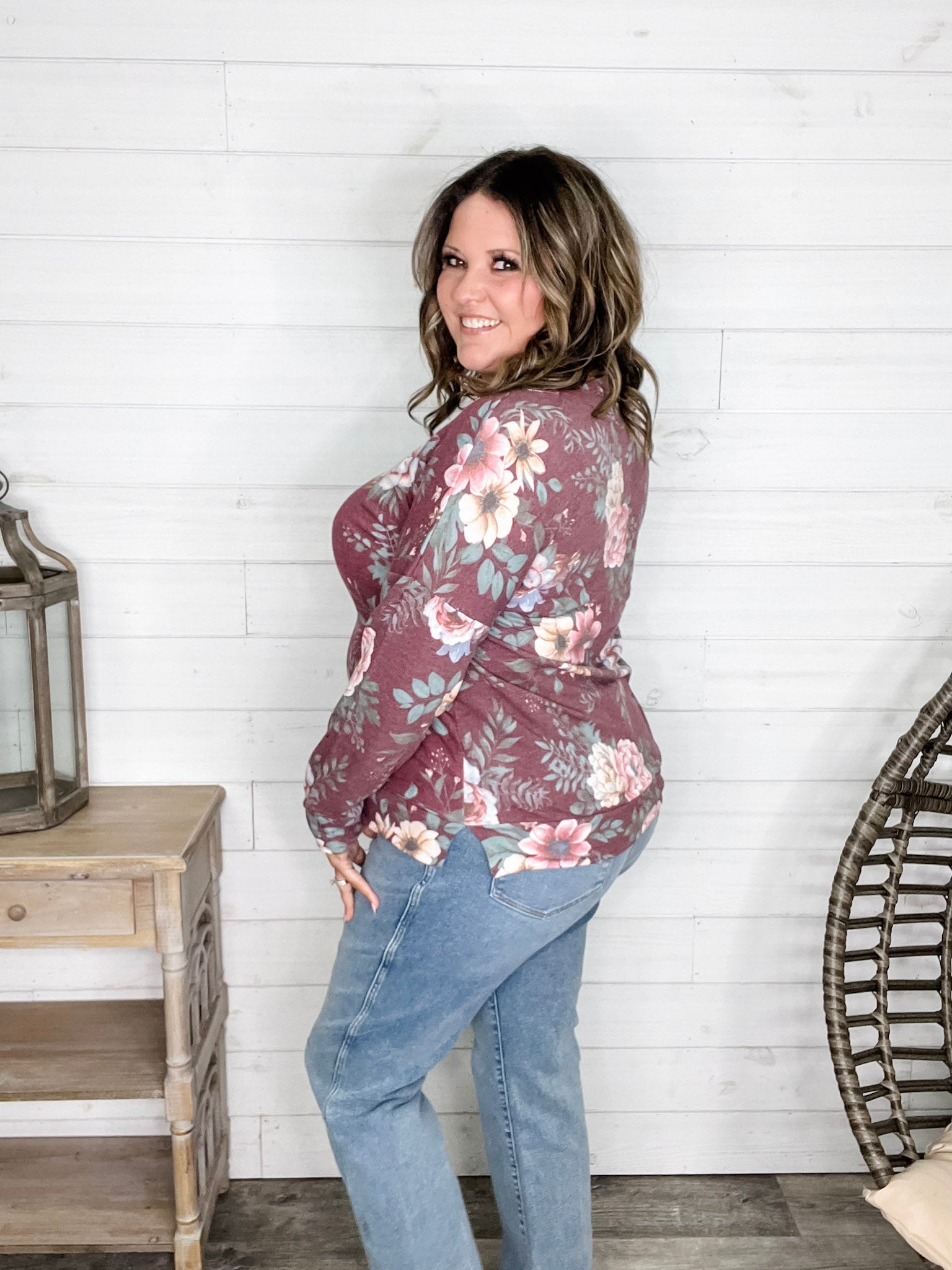 Cozy up in the "Lost Cause" Floral Long Sleeve Weekender, crafted from ultra-soft terry material that feels like a gentle hug. Designed true to size for length, it’s perfect for lounging or casual outings with a playful floral twist that brightens your weekend vibes.