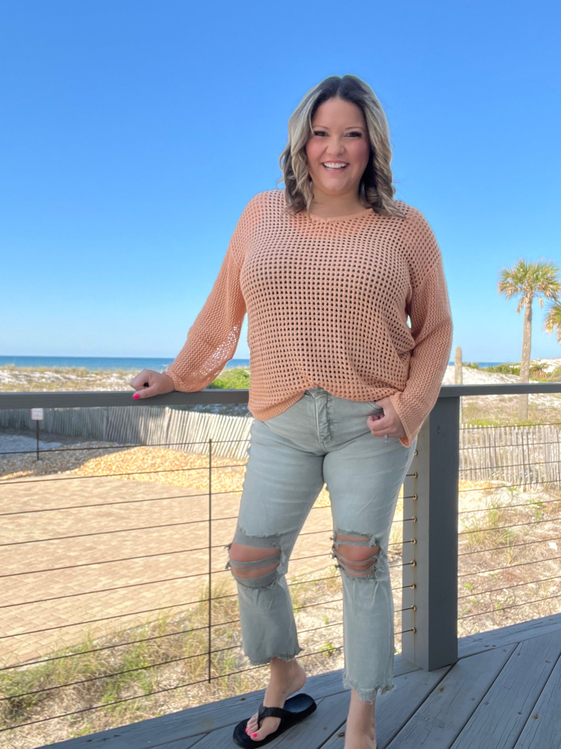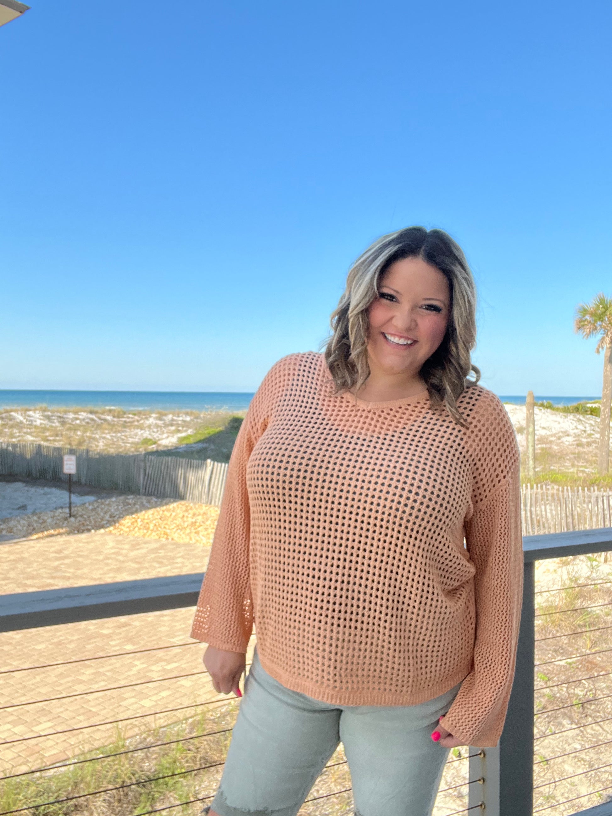 "Maurice" Wide Weft Long Sleeve V Neck (Light Brick)