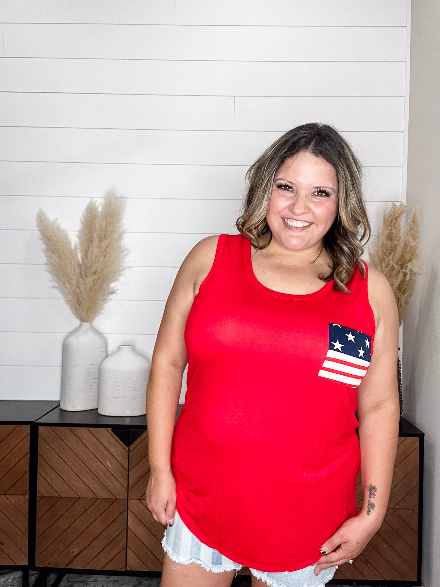 "Ole Glory" Flag Pocket Detail Tank (Red)