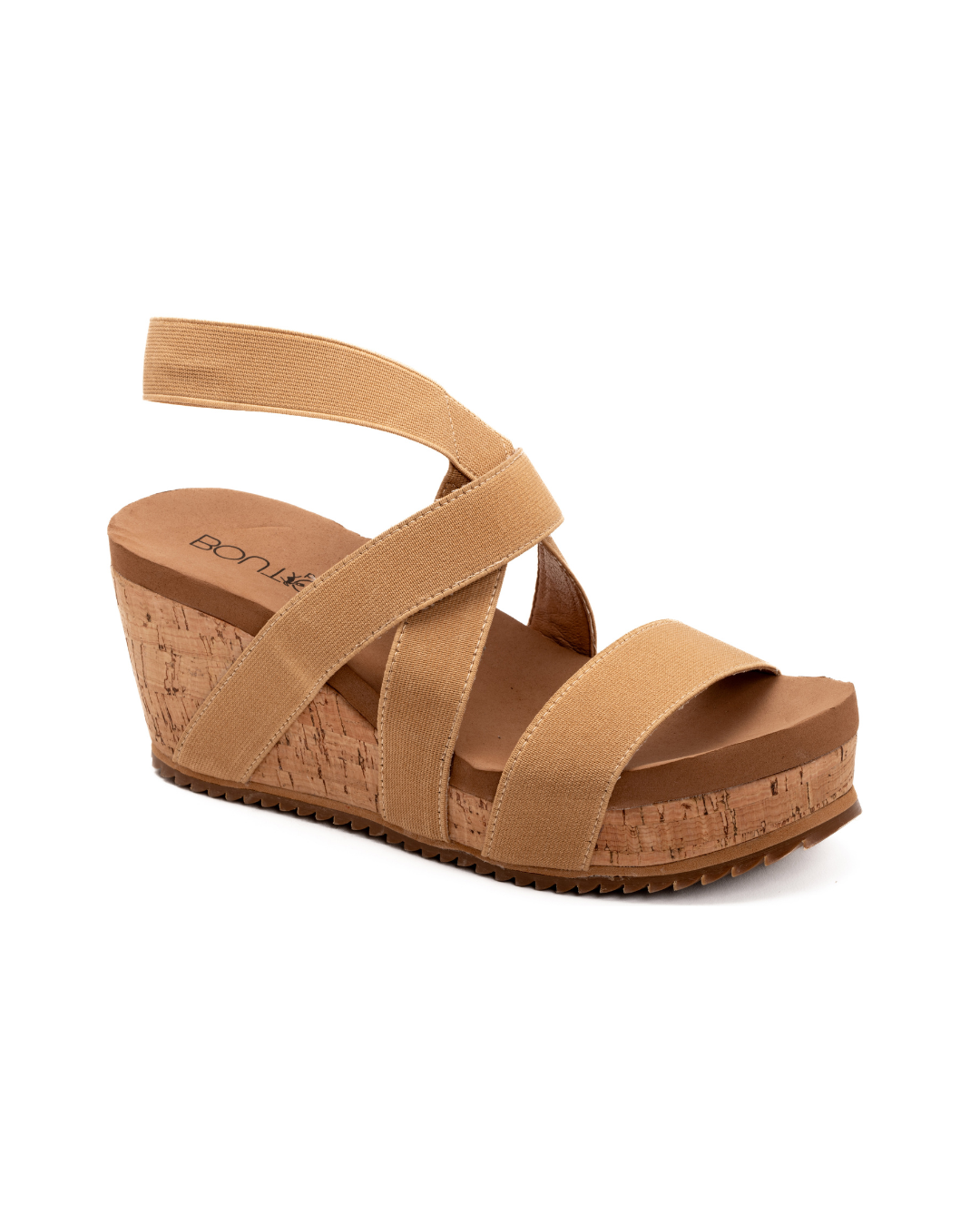 Corkys "Quirky" Elastic Strap Cork Wedge Sandal (Camel)