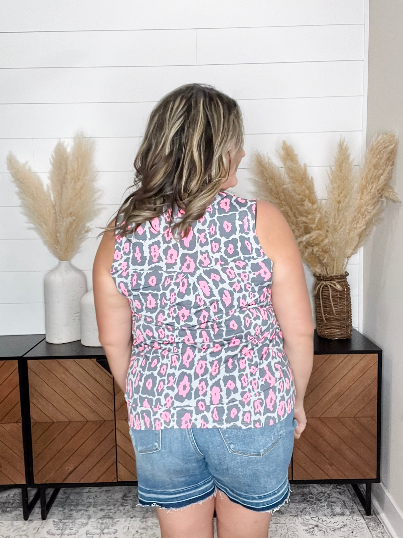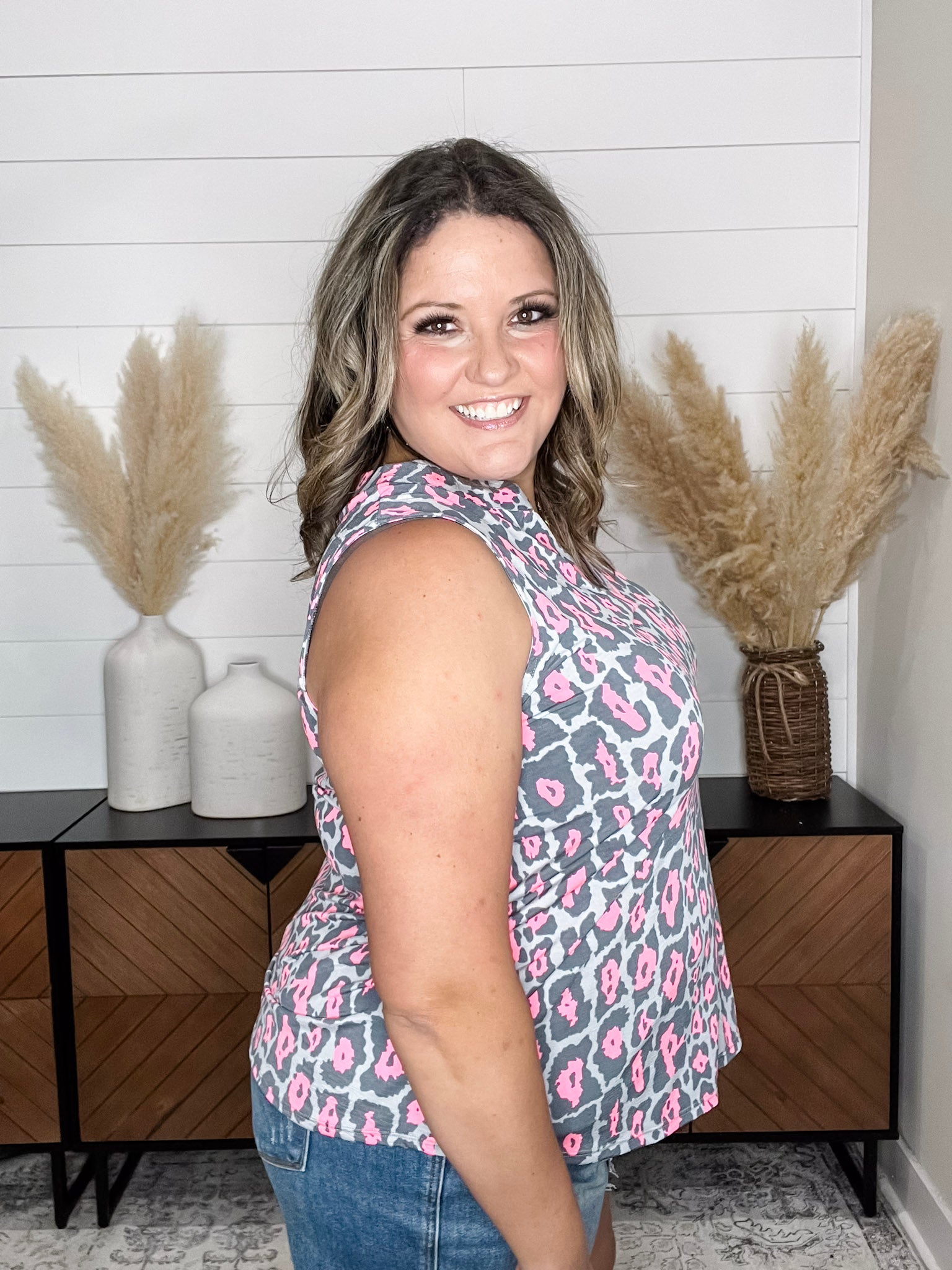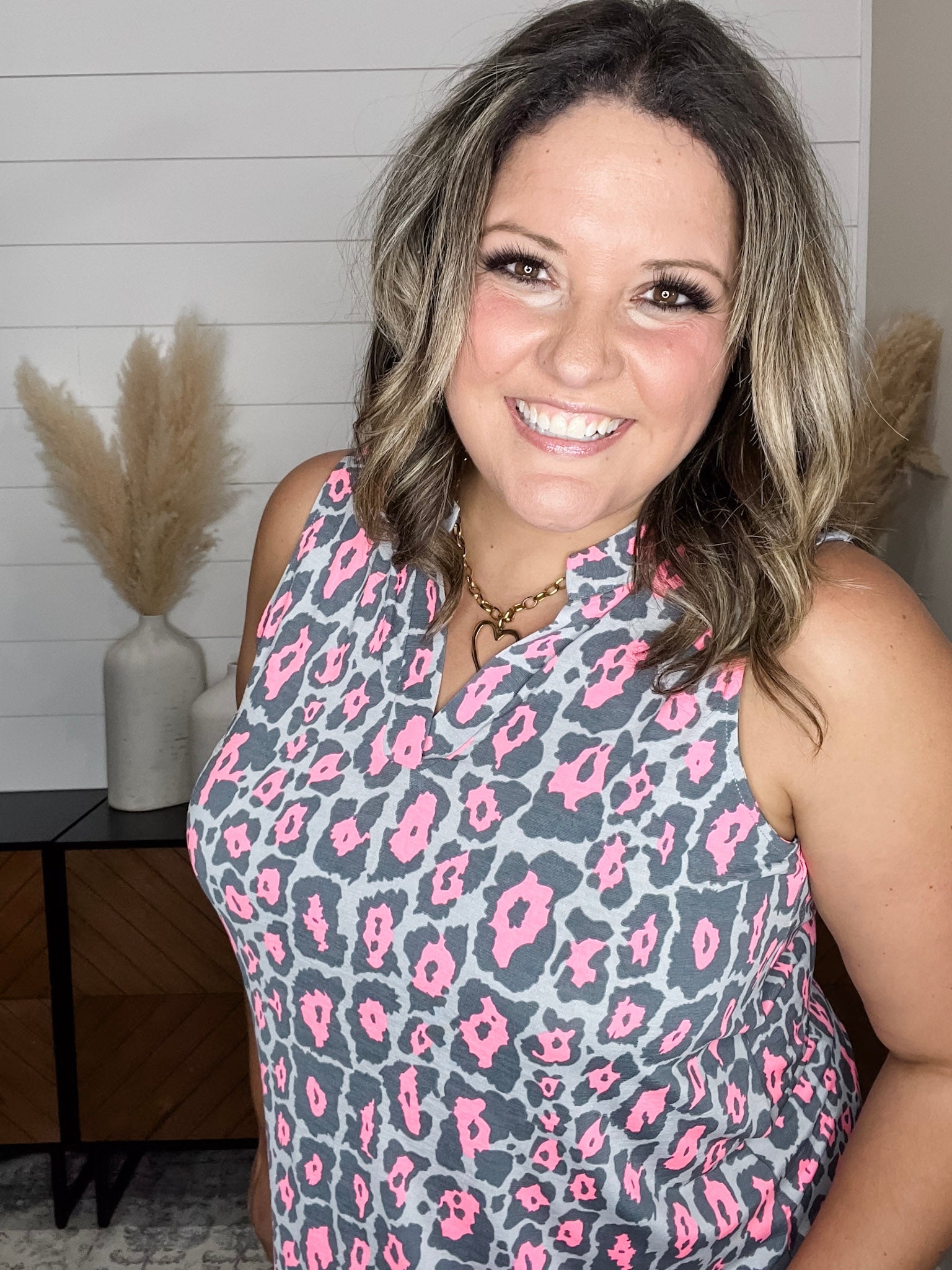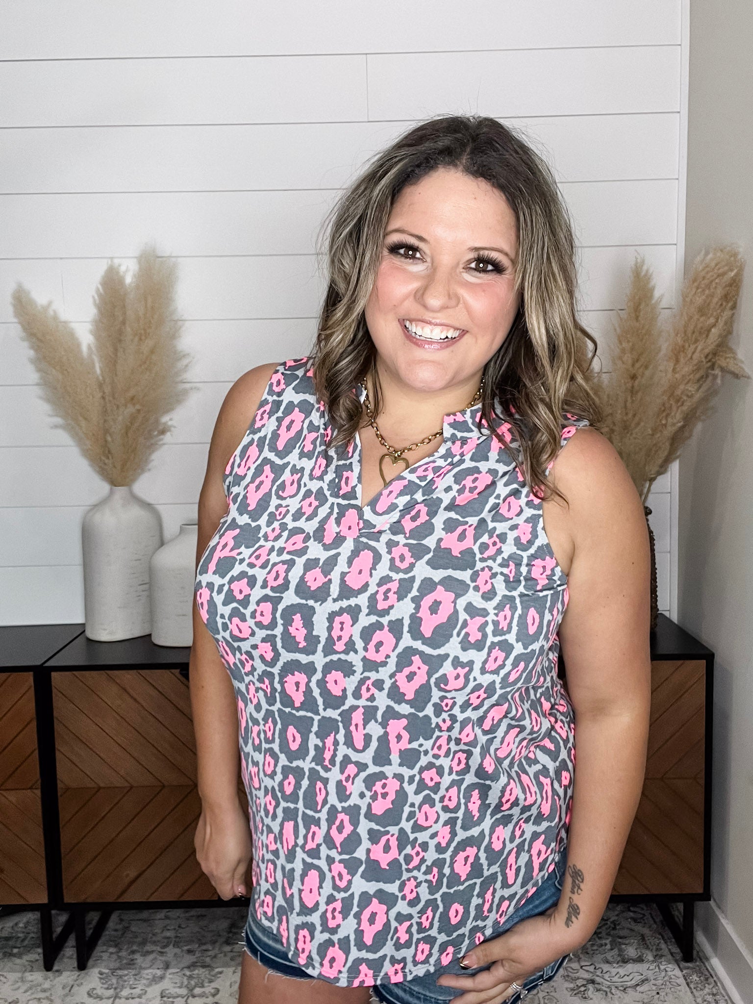 The "Ramsey" Sleeveless Lizzy features a sophisticated animal print on slinky, stretchy fabric that remains wrinkle-free throughout wear. This versatile piece offers a flattering, non-clingy drape that maintains its flow even when seated. Consider sizing down one size if you have a smaller bust or midsection. Expertly designed for comfort and style in equal measure.