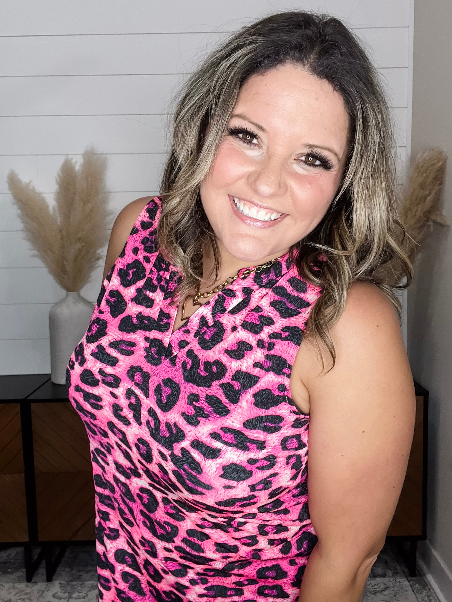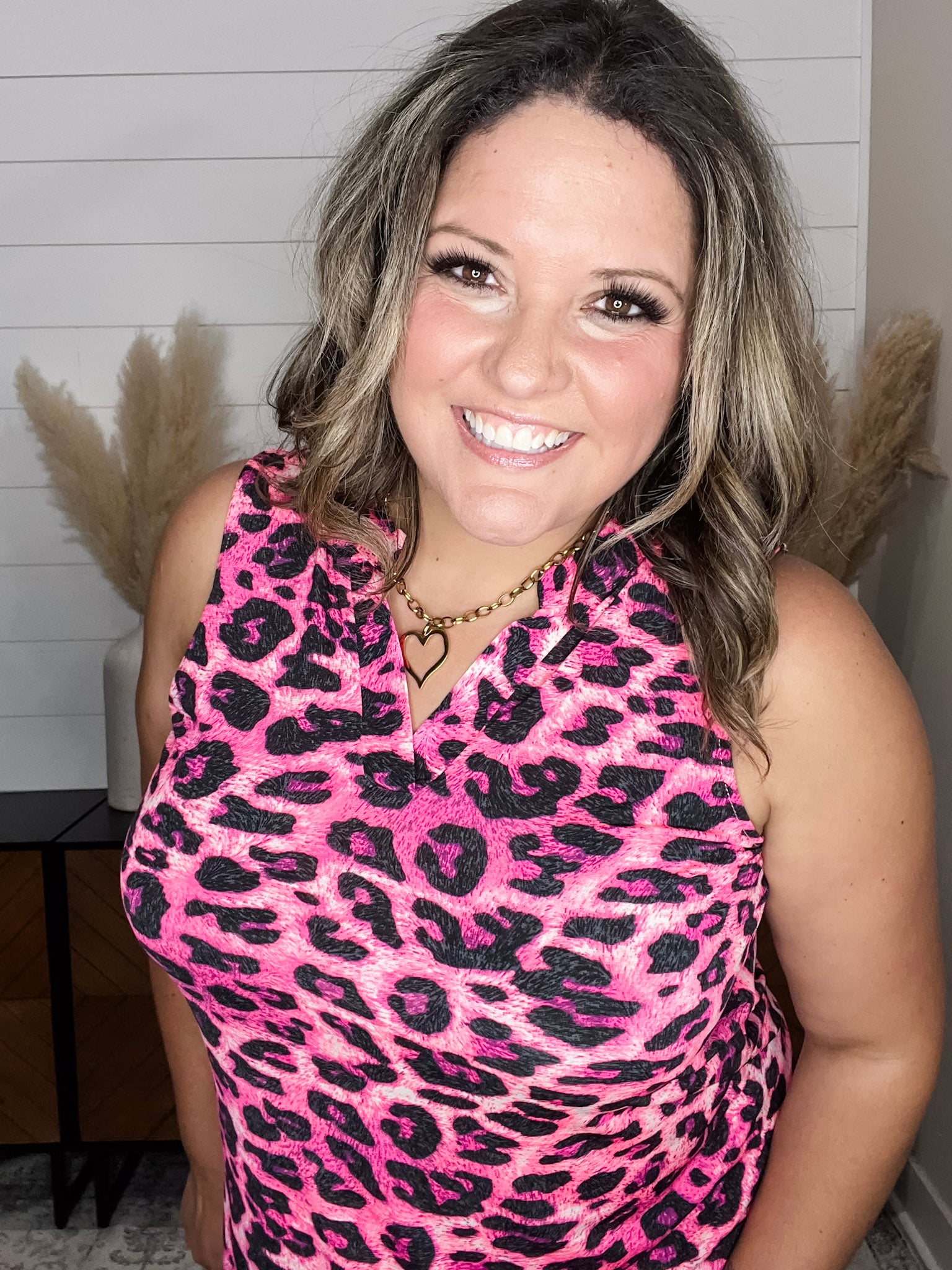 Elevate your wardrobe with our "Ranger" Sleeveless Lizzy featuring an eye-catching animal print on slinky, stretchy fabric. This versatile piece offers exceptional comfort and movement while maintaining its shape throughout the day. Designed to fit true to size, it provides a flattering silhouette for all body types.