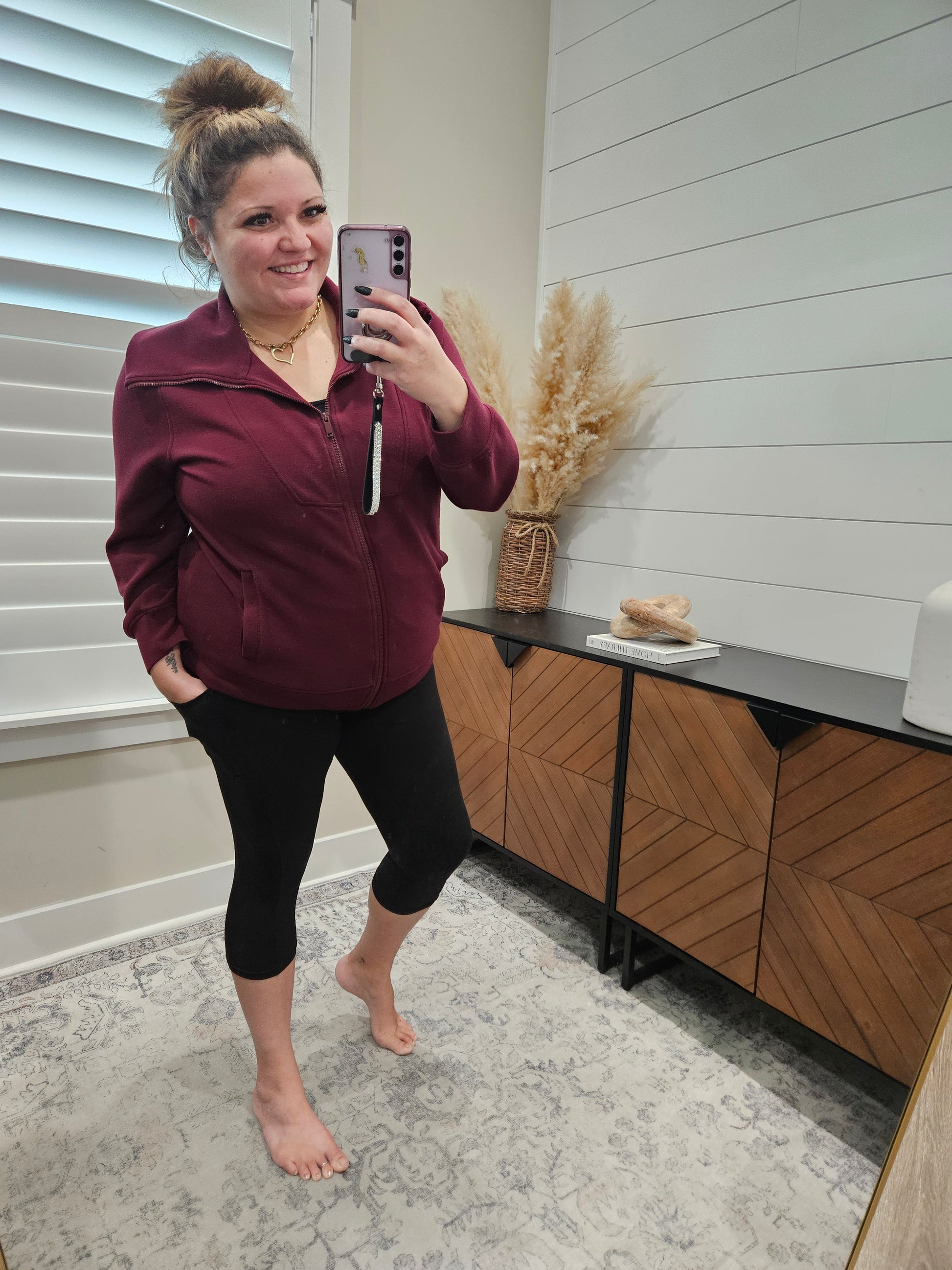 Feel the comfort with this Rae Mode athleisure zip up jacket. Perfect for brisk walks and cold days at the gym.