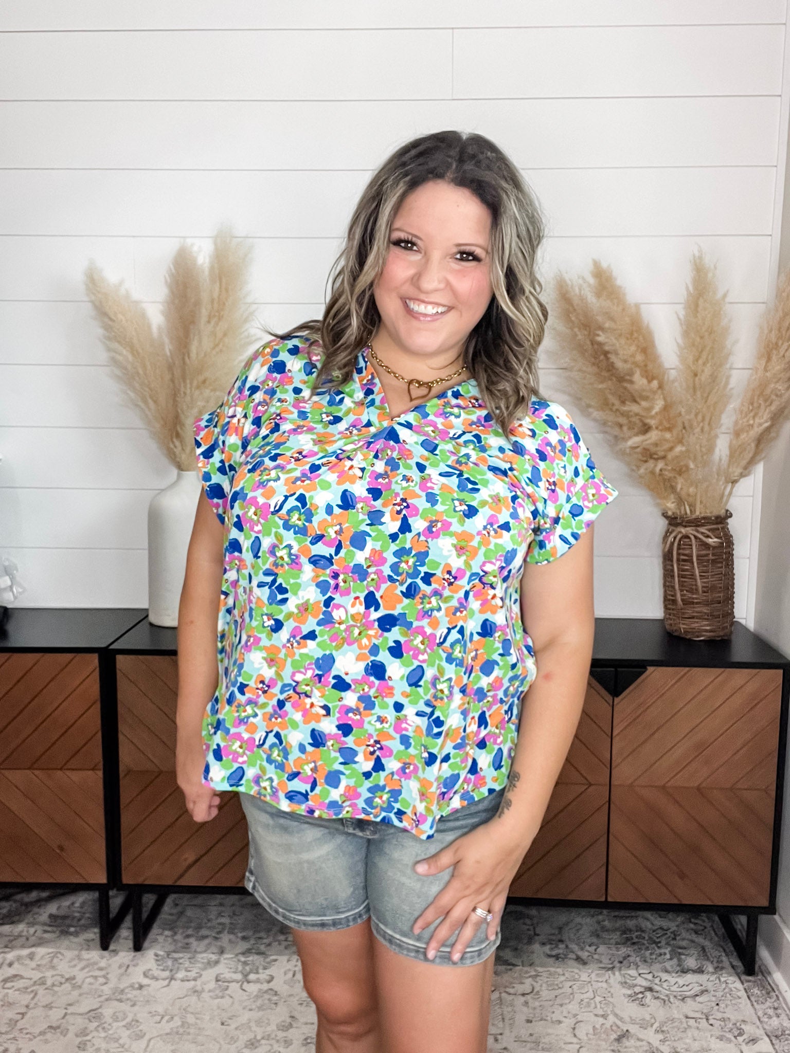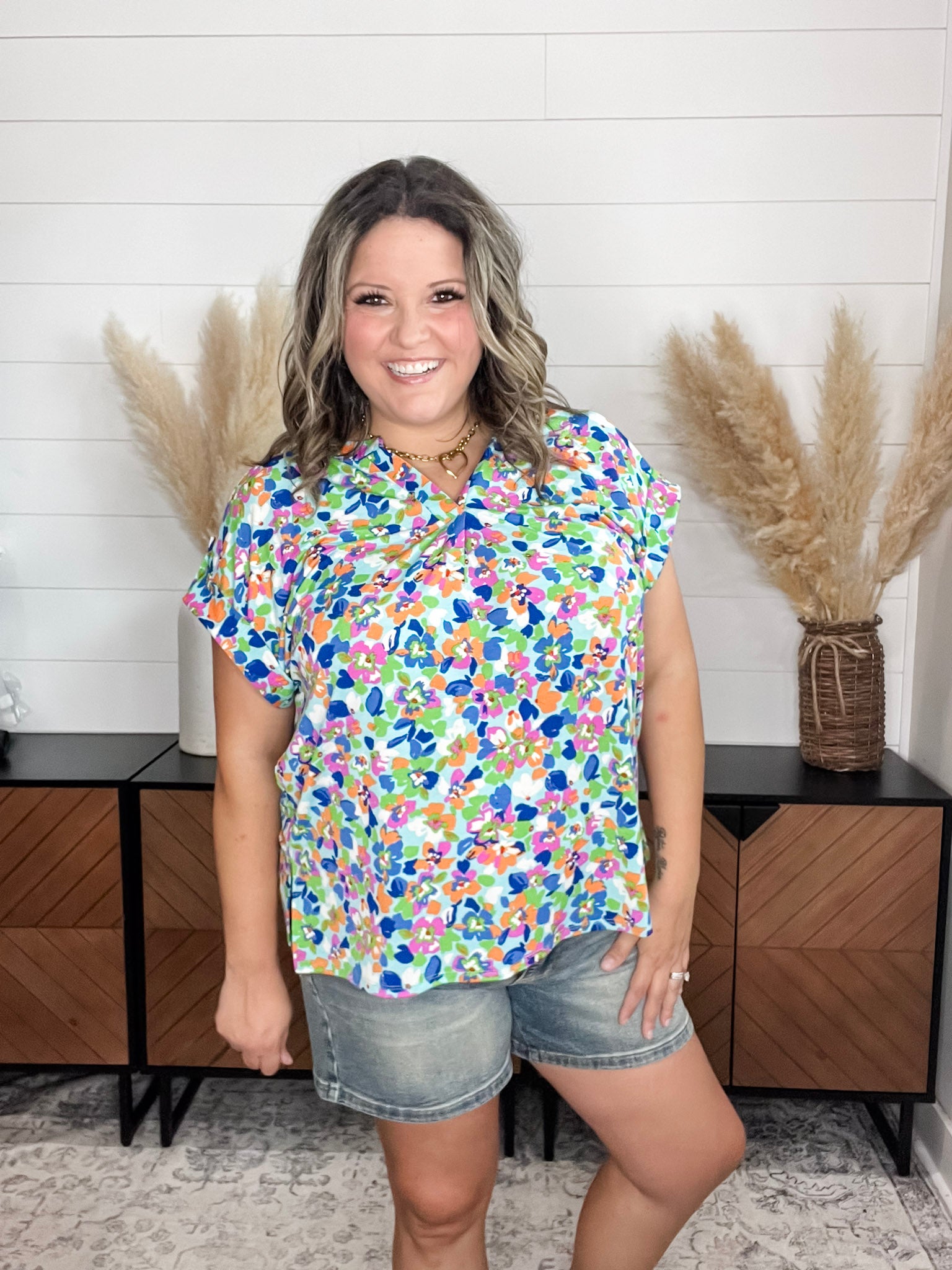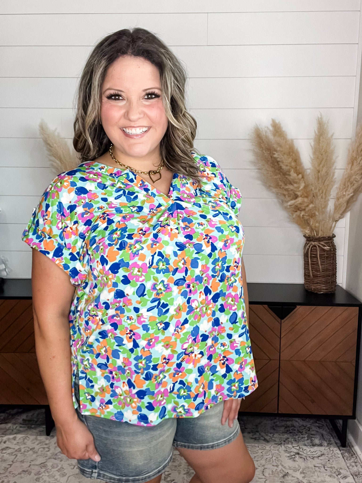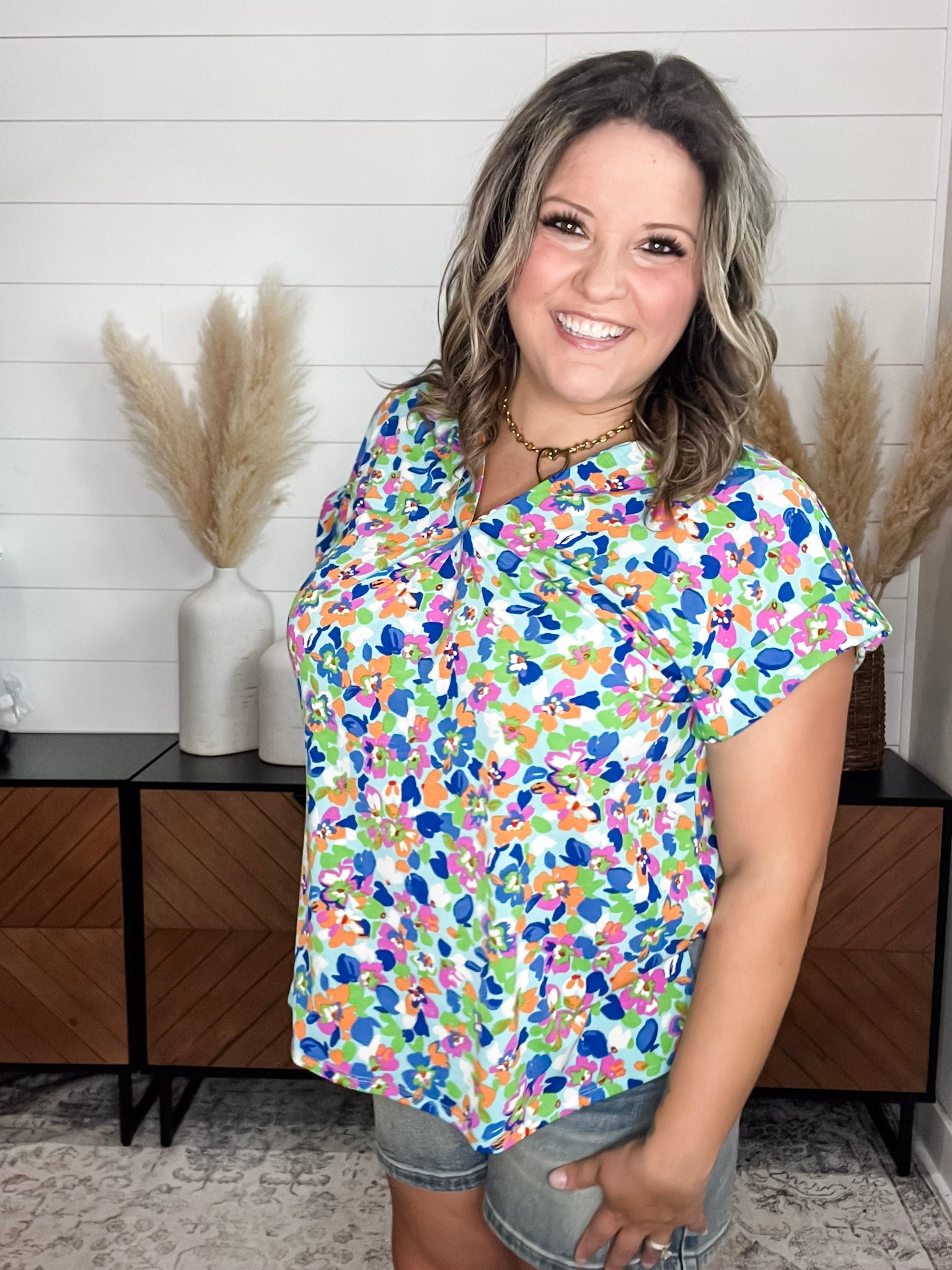 Dive into effortless style with our "Smack Dab" Split Neck top! This slinky, stretchy wonder refuses to wrinkle, making it your new go-to for busy days. With playful pops of color and a chic cuffed short sleeve design, it's delightfully oversized (psst... size down for a more fitted look). Just slip it on and—boom—instant fashion magic!