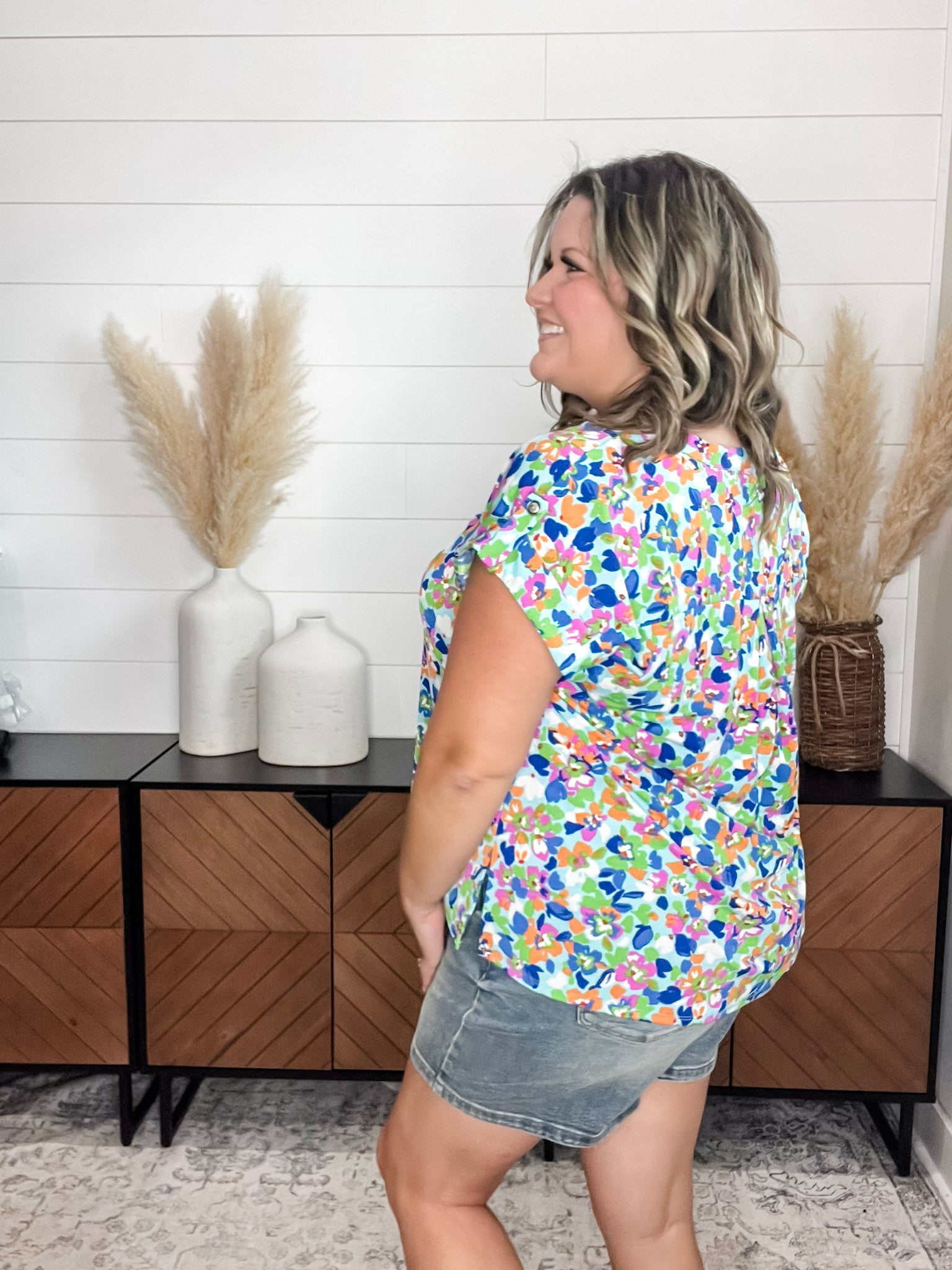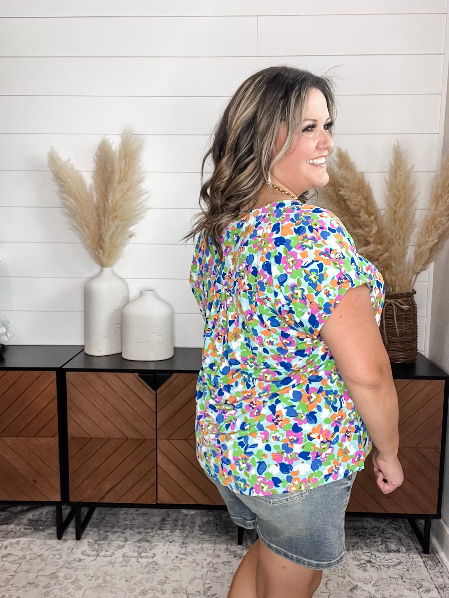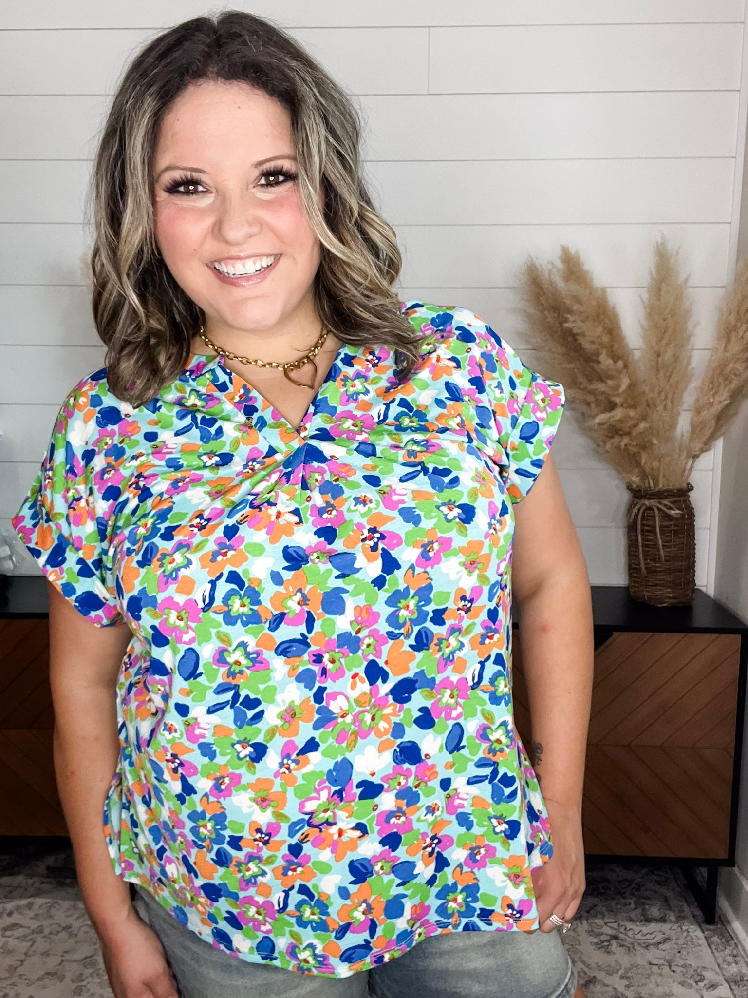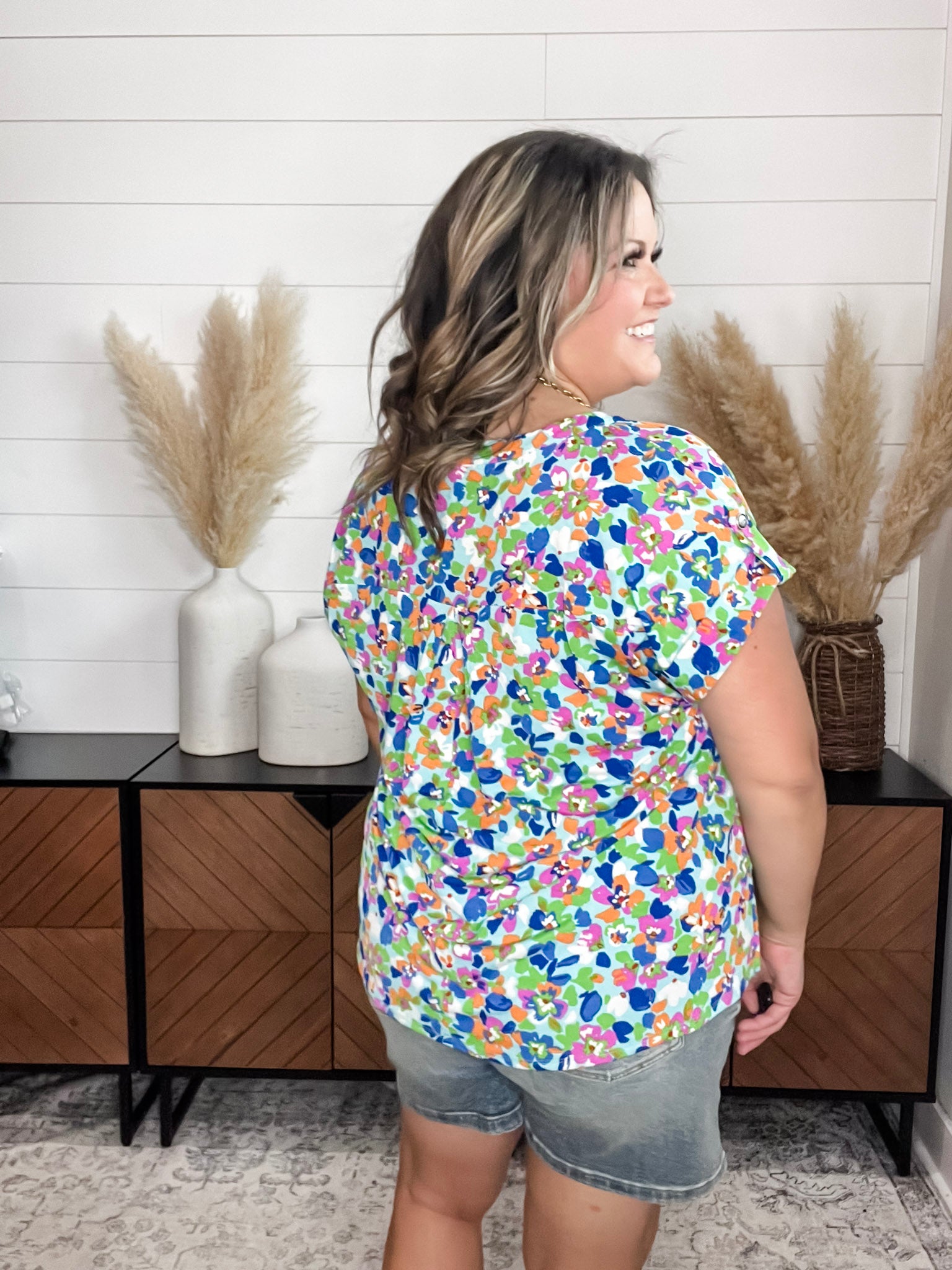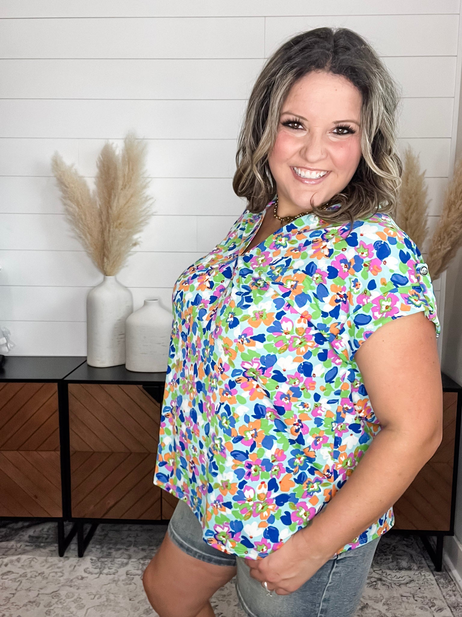 Dive into effortless style with our "Smack Dab" Split Neck top! This slinky, stretchy wonder refuses to wrinkle, making it your new go-to for busy days. With playful pops of color and a chic cuffed short sleeve design, it's delightfully oversized (psst... size down for a more fitted look). Just slip it on and—boom—instant fashion magic!