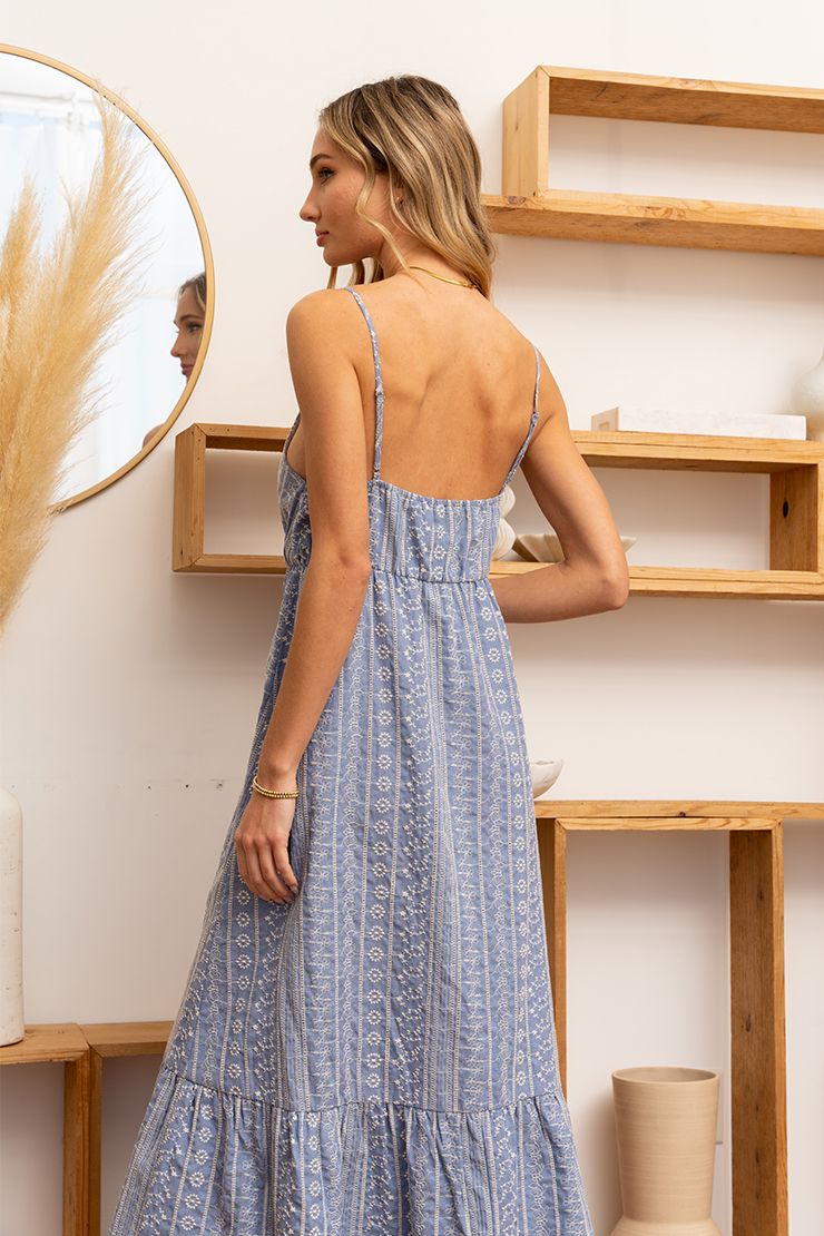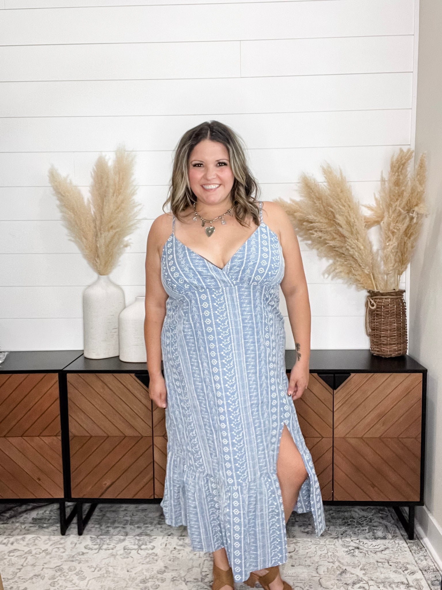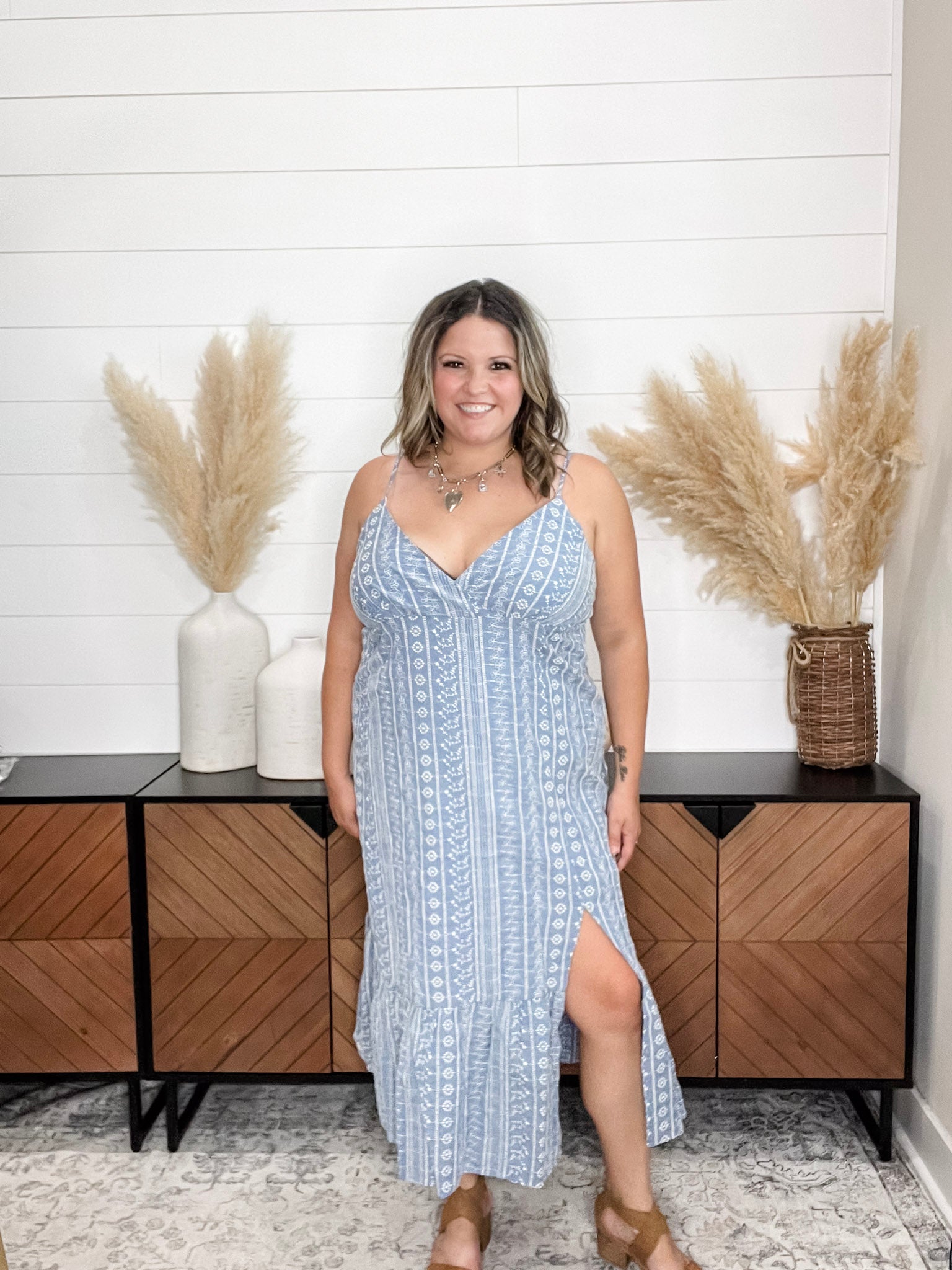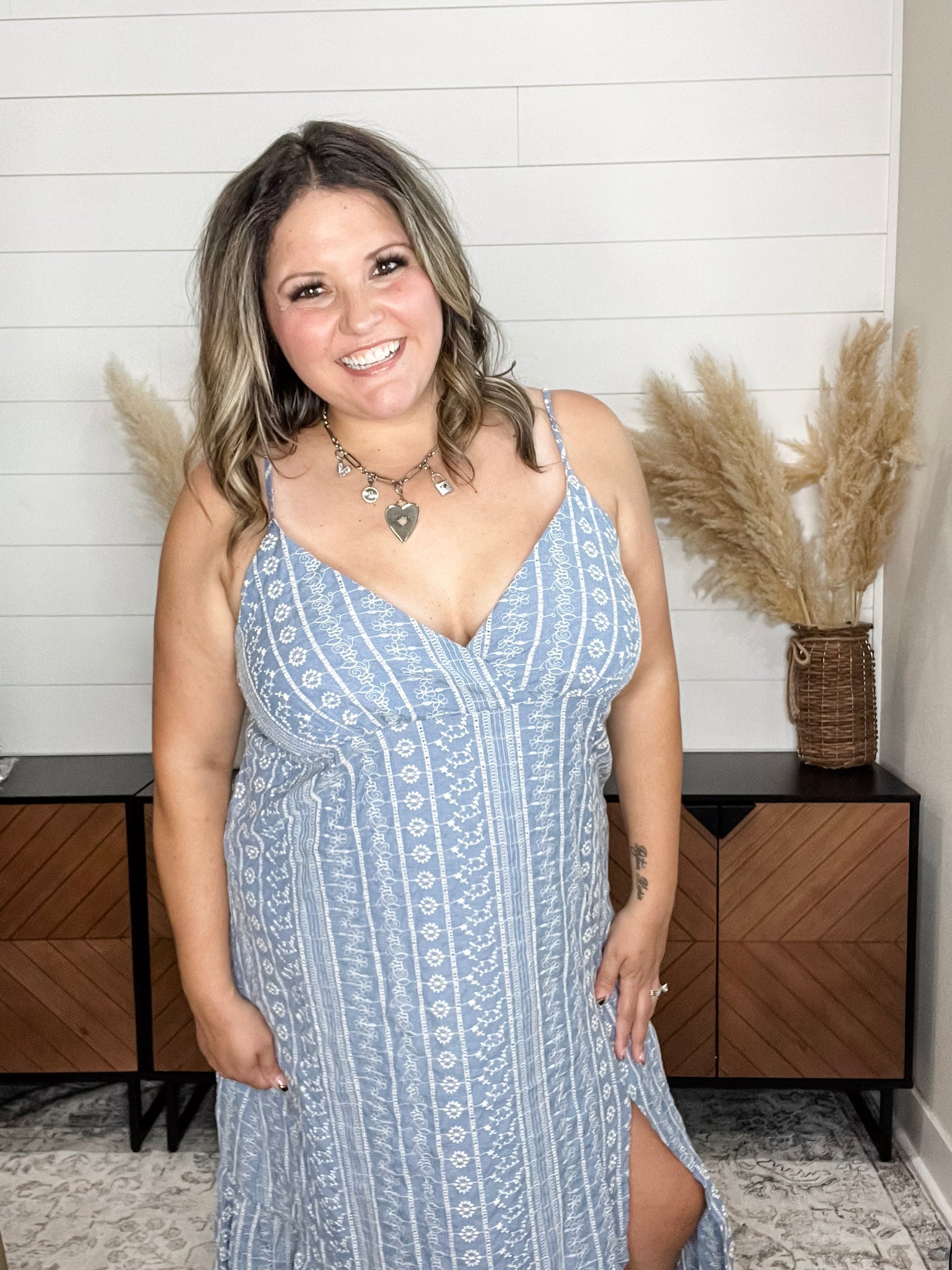 Be effortlessly stylish in our 'Small Town' Embroidered Maxi Slip Dress by Sew in Love. With adjustable straps and a deep sweetheart neckline, this beachy gorgeous dress is perfect for any beach getaway. The slit up the left thigh adds a touch of allure, while the true-to-size fit with room ensures comfort and confidence.