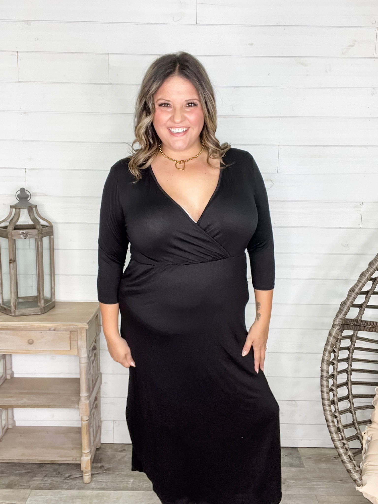 This black 3/4 sleeve wrap dress is your new go-to for effortless style. True to size and crafted from a soft, stretchy fabric, it moves with you while keeping things lightweight and comfy. Plus, those handy pockets add a fun, practical twist—because who doesn’t love a dress that works as hard as you do? Perfect for day-to-night looks with a playful flair!
