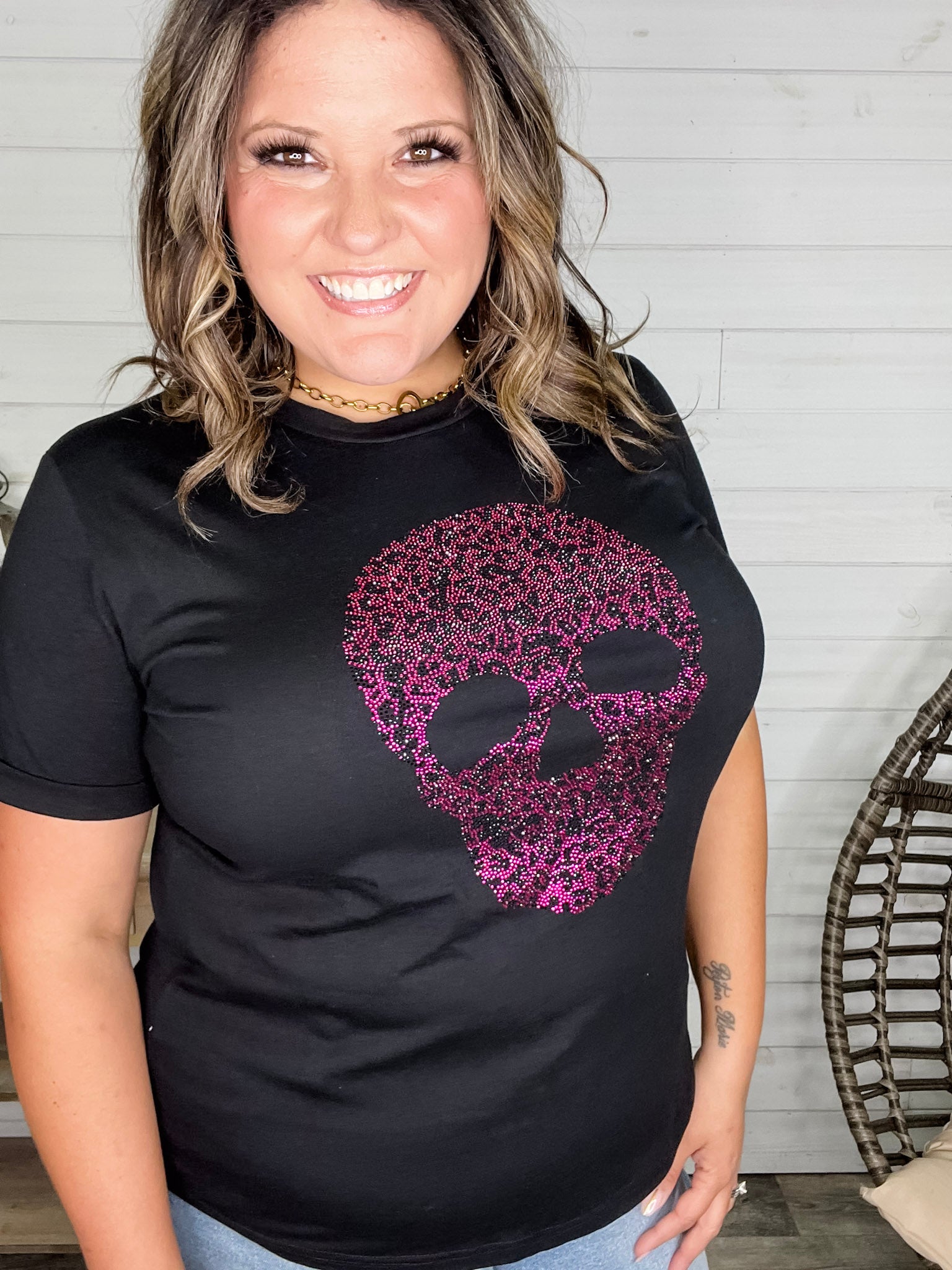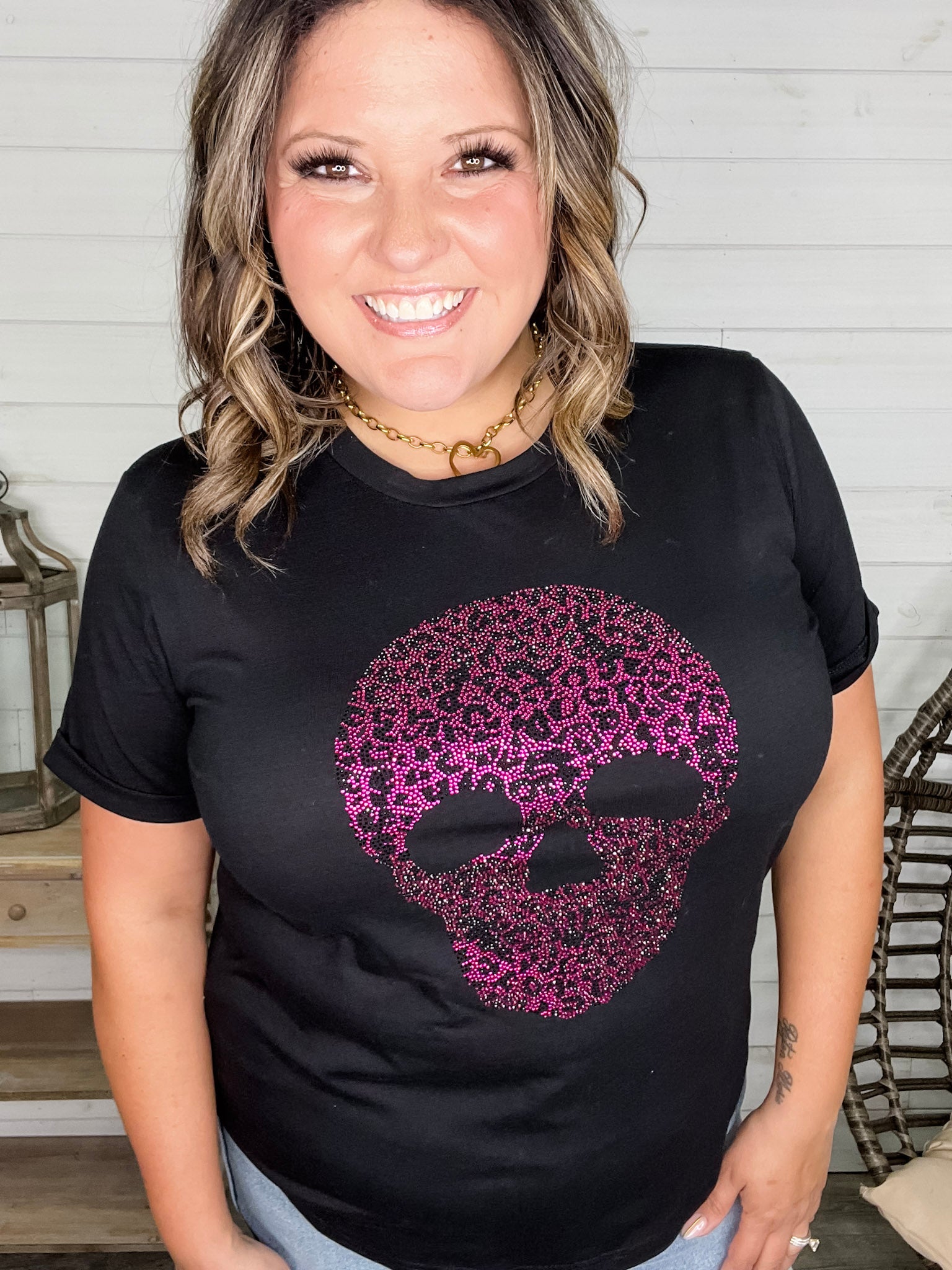 Rhinestone Sparkle Skull Tee