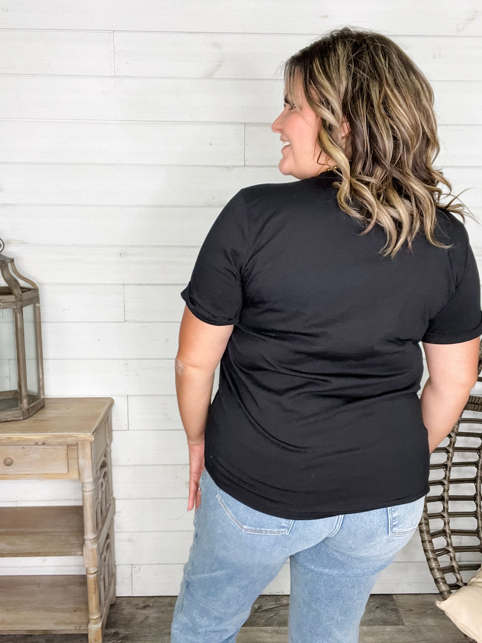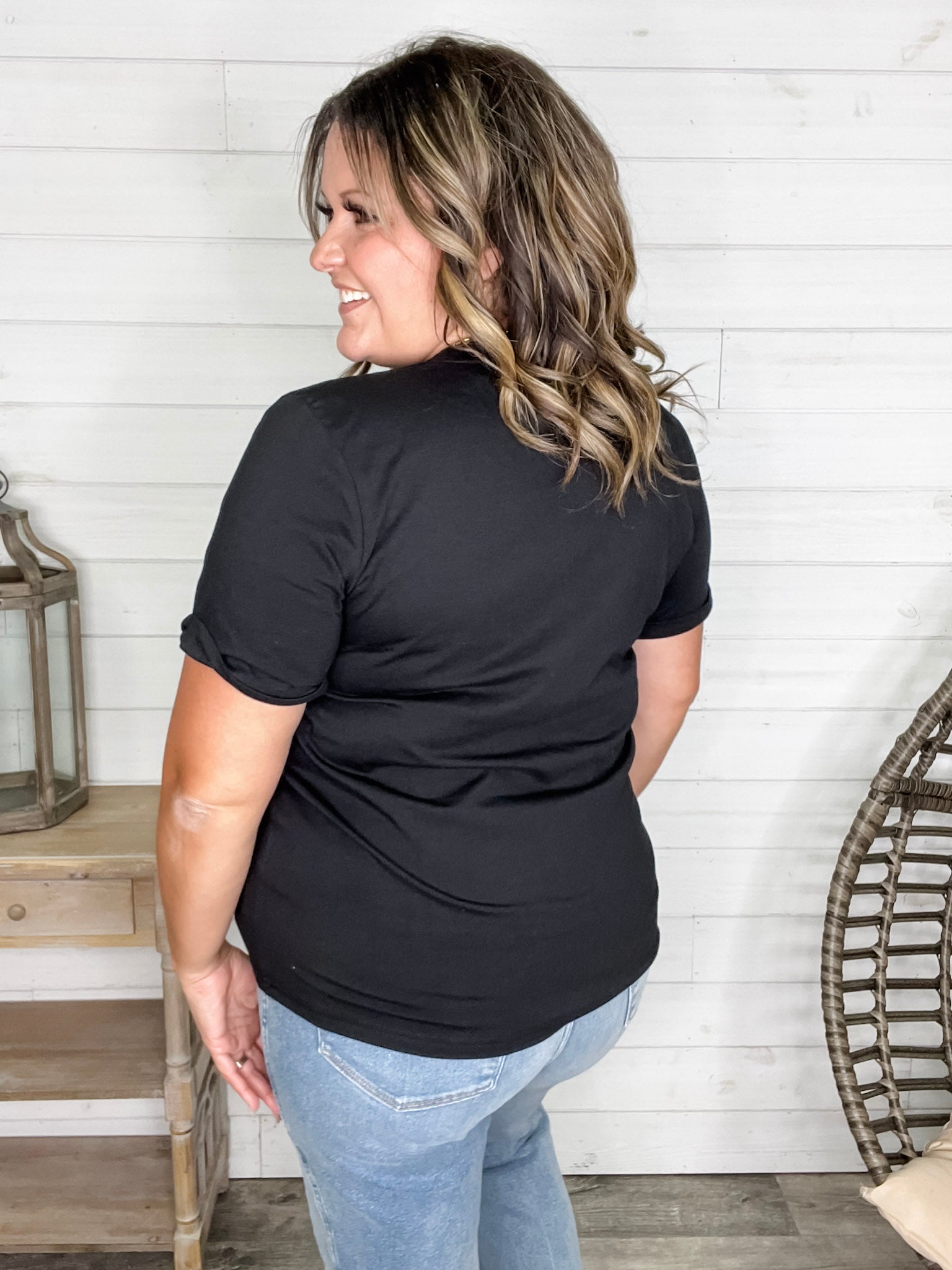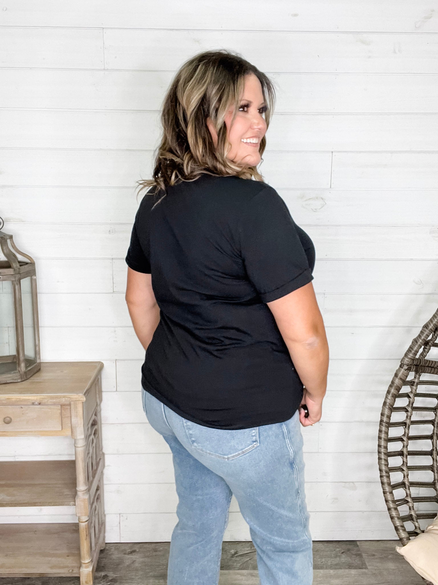 This uber-soft black tee combines comfort with a playful edge, featuring a sparkling rhinestone skull inspired by animal print. With plenty of stretch, it offers a relaxed fit—perfect for layering or wearing solo. To keep those rhinestones shining, wash inside out on a gentle cycle or by hand. For a more fitted look, consider sizing down if you’re not carrying extra tummy weight. Embrace your wild side with this standout tee!