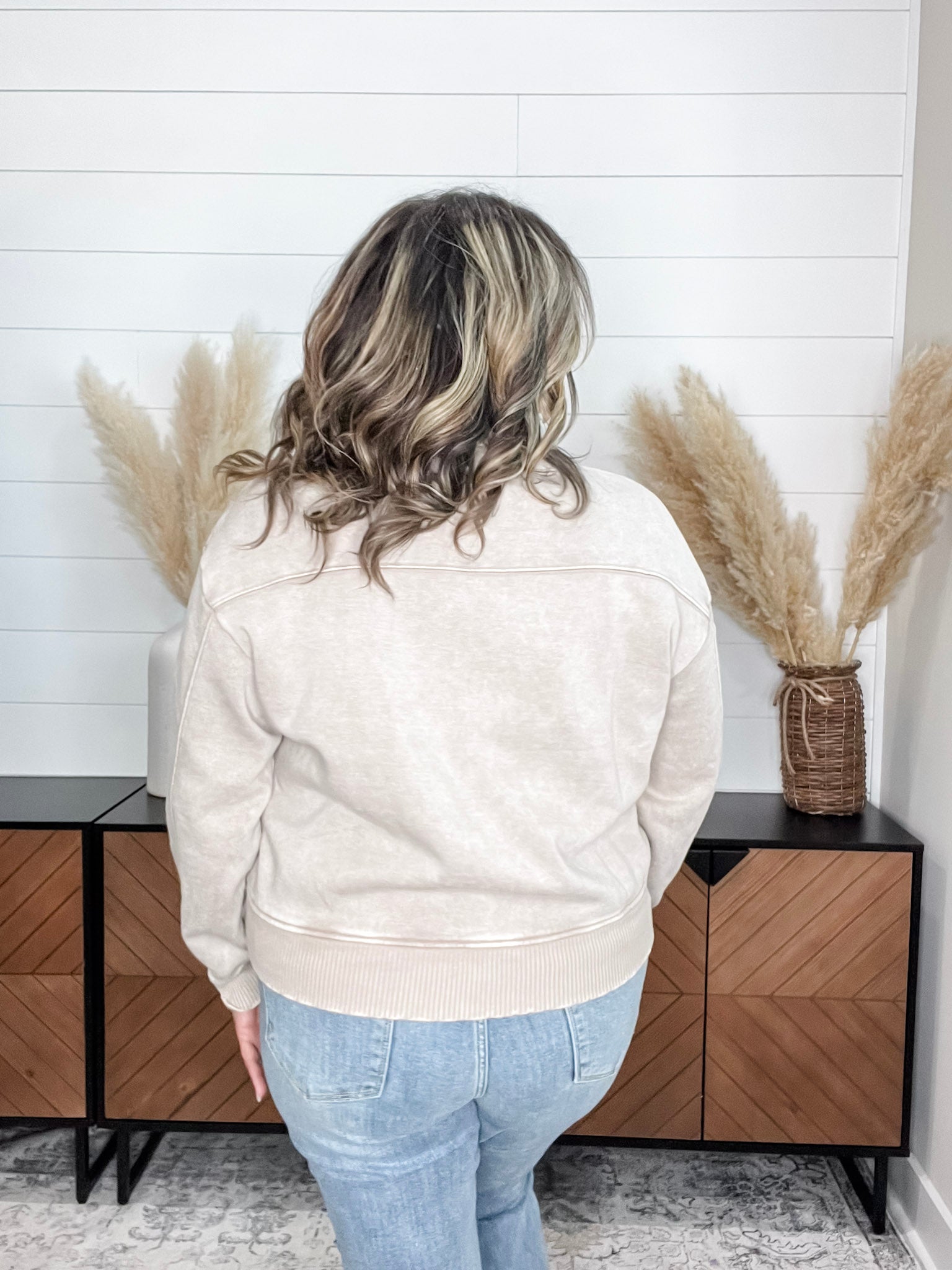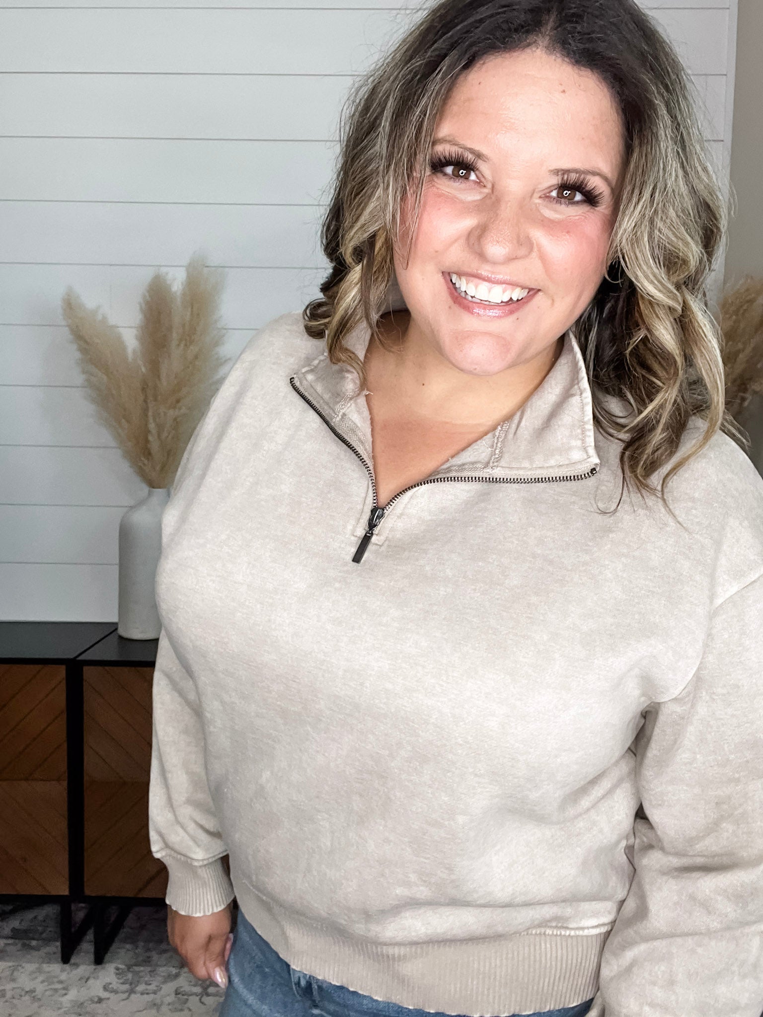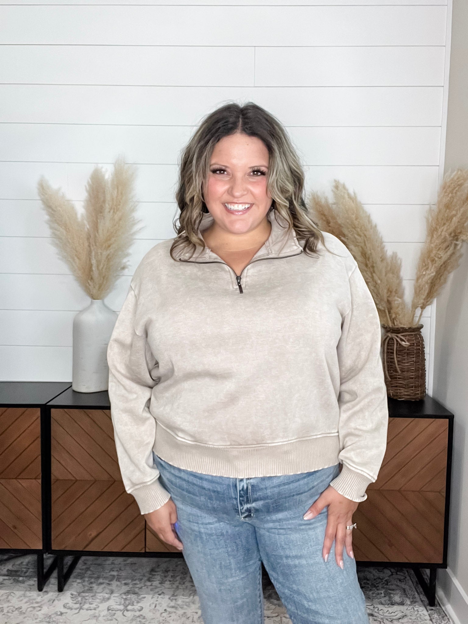 "Stone Cold" Acid Wash Cropped 1/2 Zip (Ash Mocha)